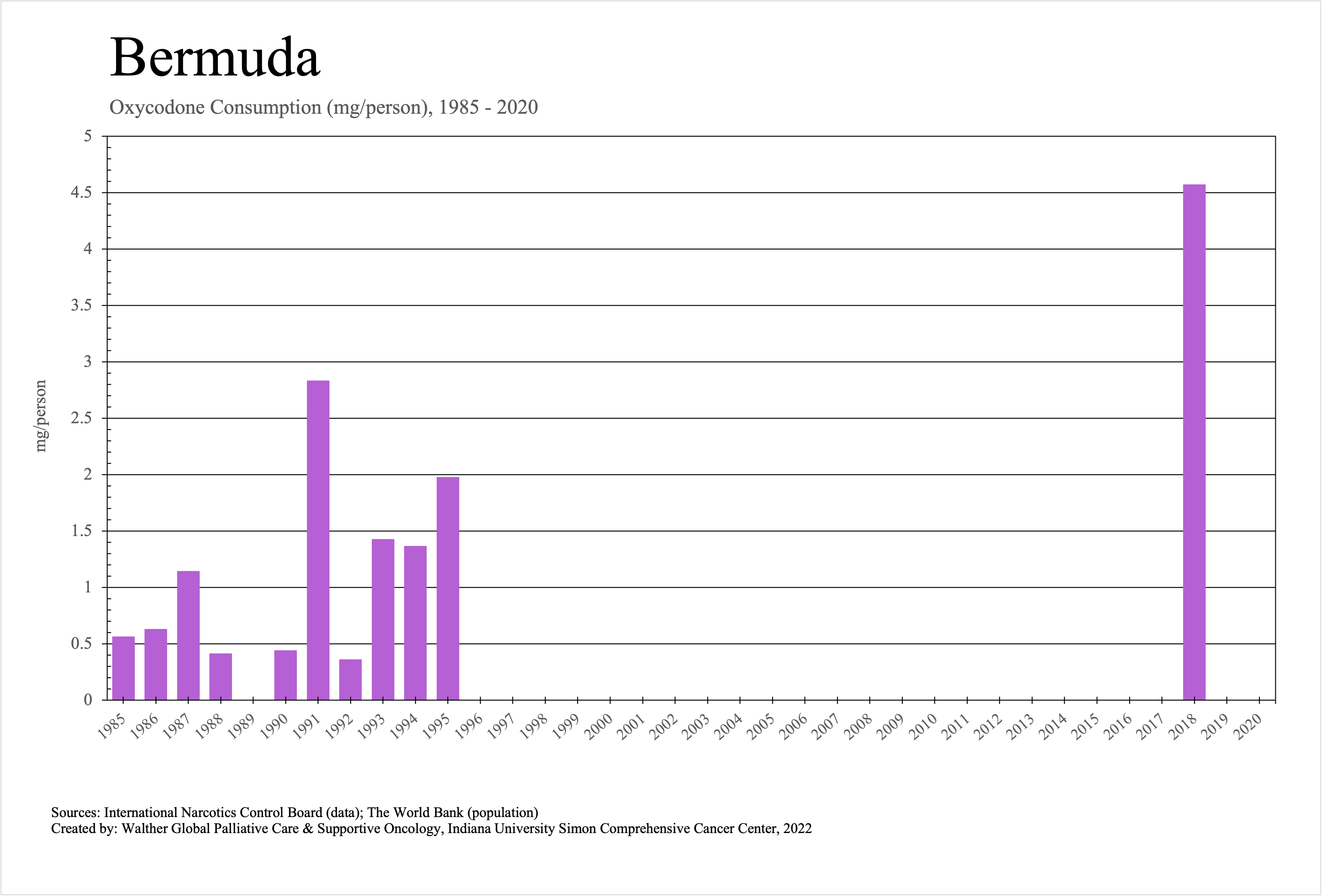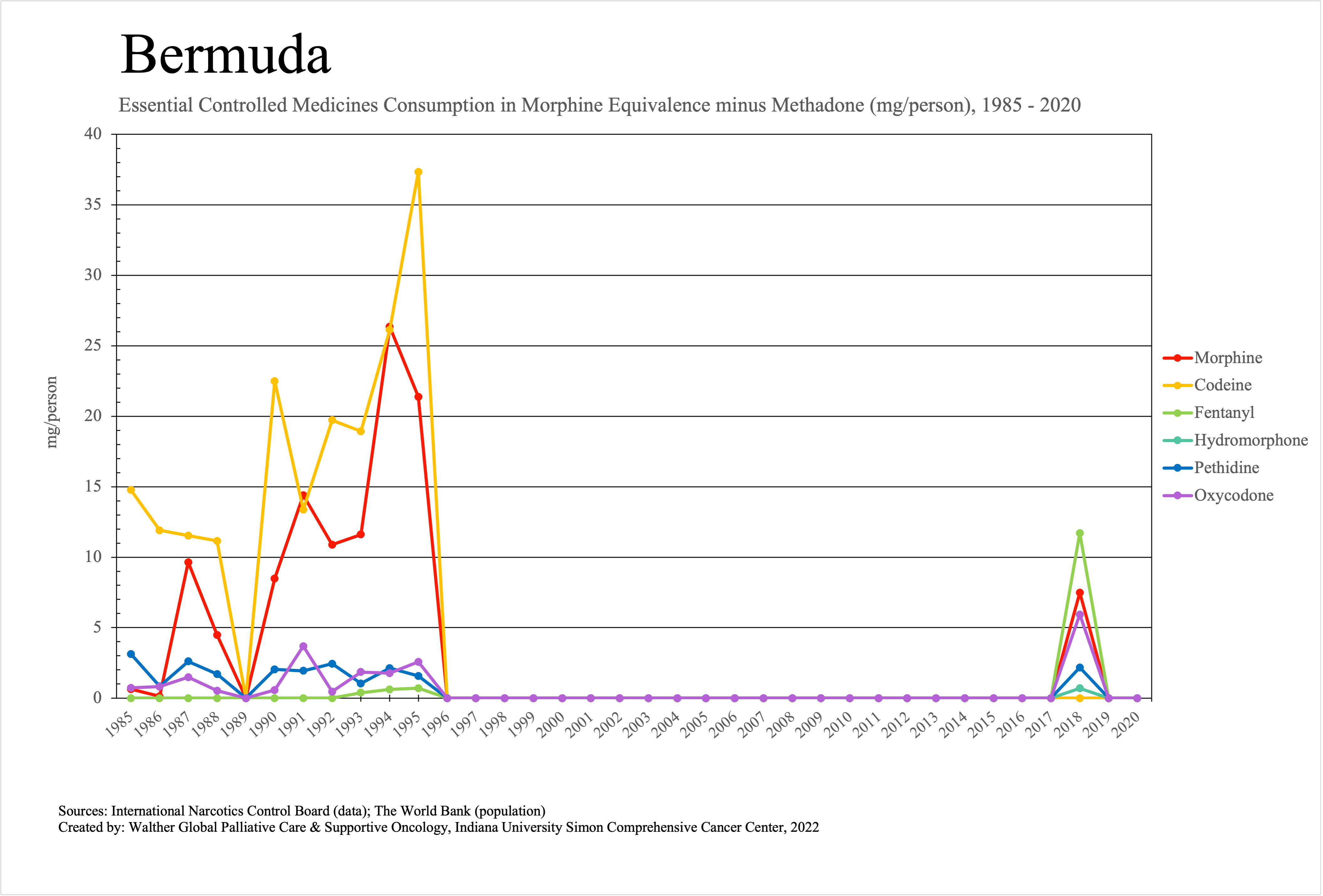 The graphs below provide the Essential Controlled Medicines consumption data trends from 1985 to 2020 in milligrams per capita and Morphine Equivalence (ME) milligrams per capita, as reported to the International Narcotics Control Board (INCB).