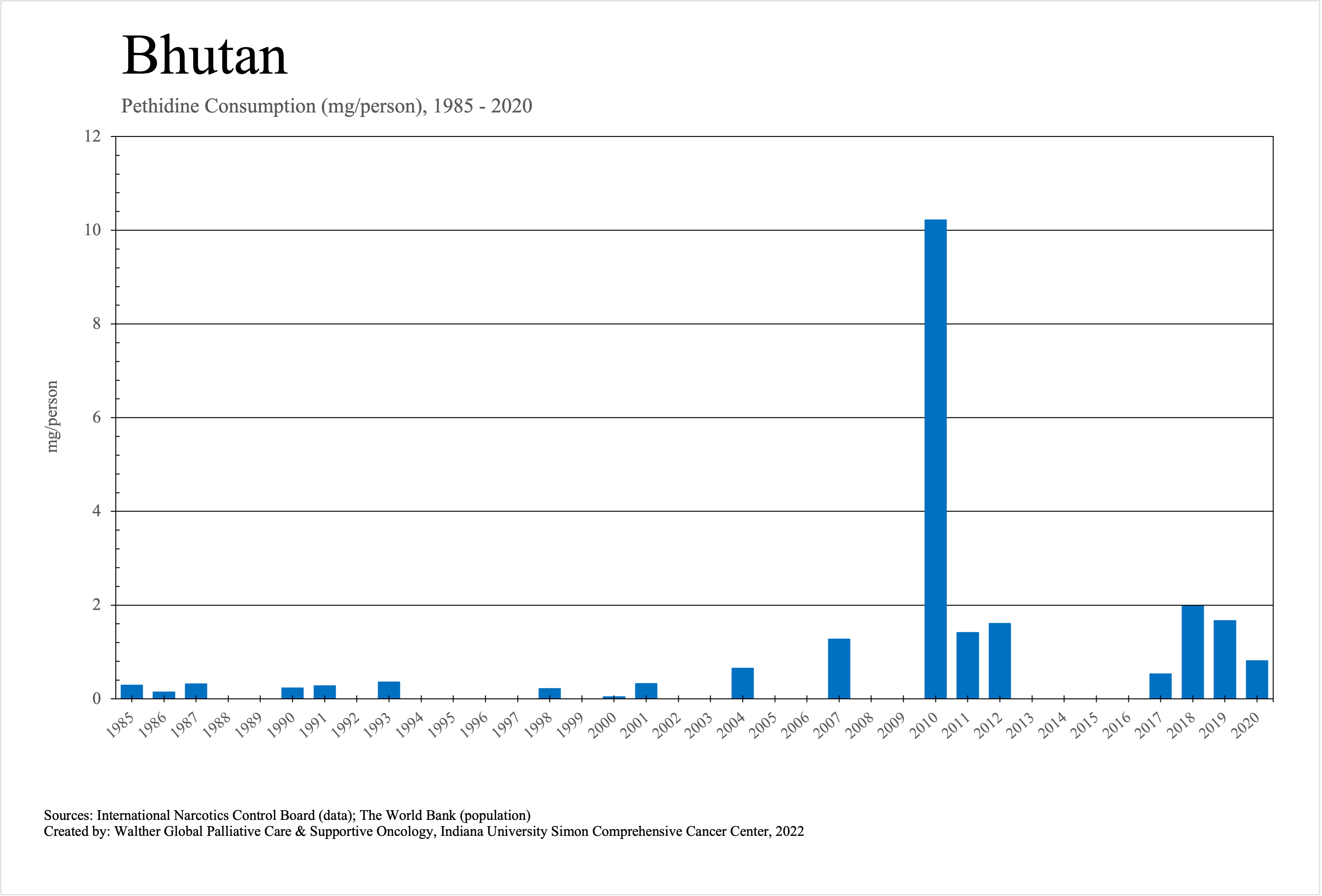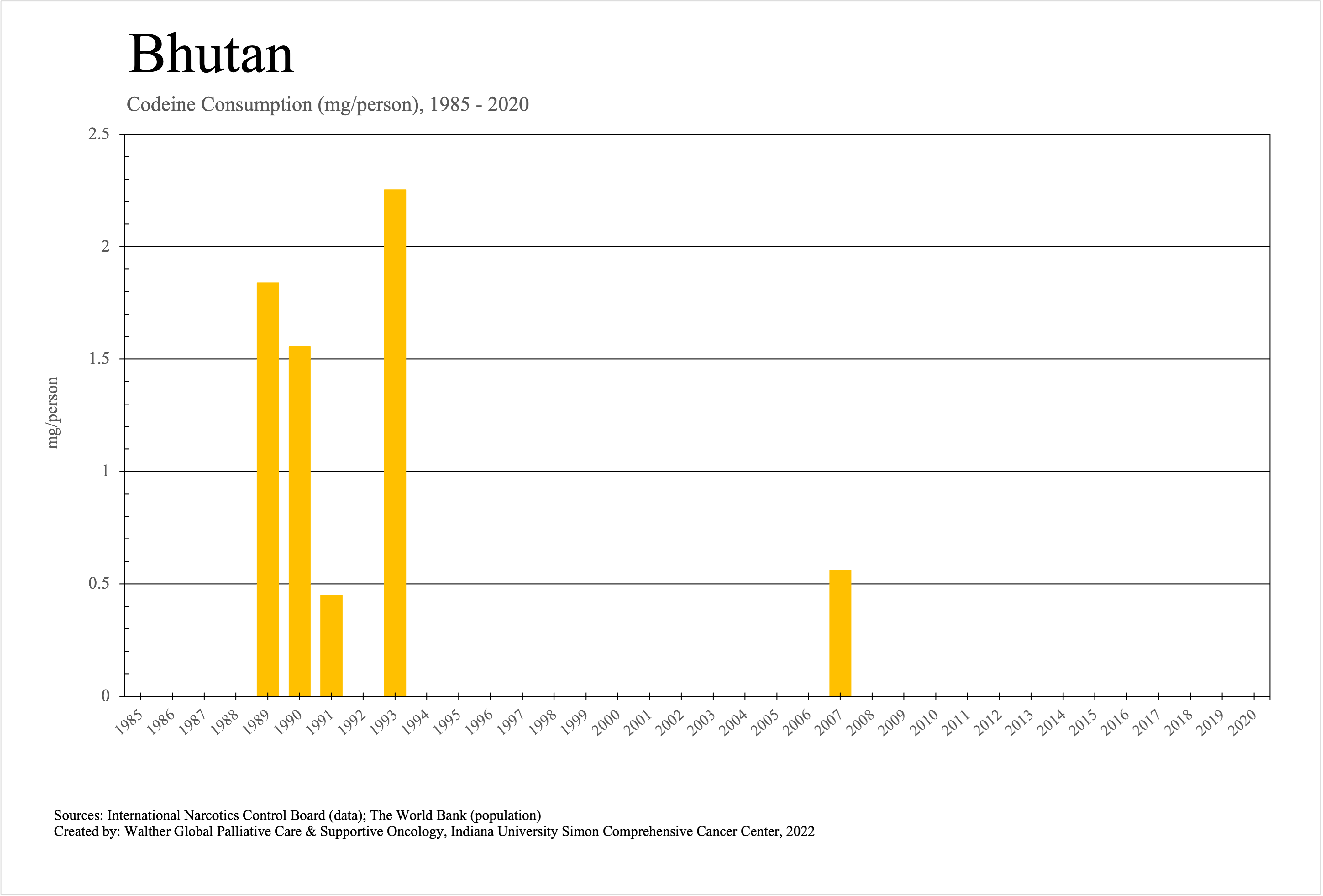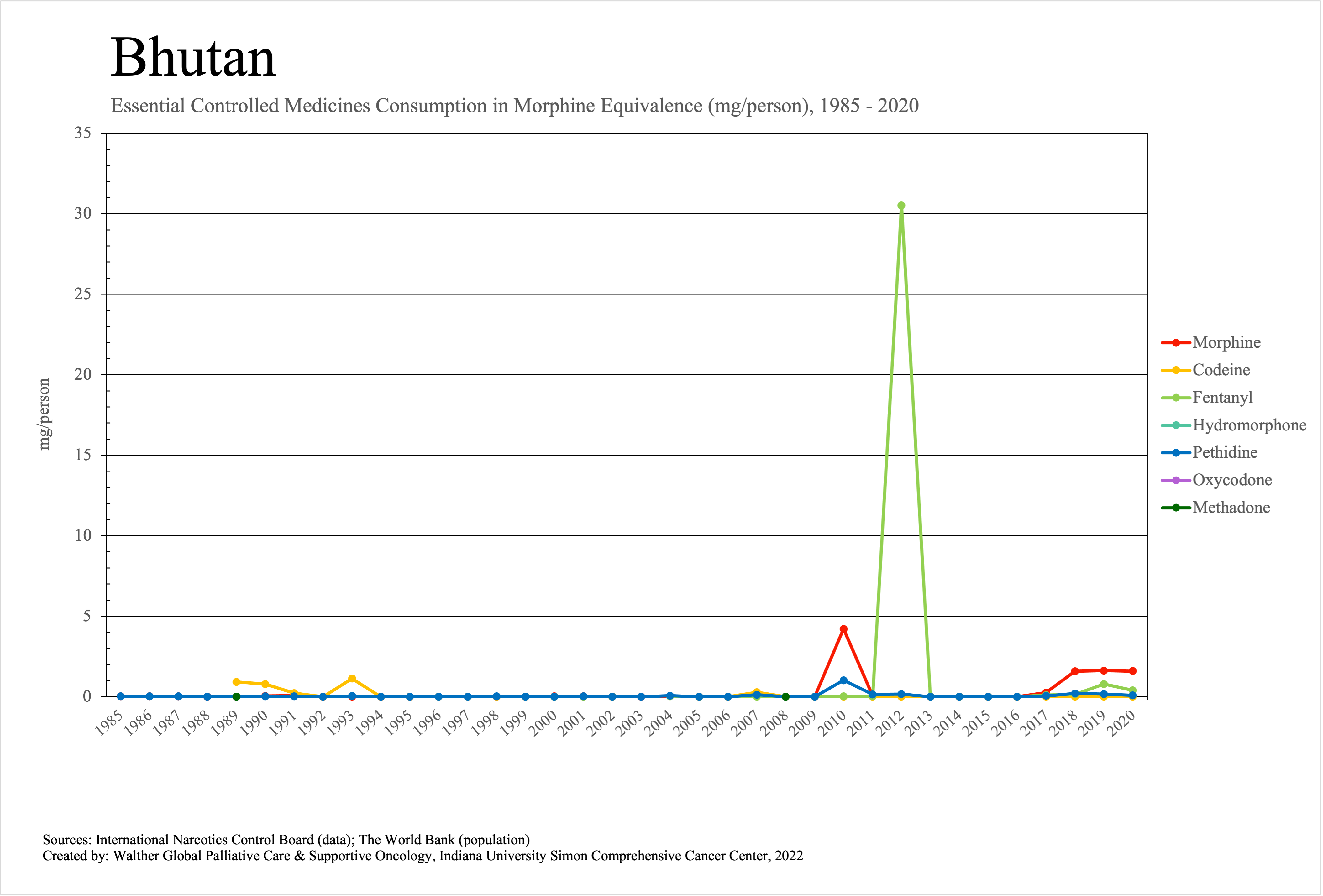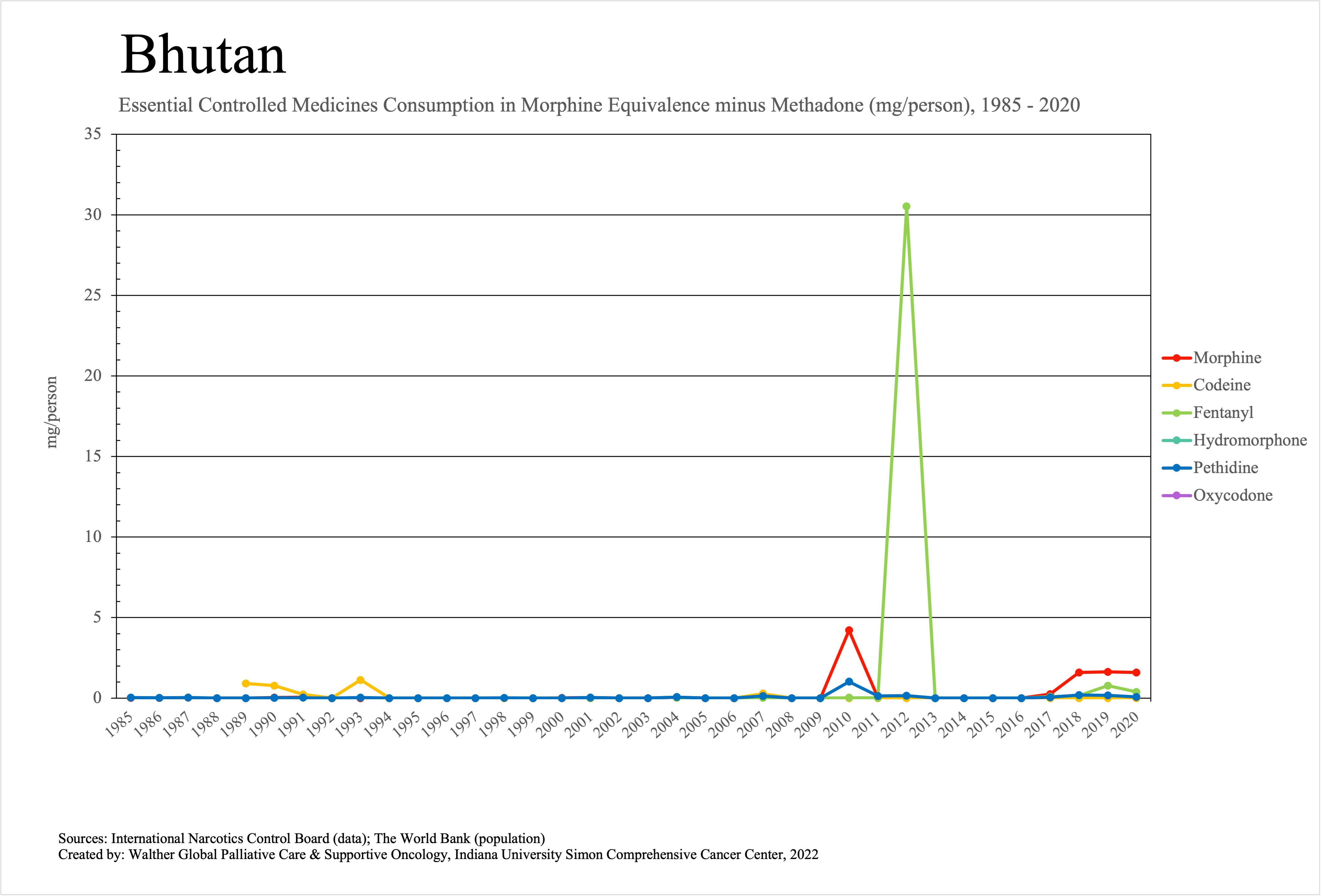 The graphs below provide the Essential Controlled Medicines consumption data trends from 1985 to 2020 in milligrams per capita and Morphine Equivalence (ME) milligrams per capita, as reported to the International Narcotics Control Board (INCB).