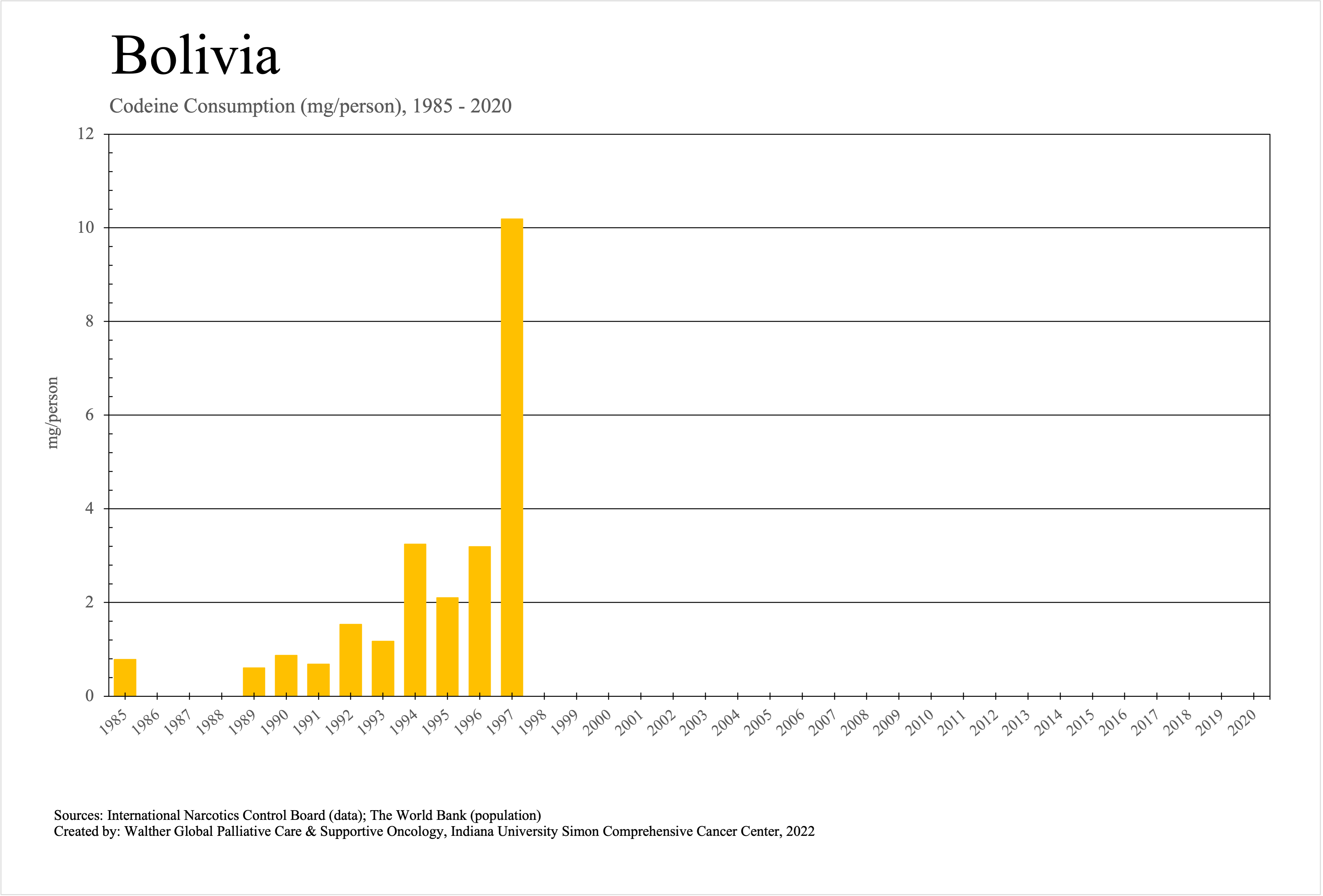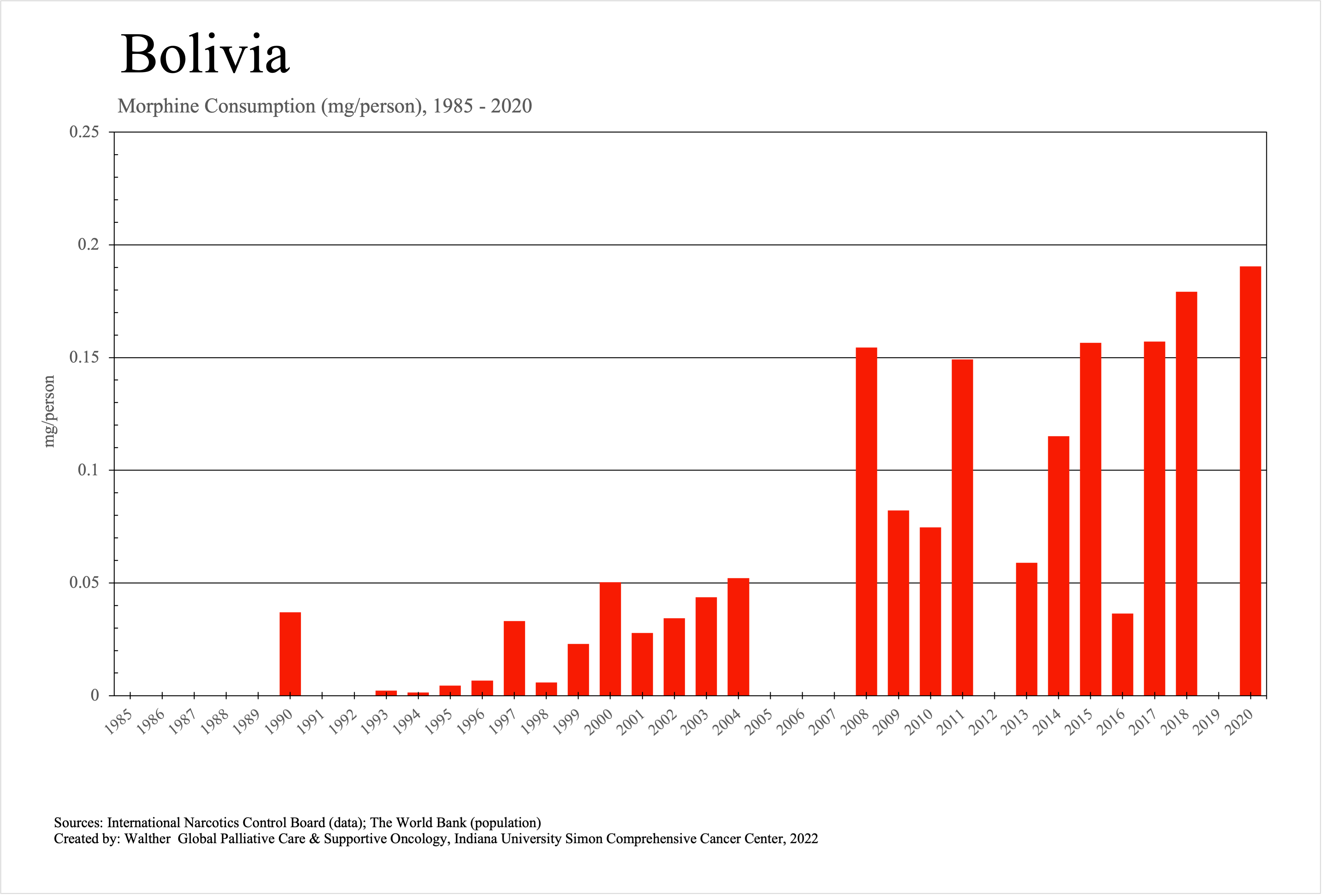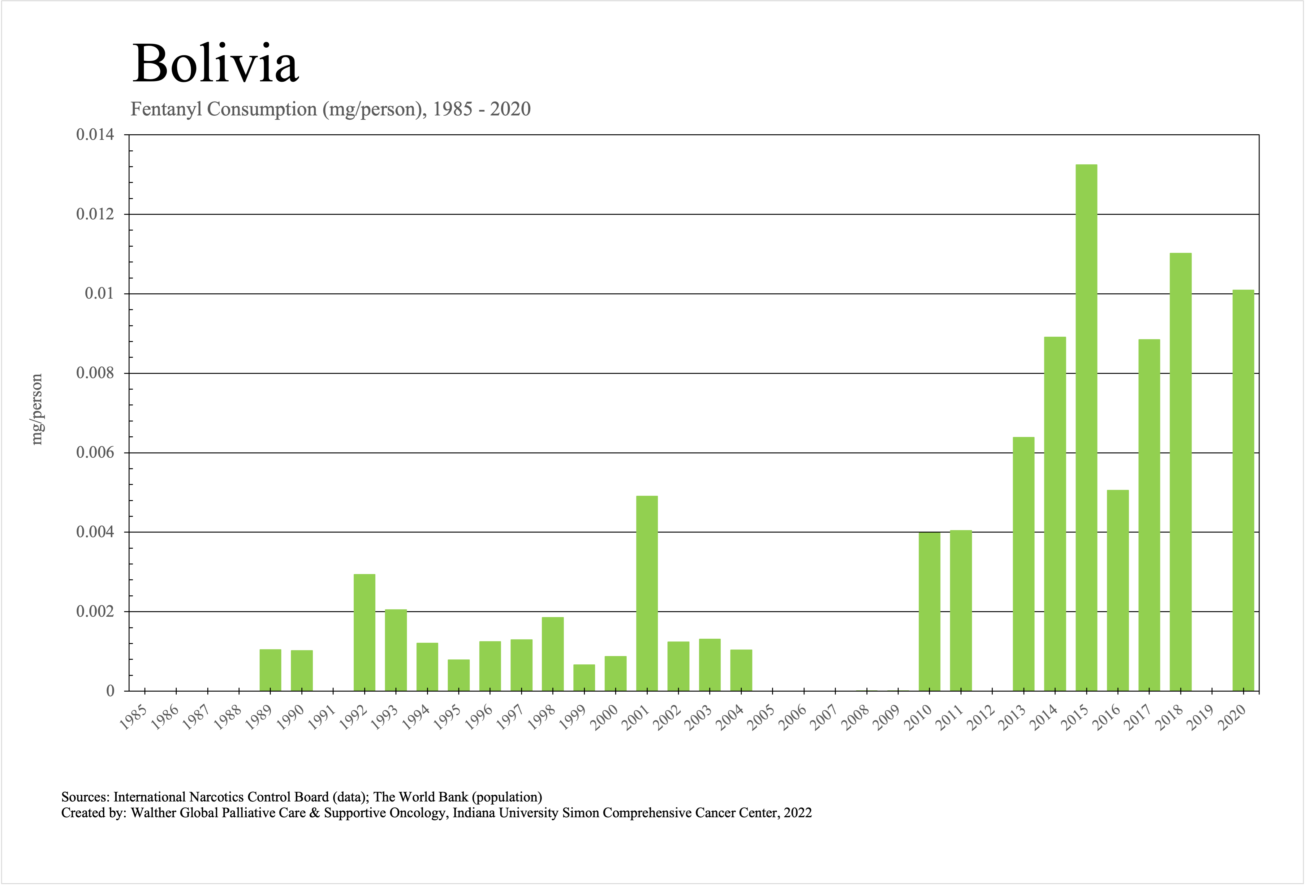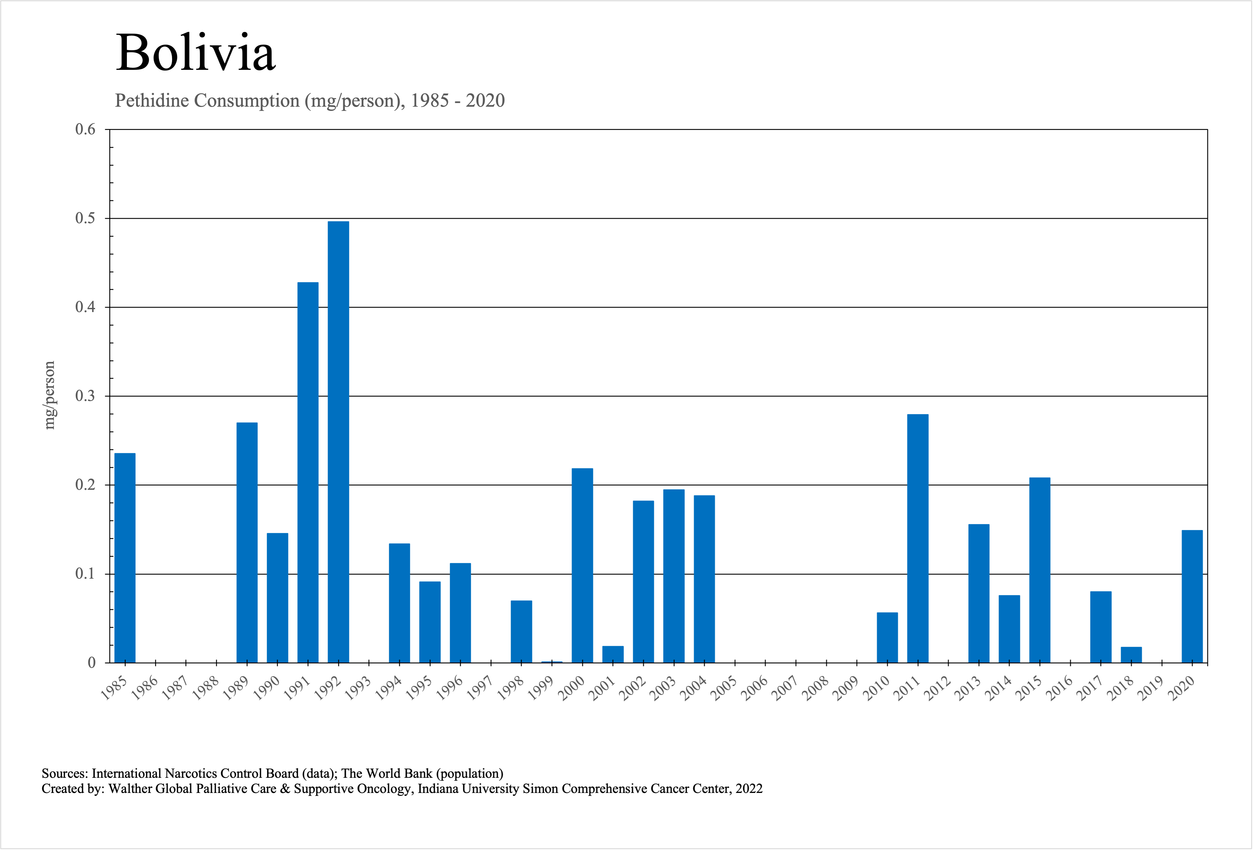 The graphs below provide the Essential Controlled Medicines consumption data trends from 1985 to 2020 in milligrams per capita and Morphine Equivalence (ME) milligrams per capita, as reported to the International Narcotics Control Board (INCB).