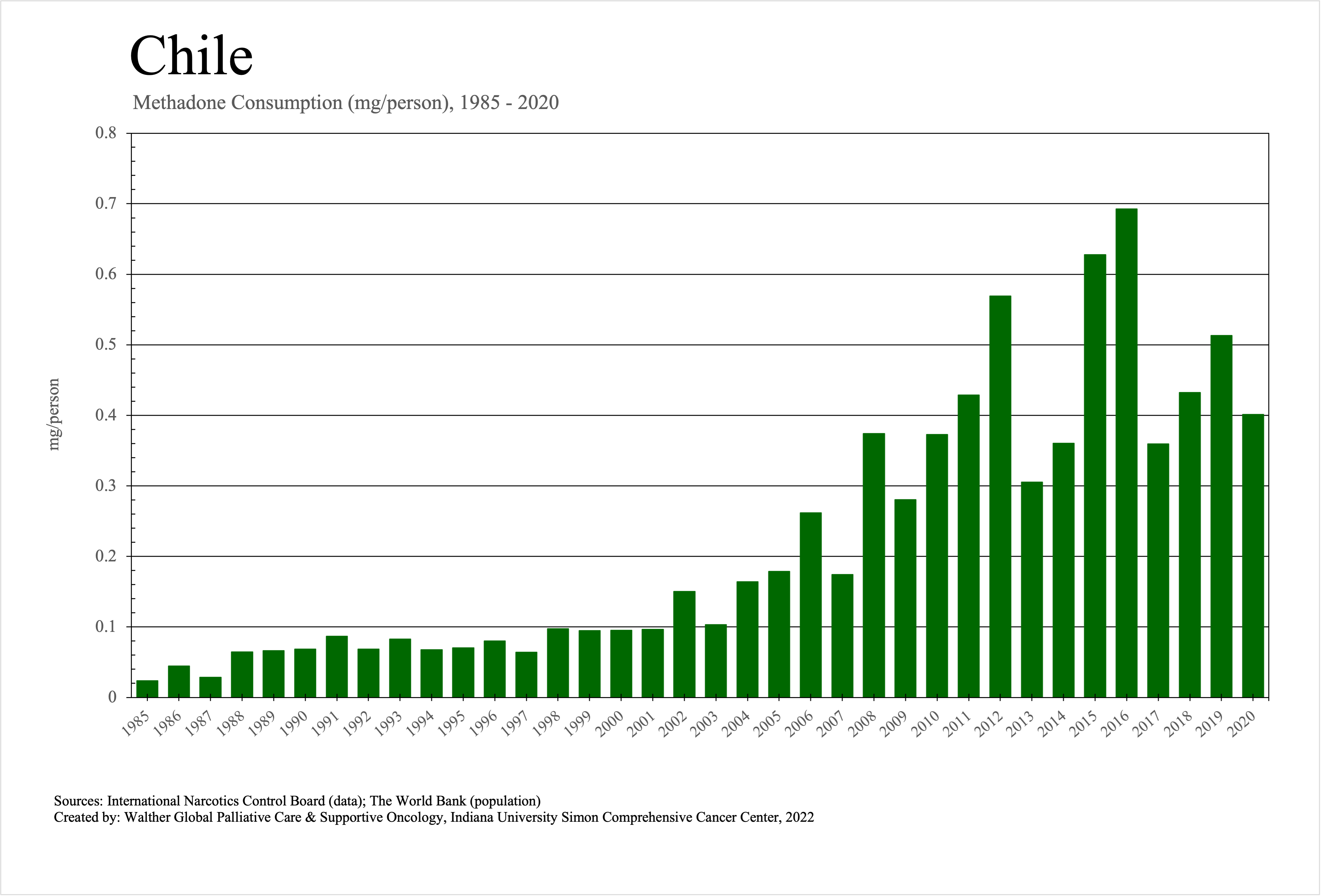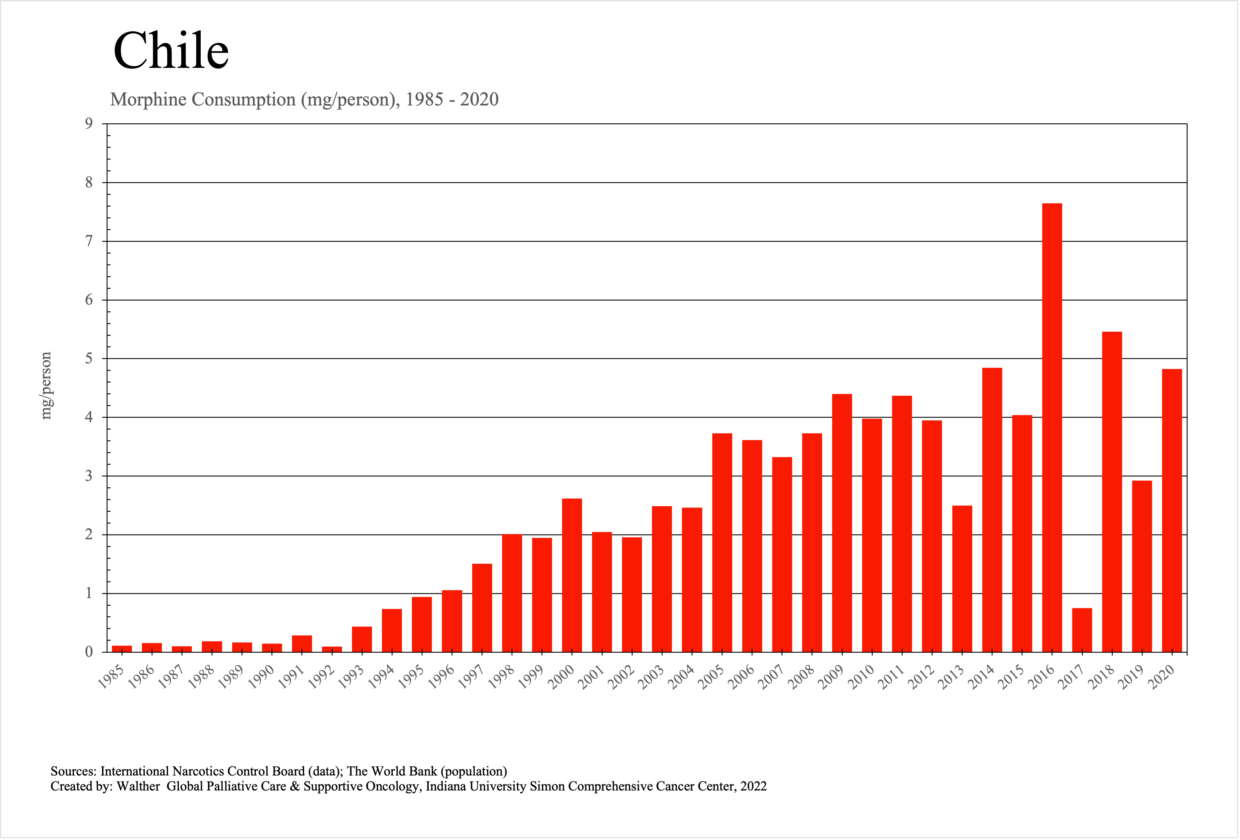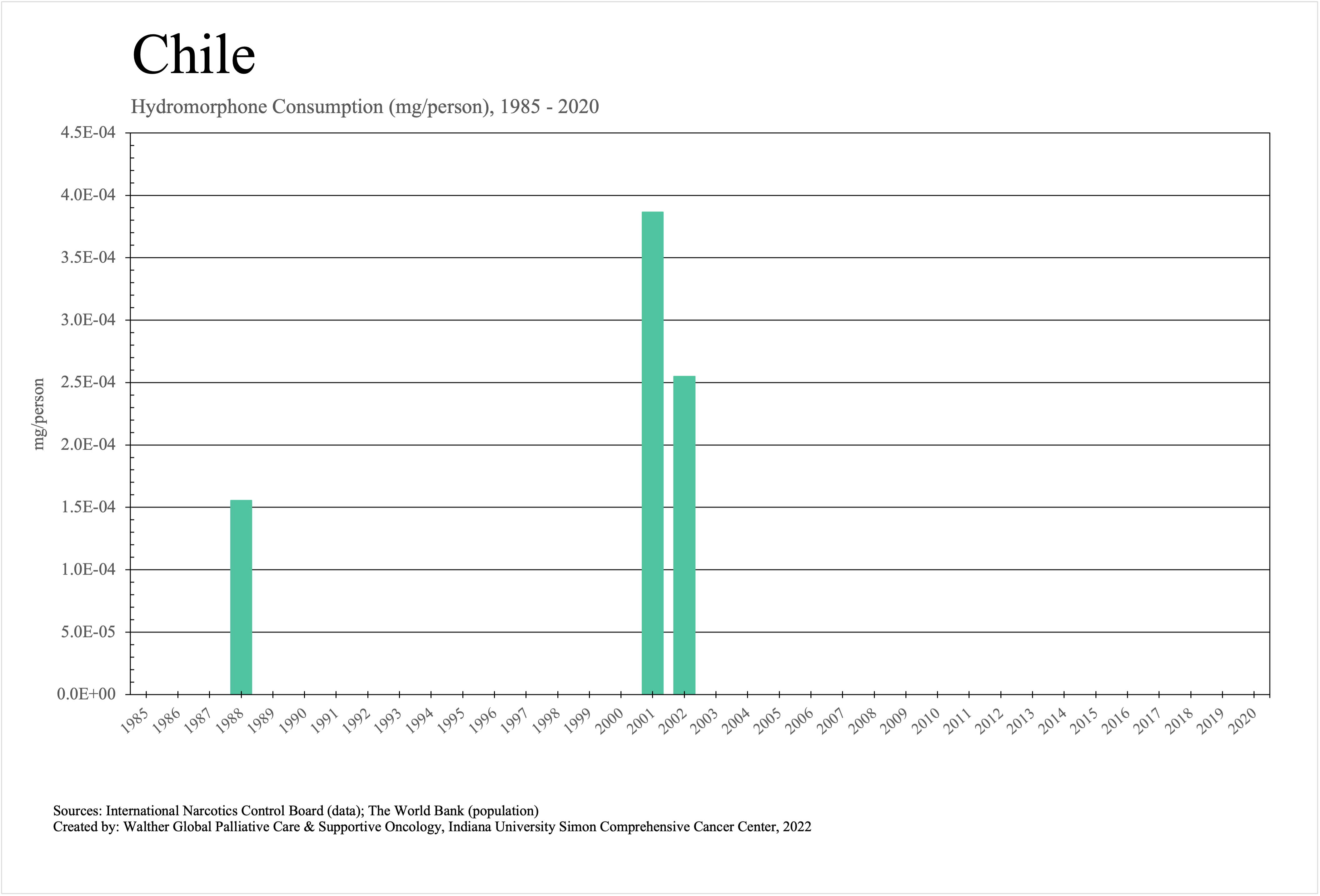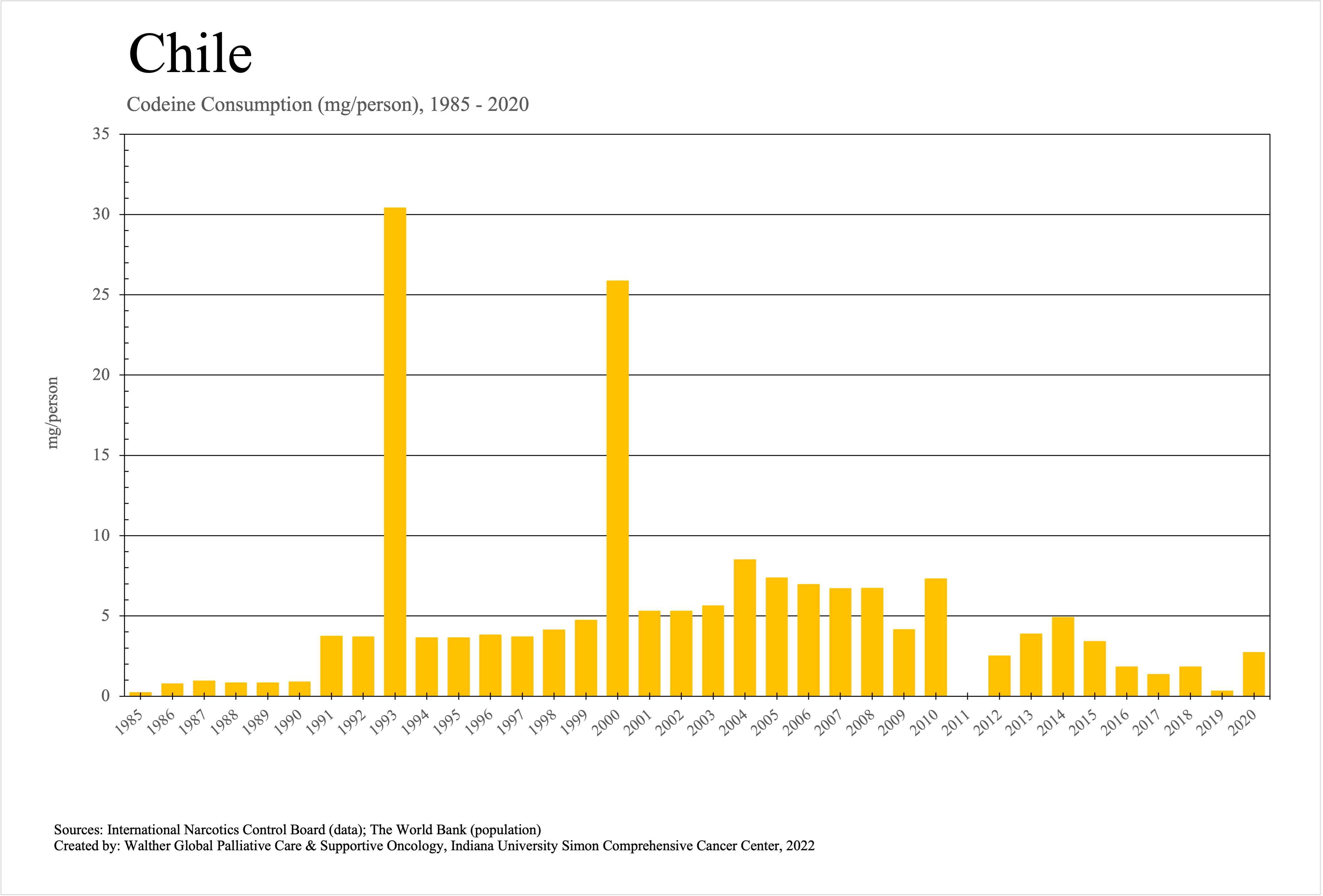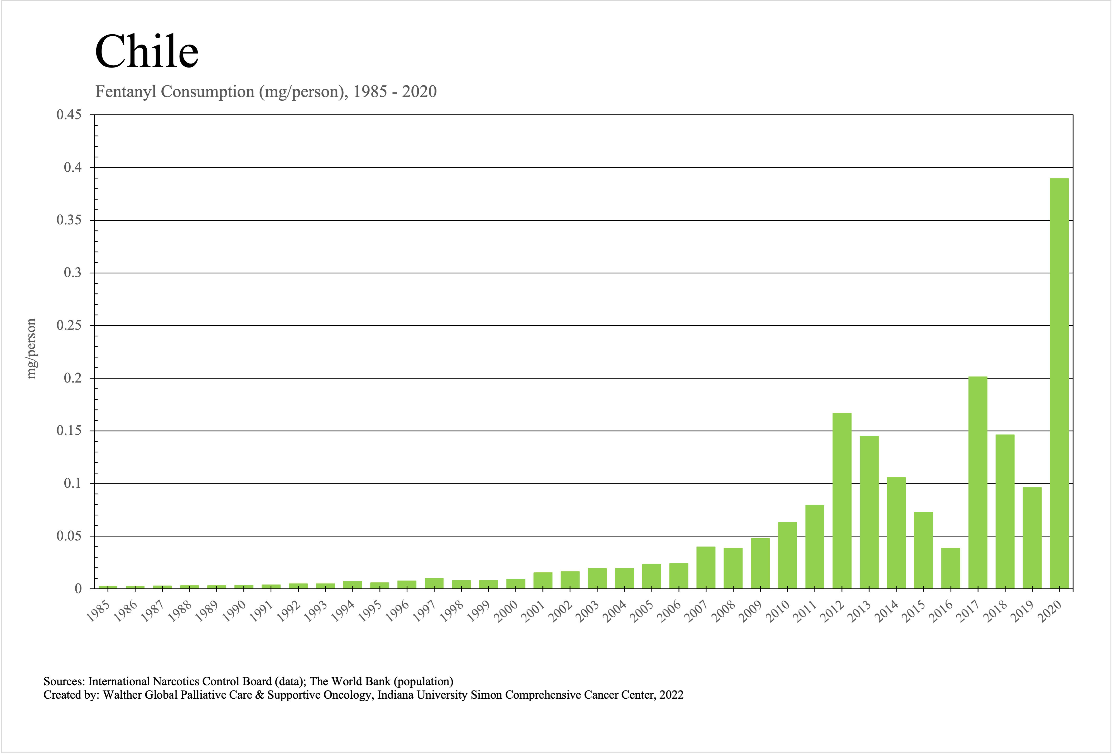 The graphs below provide the Essential Controlled Medicines consumption data trends from 1985 to 2020 in milligrams per capita and Morphine Equivalence (ME) milligrams per capita, as reported to the International Narcotics Control Board (INCB).