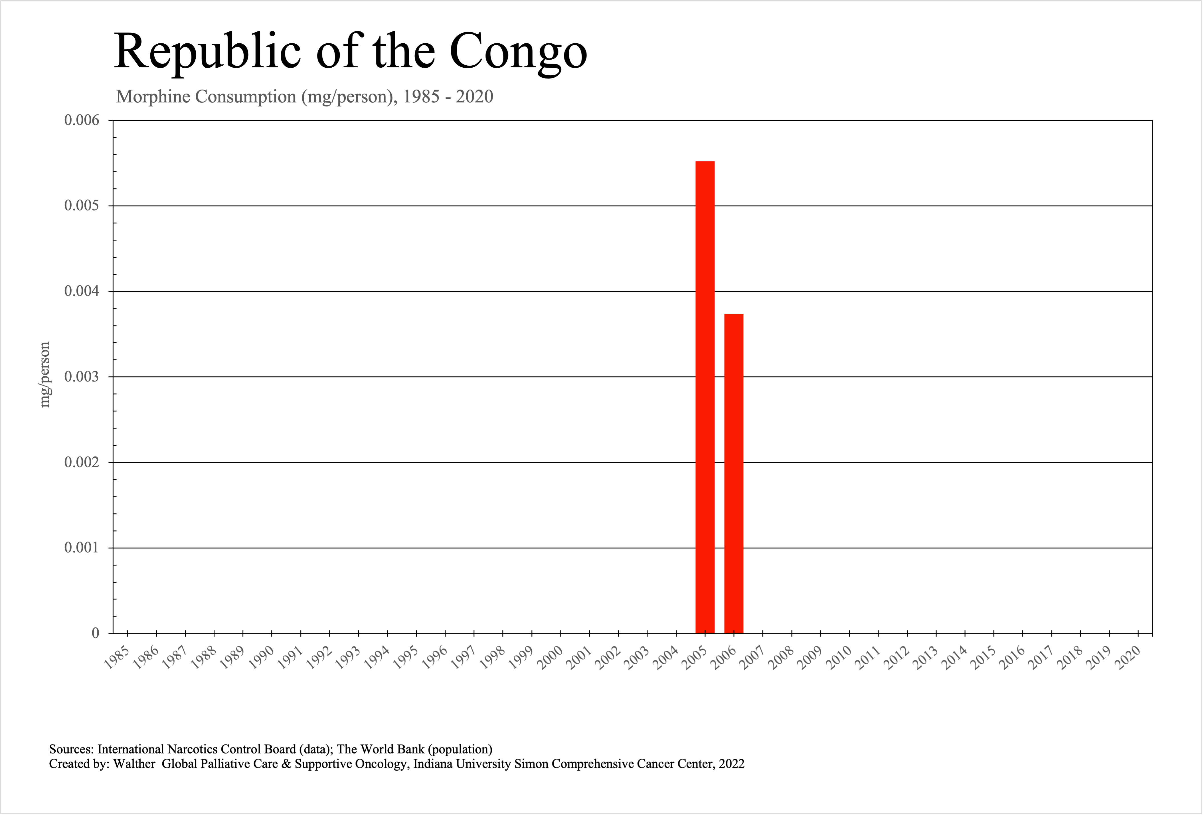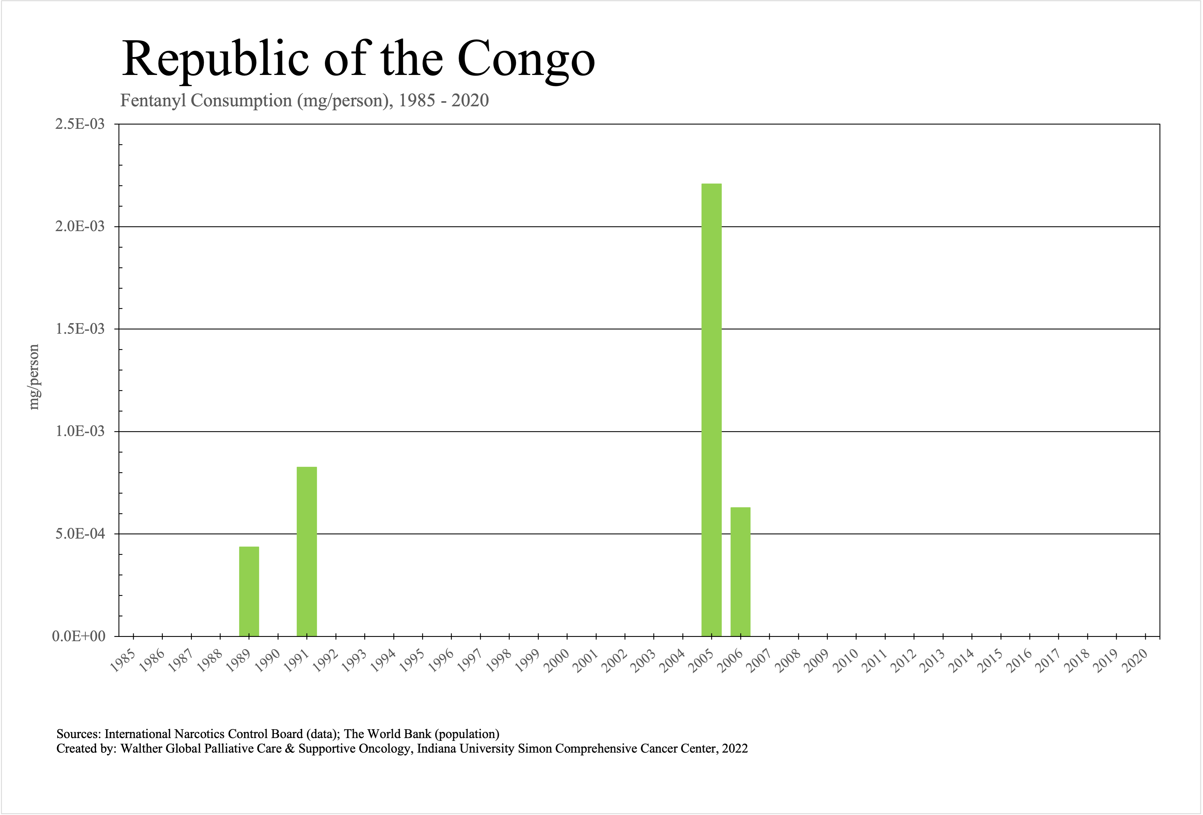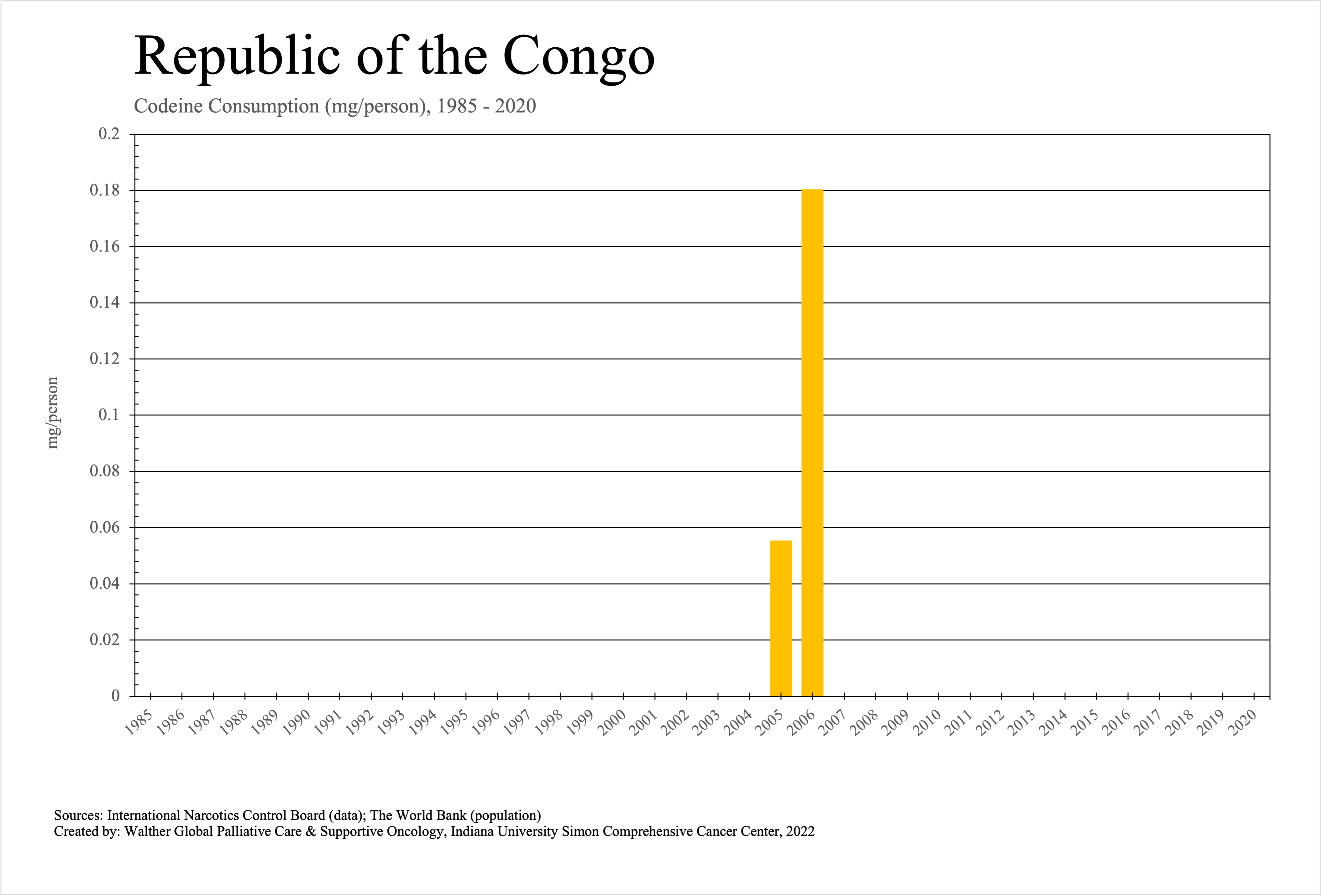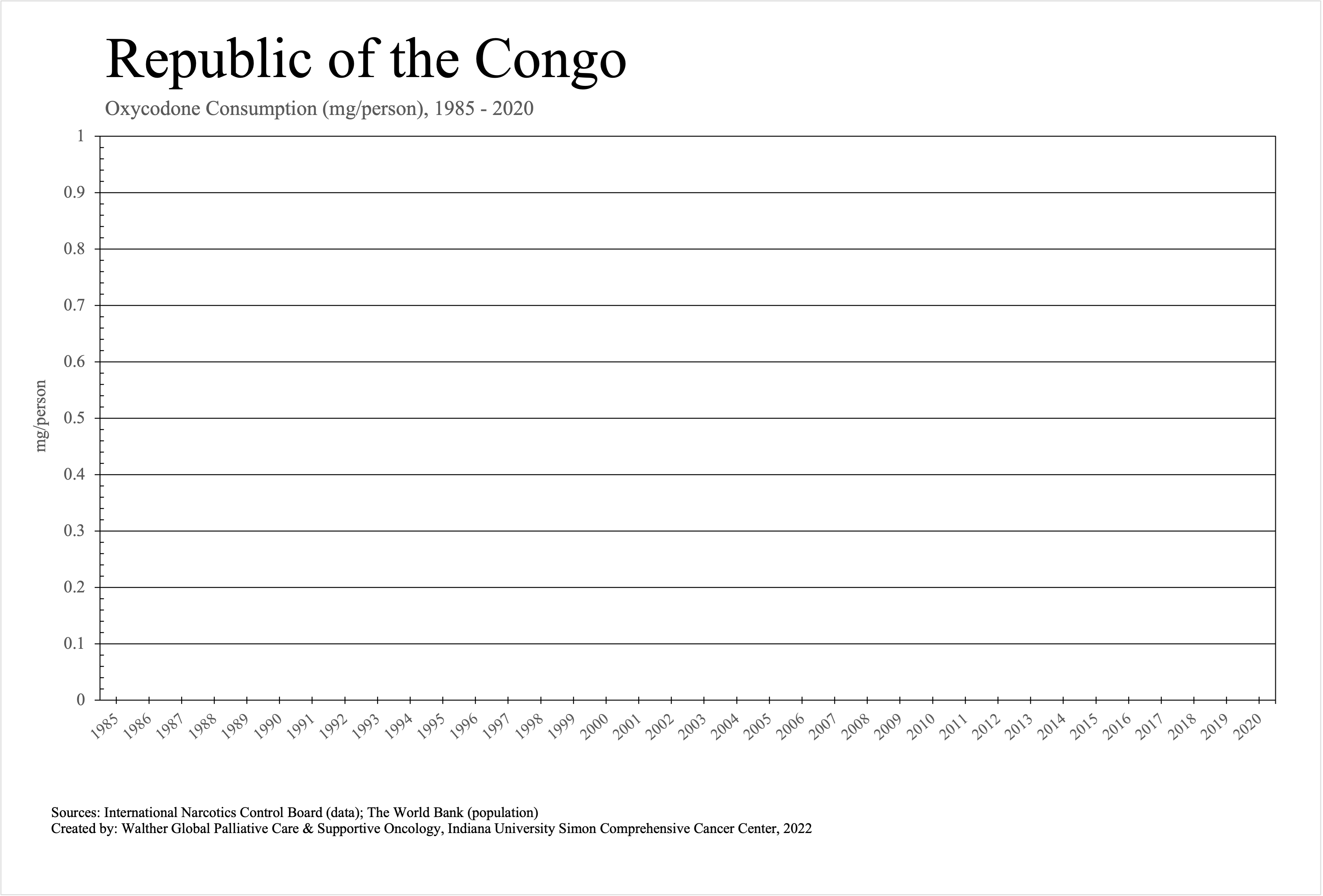 The graphs below provide the Essential Controlled Medicines consumption data trends from 1985 to 2020 in milligrams per capita and Morphine Equivalence (ME) milligrams per capita, as reported to the International Narcotics Control Board (INCB).
