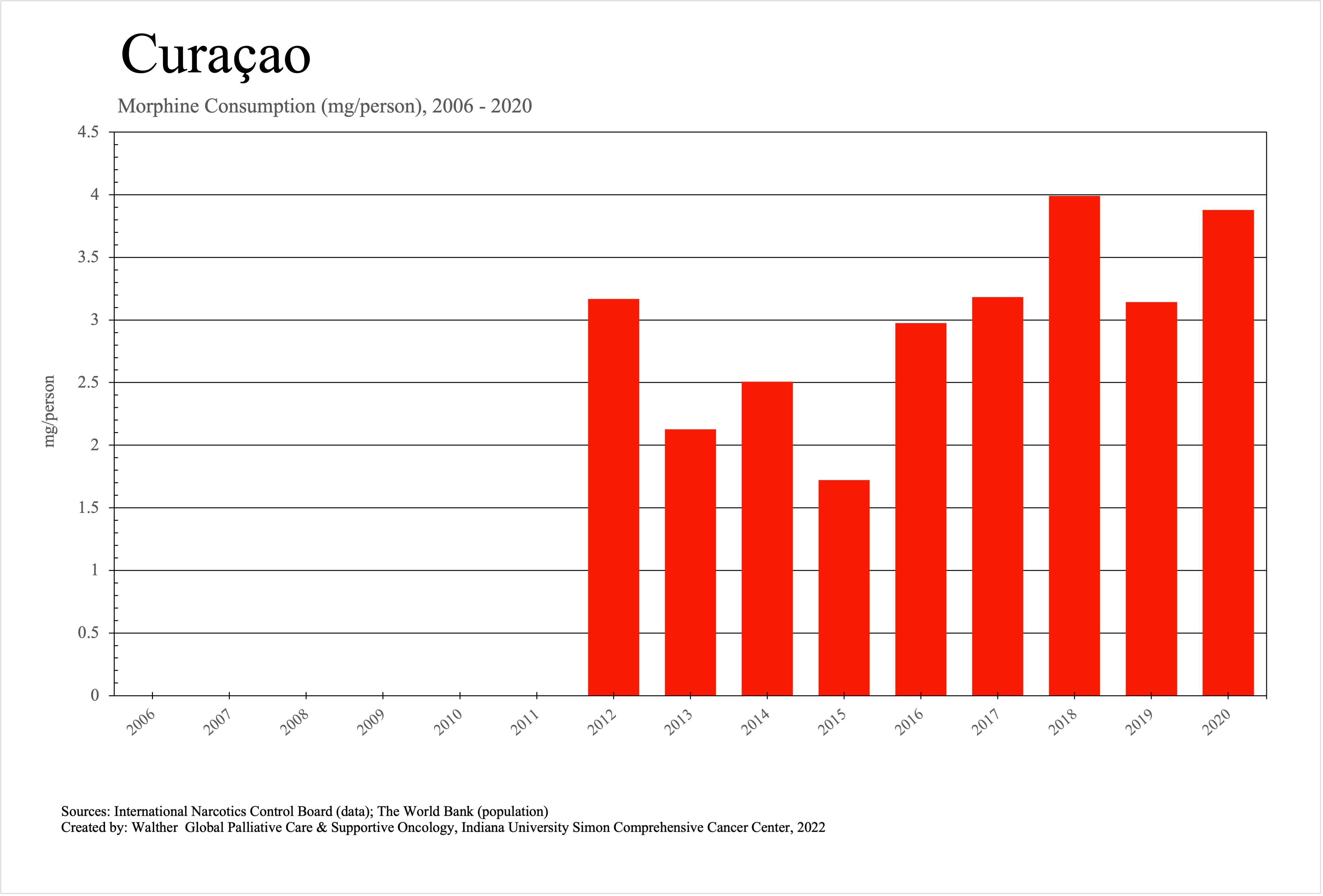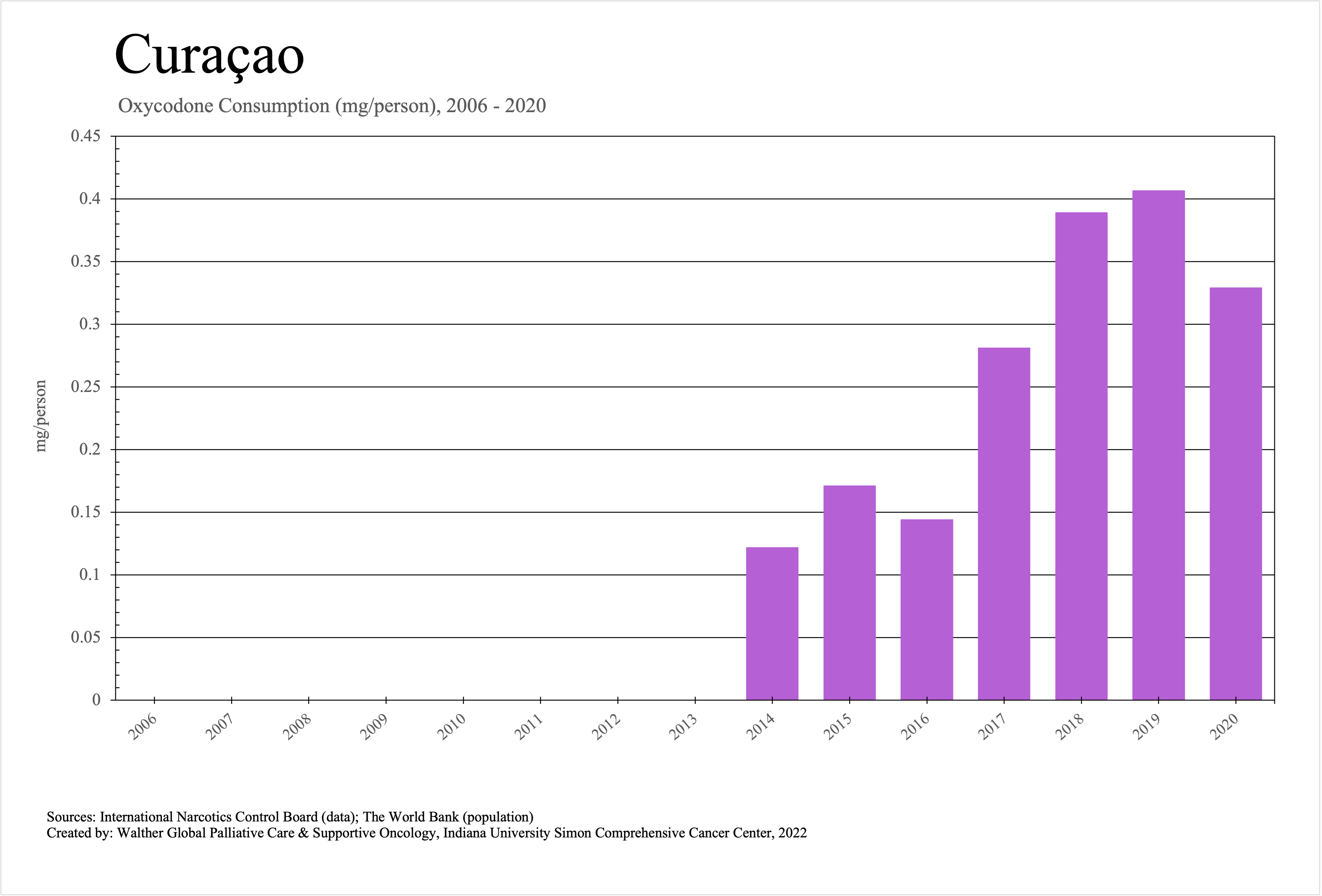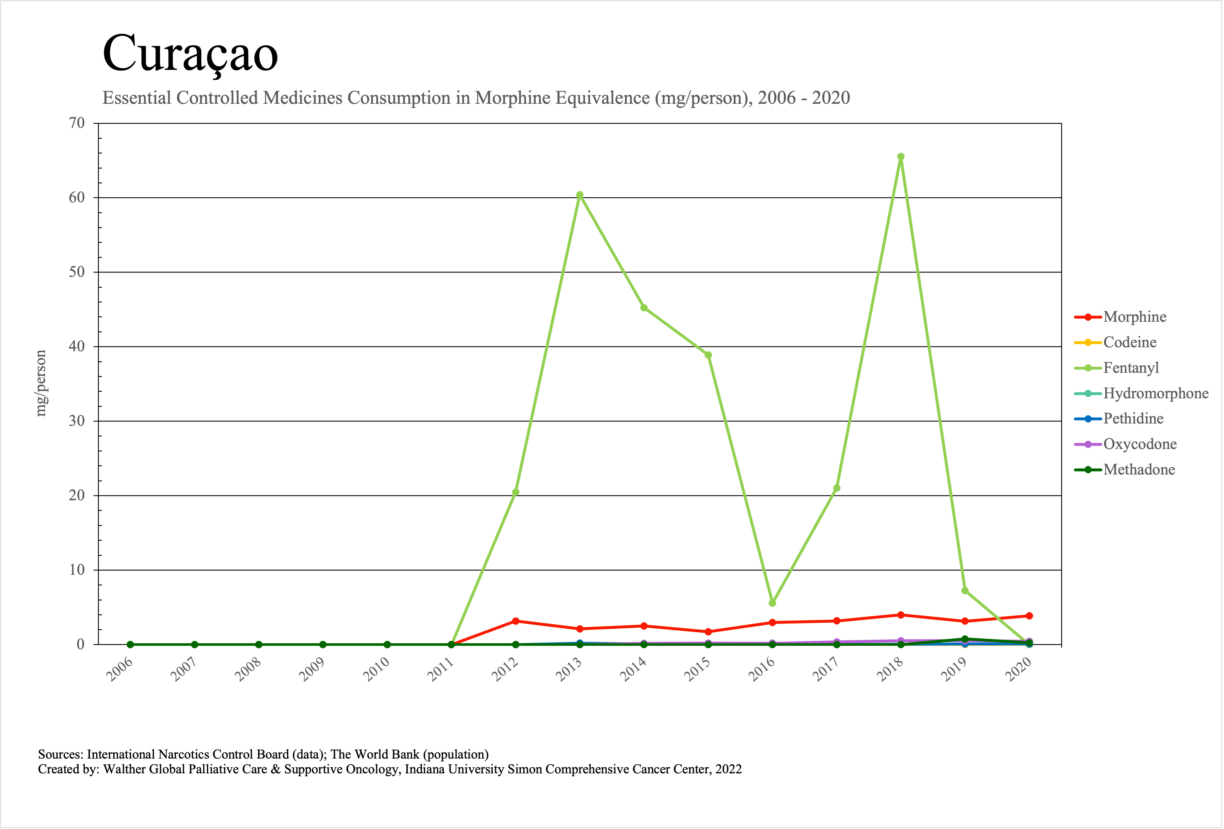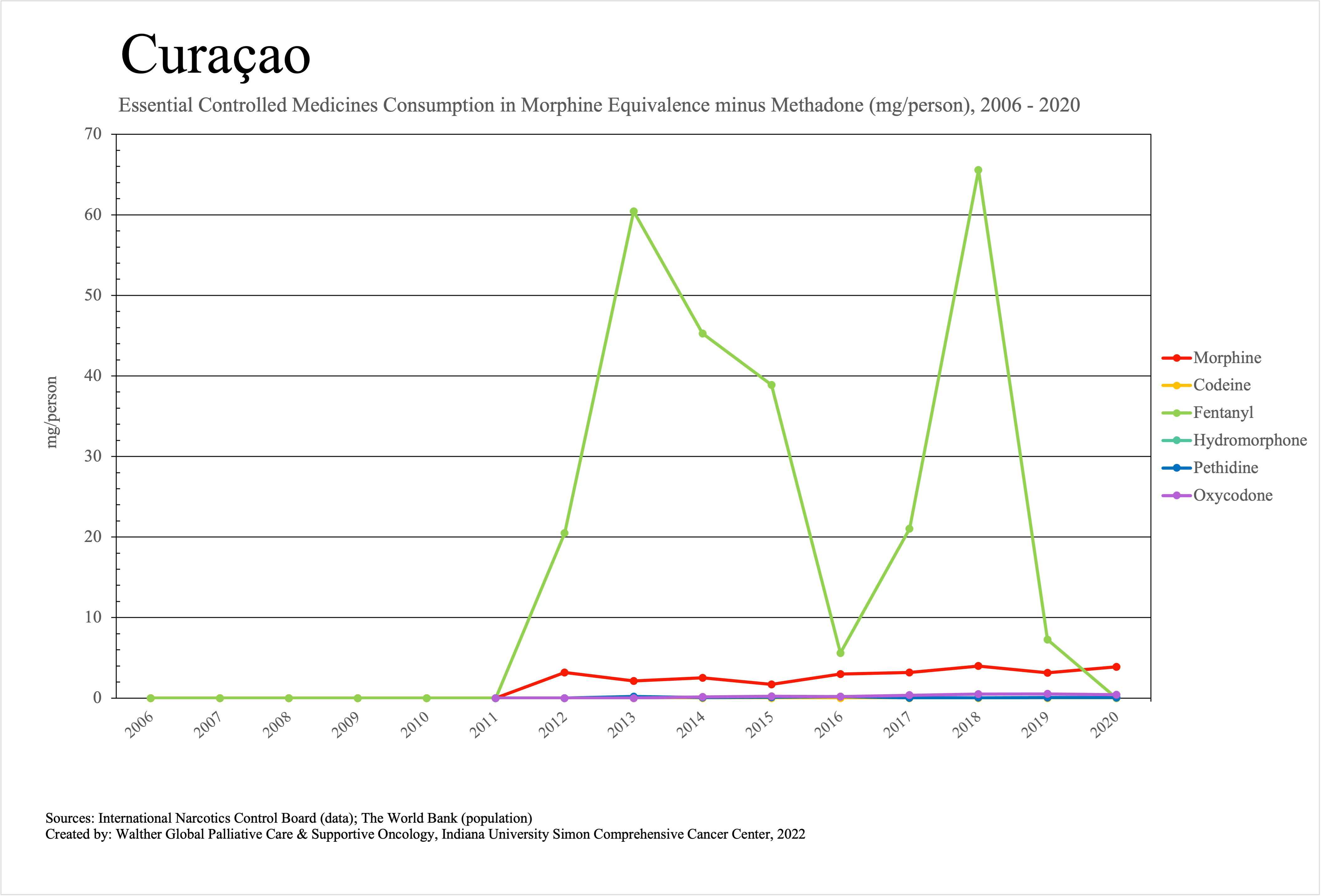 The graphs below provide the Essential Controlled Medicines consumption data trends from 2006 to 2020 in milligrams per capita and Morphine Equivalence (ME) milligrams per capita, as reported to the International Narcotics Control Board (INCB).