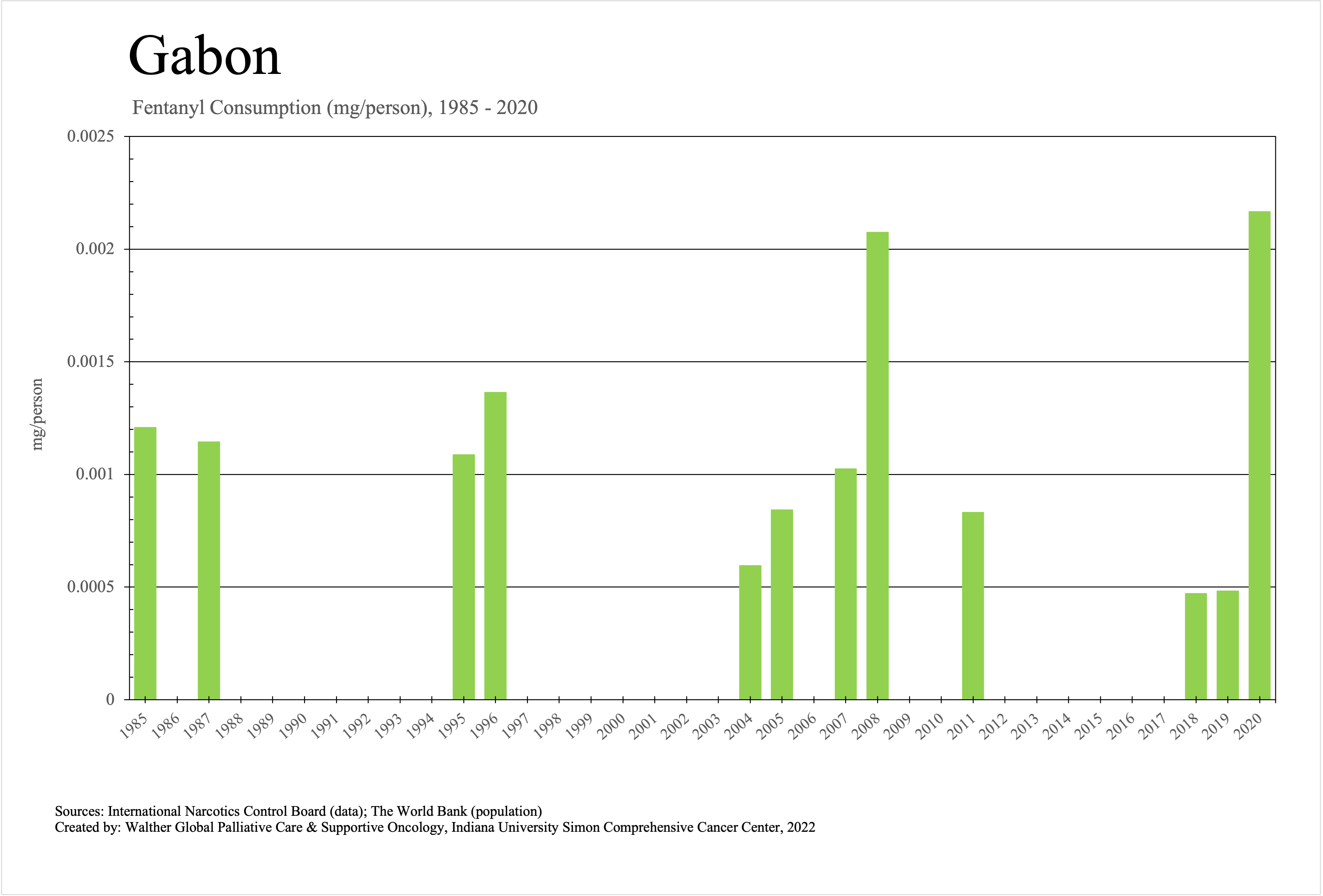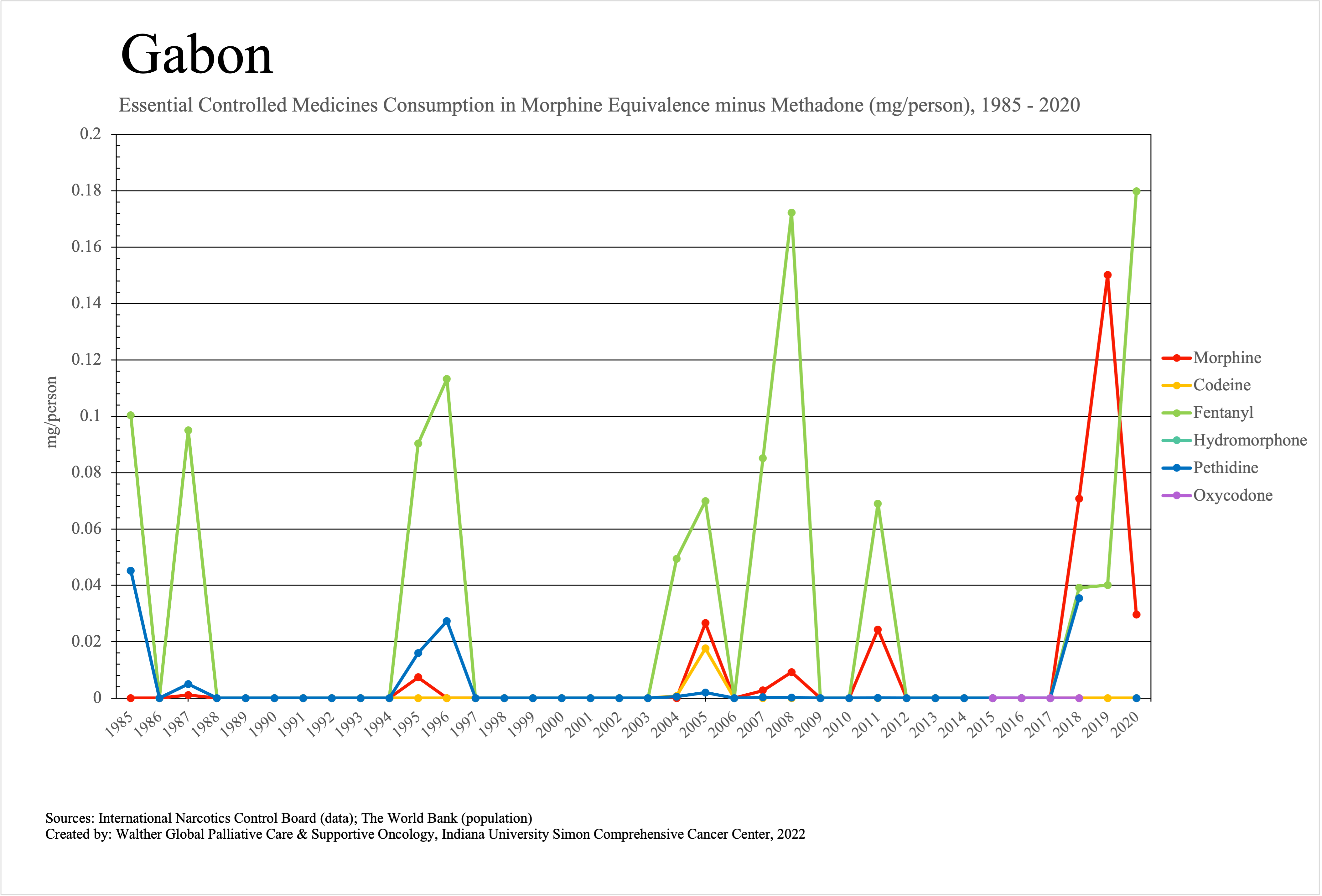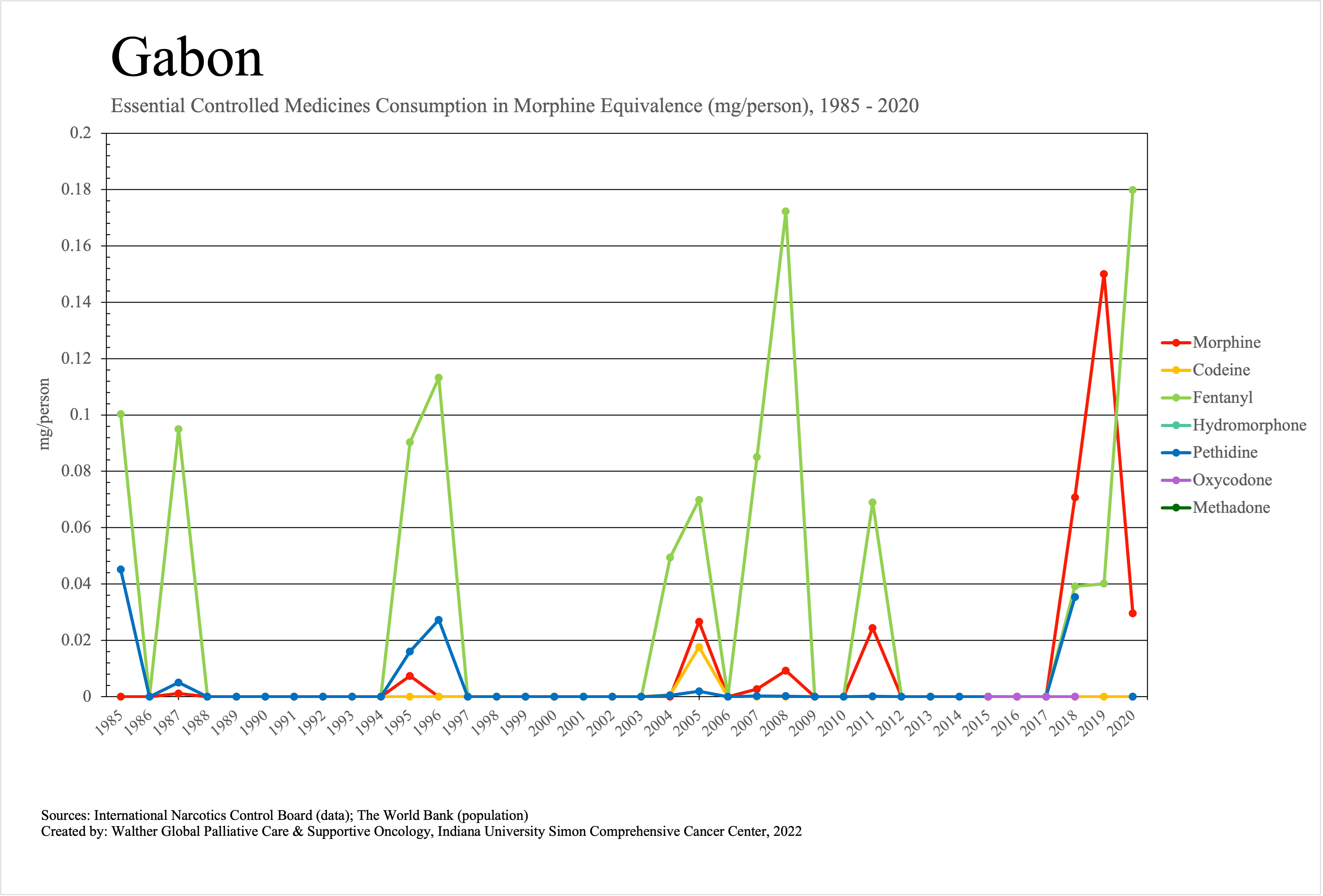The graphs below provide the Essential Controlled Medicines consumption data trends from 1985 to 2020 in milligrams per capita and Morphine Equivalence (ME) milligrams per capita, as reported to the International Narcotics Control Board (INCB).