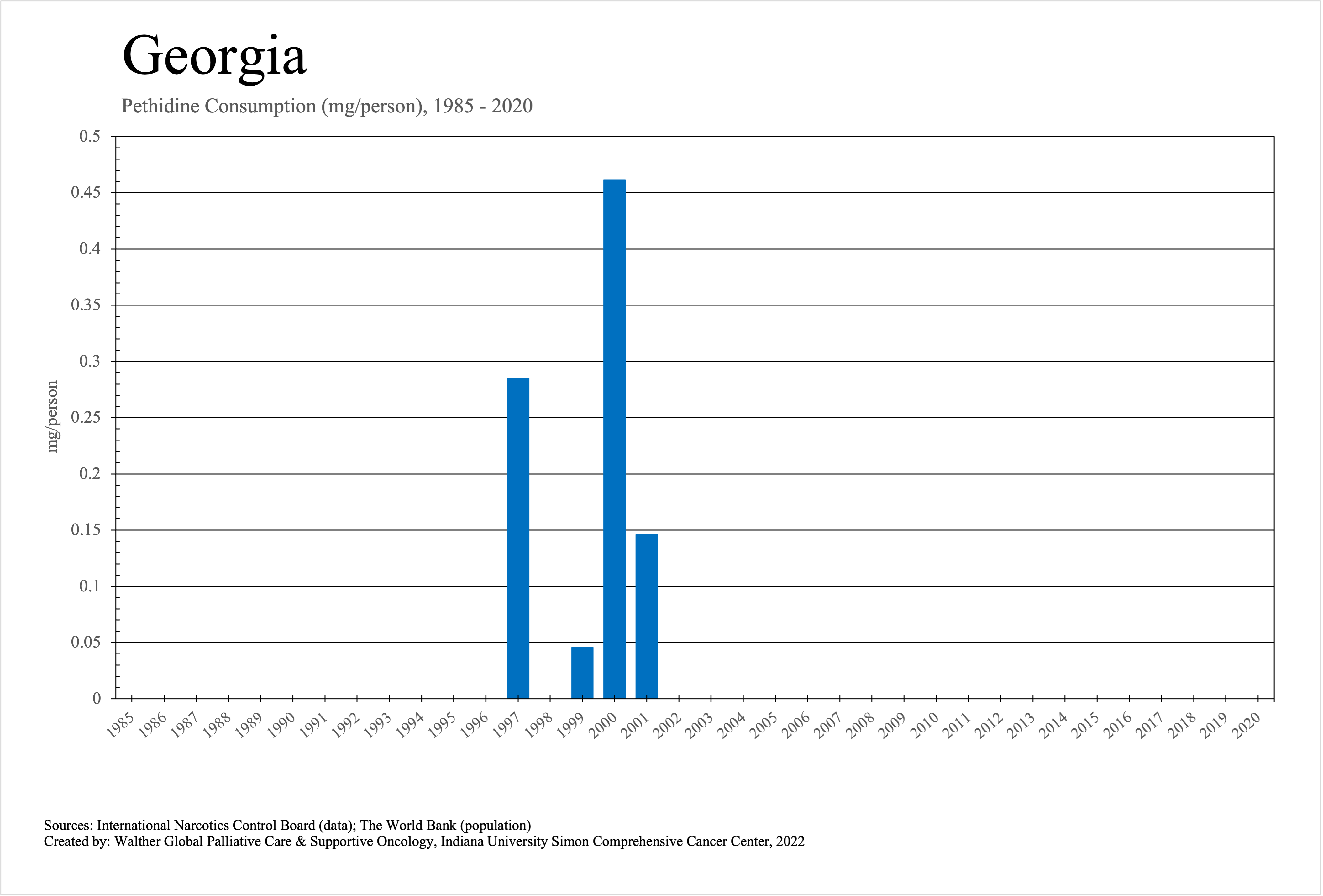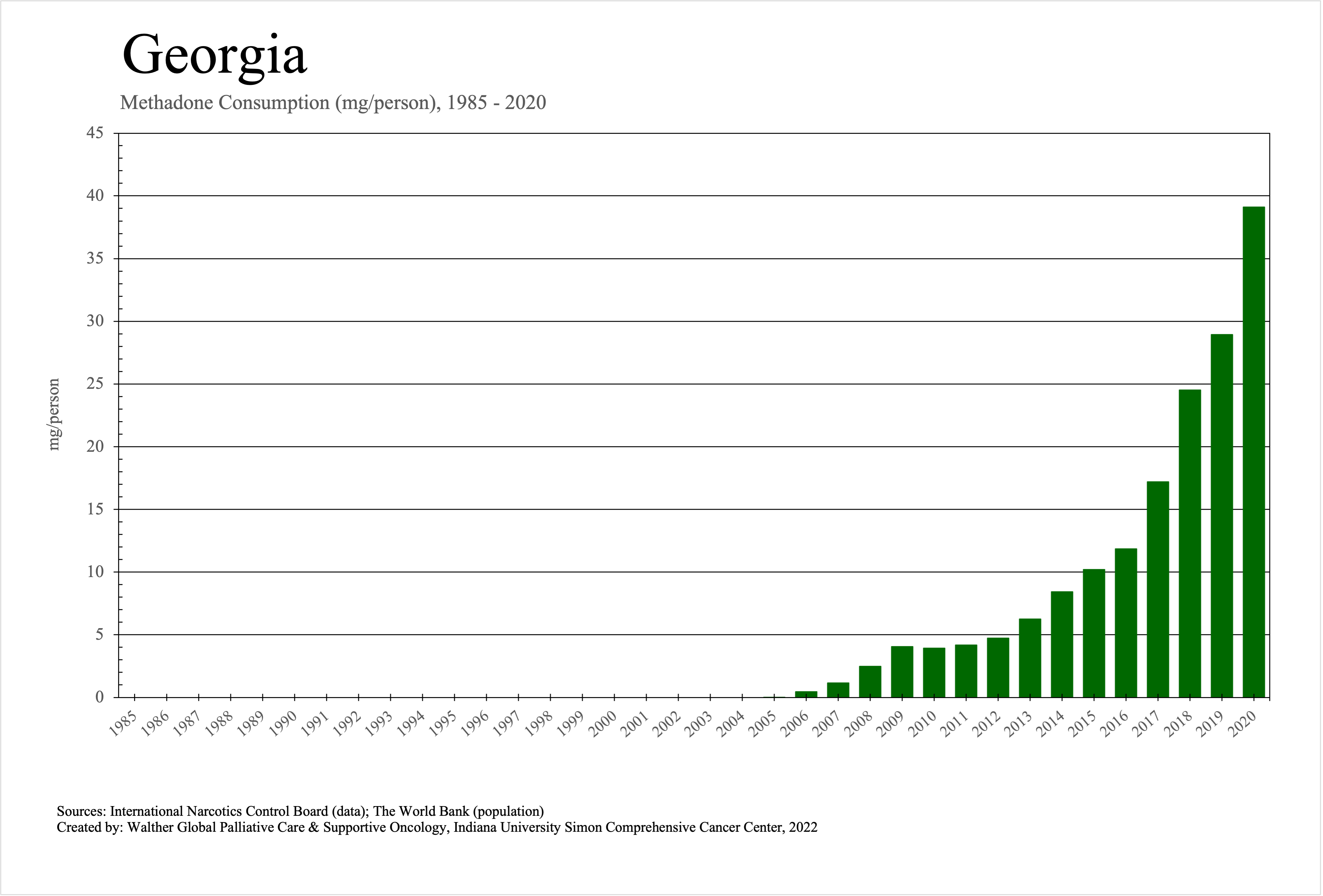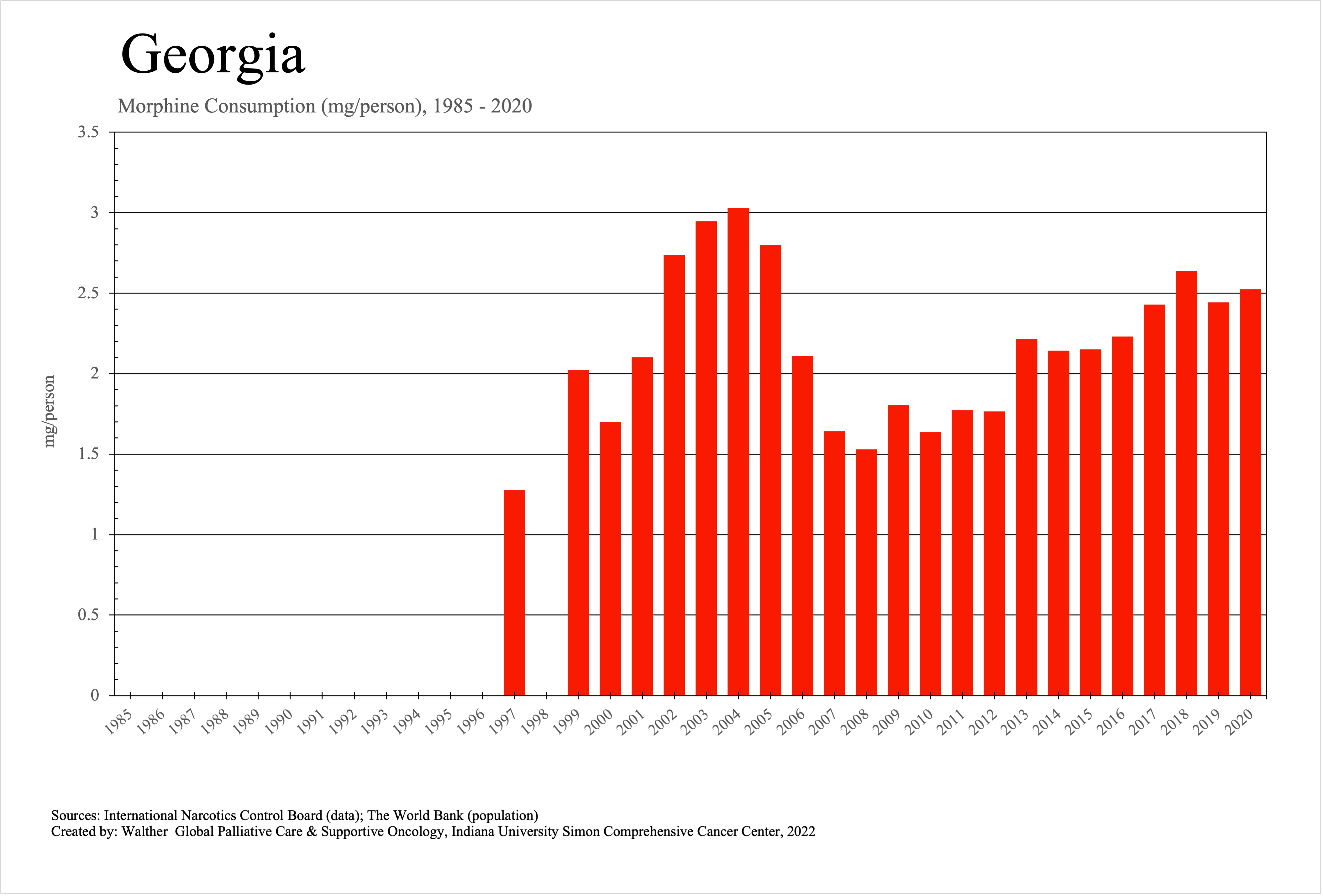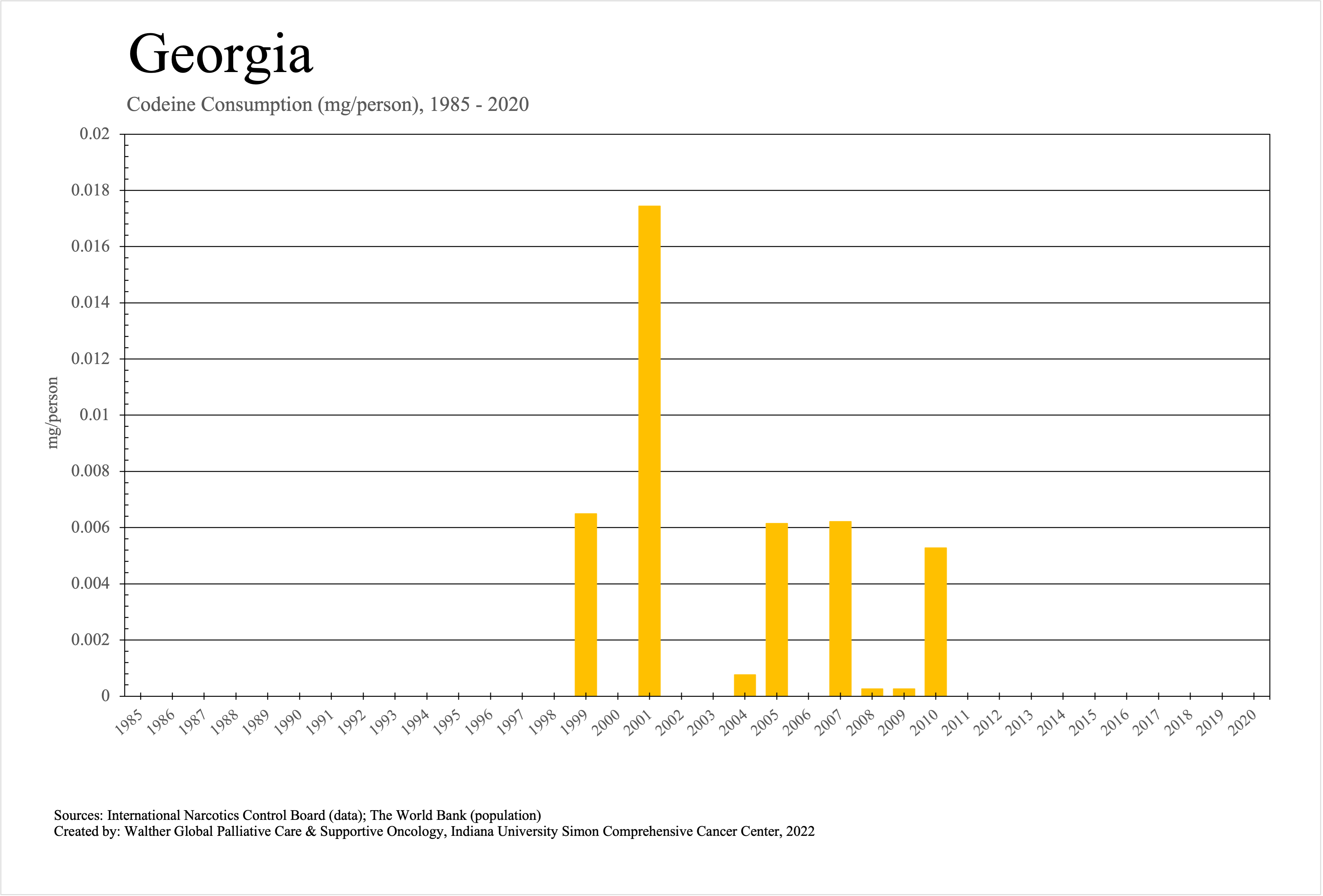 The graphs below provide the Essential Controlled Medicines consumption data trends from 1985 to 2020 in milligrams per capita and Morphine Equivalence (ME) milligrams per capita, as reported to the International Narcotics Control Board (INCB).