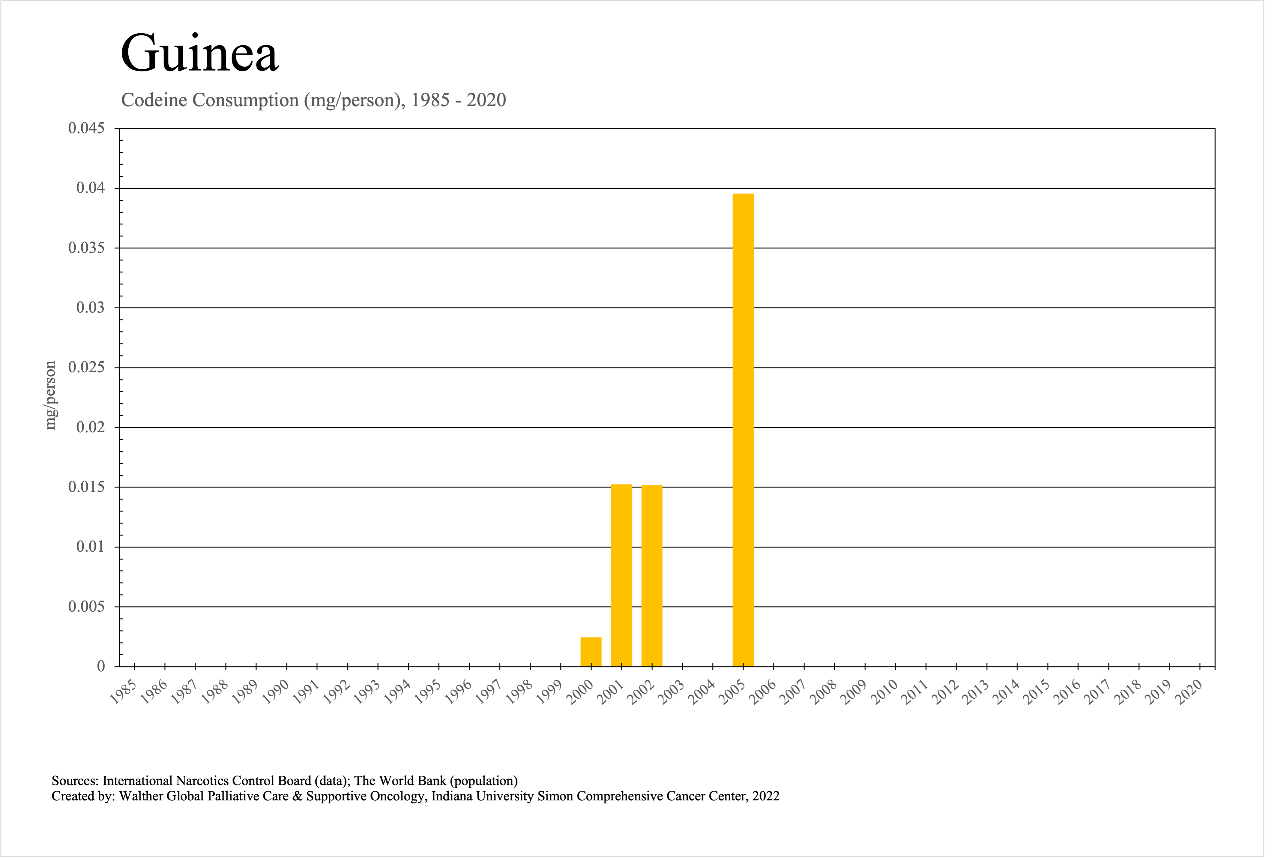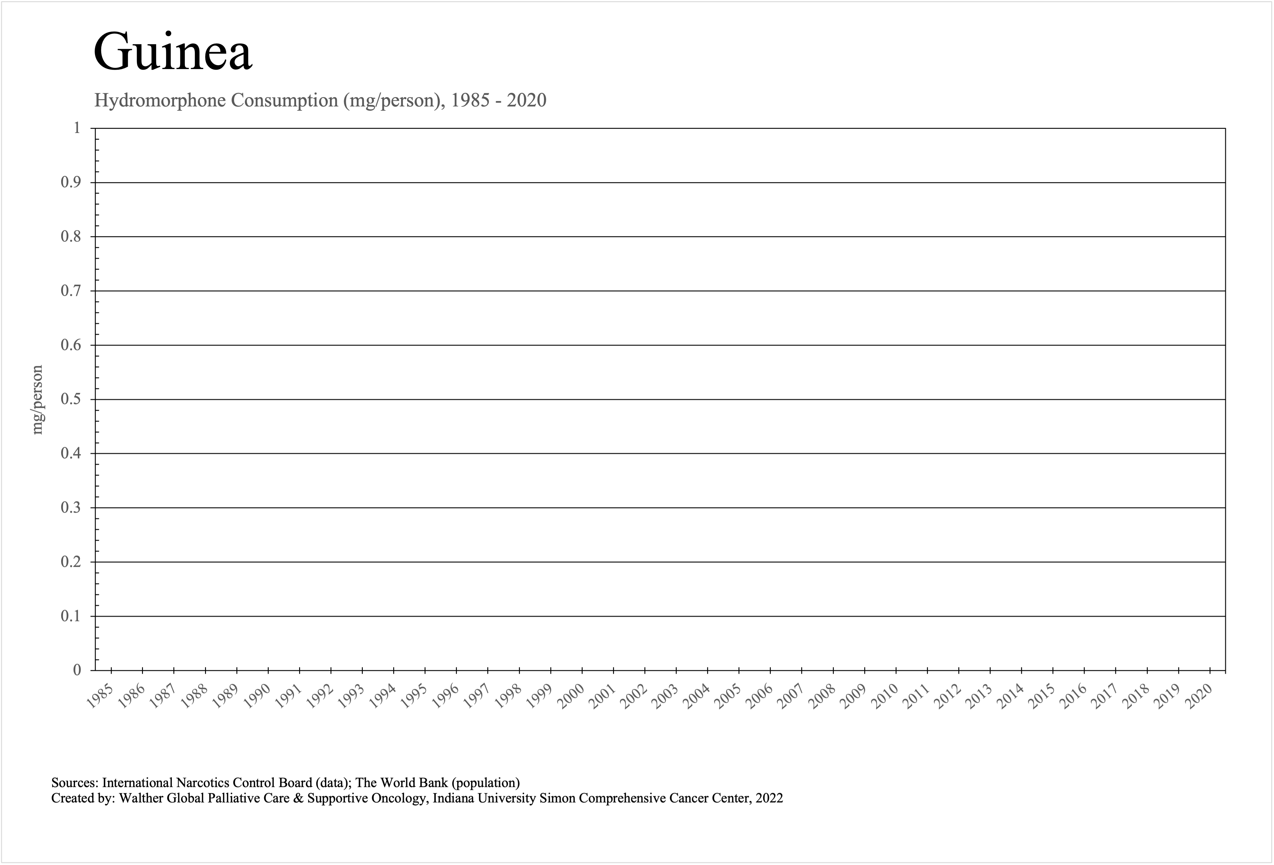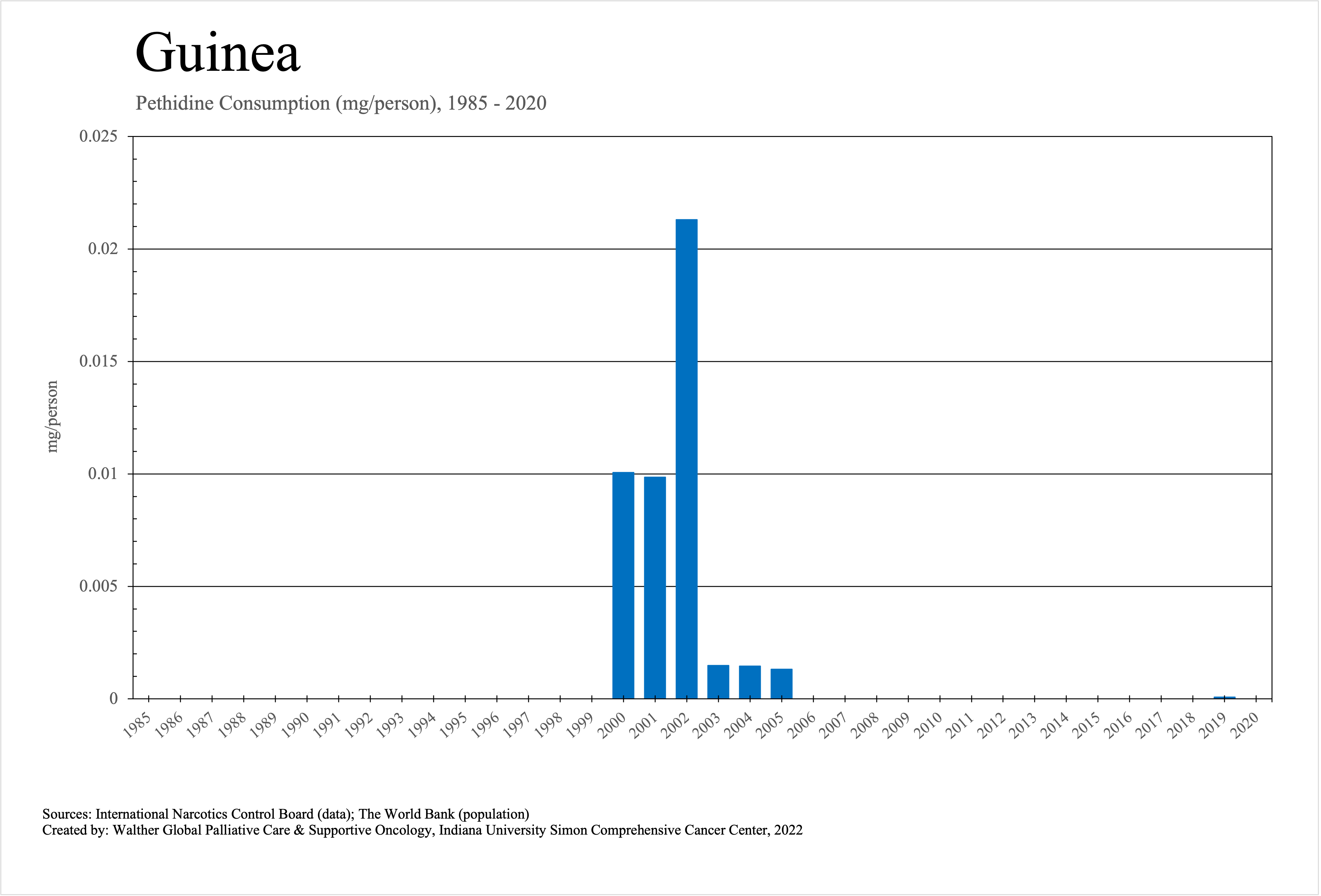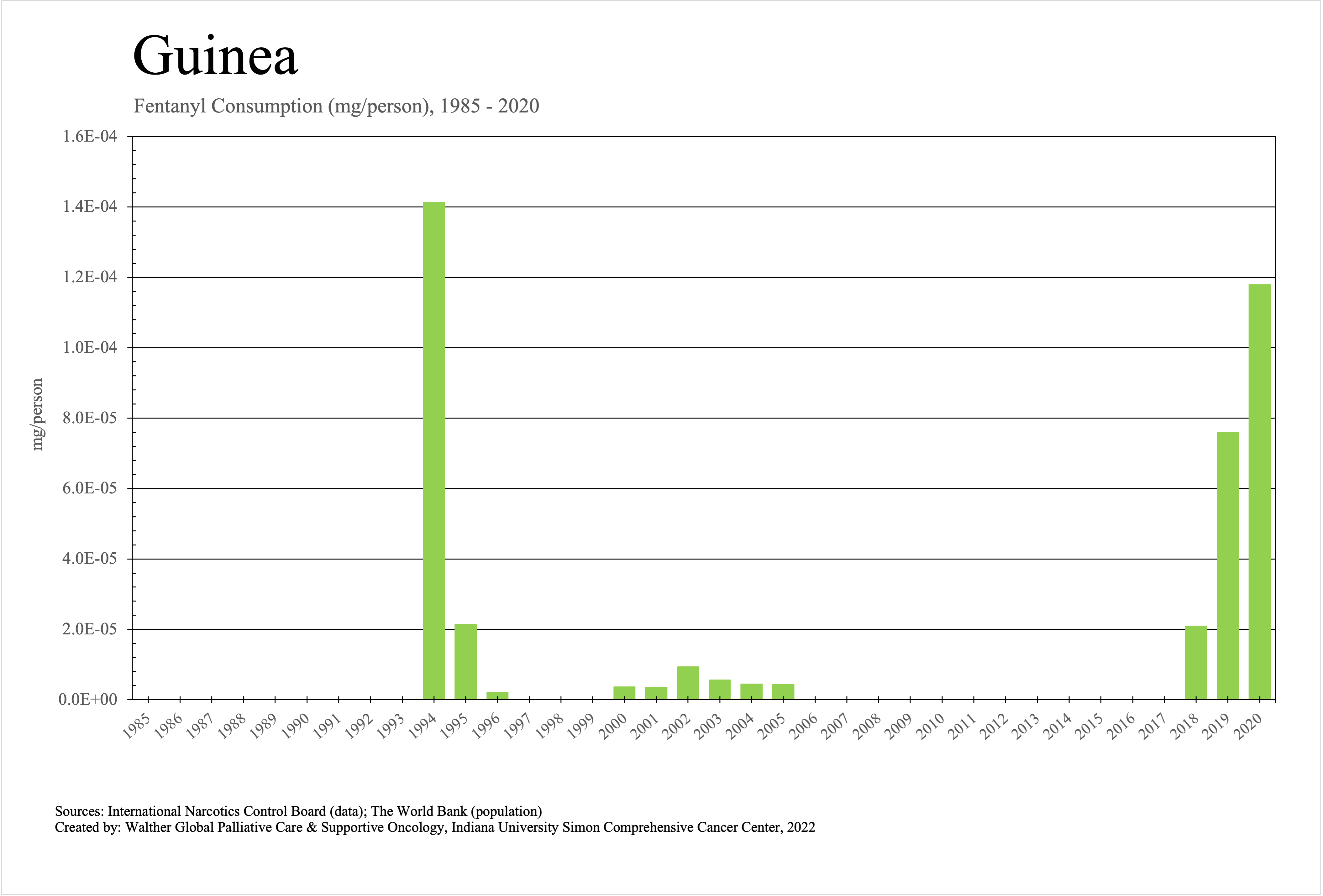 The graphs below provide the Essential Controlled Medicines consumption data trends from 1985 to 2020 in milligrams per capita and Morphine Equivalence (ME) milligrams per capita, as reported to the International Narcotics Control Board (INCB).