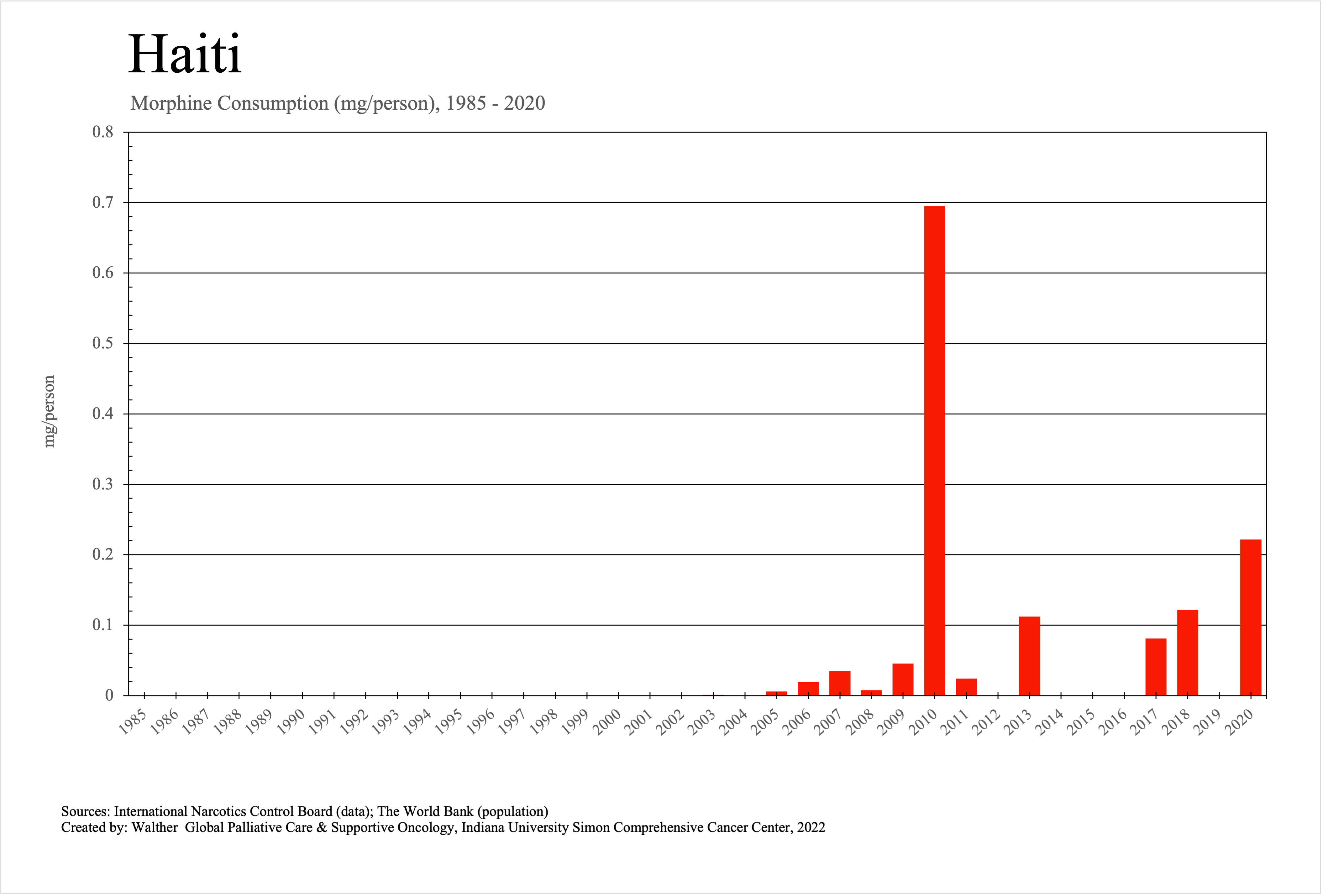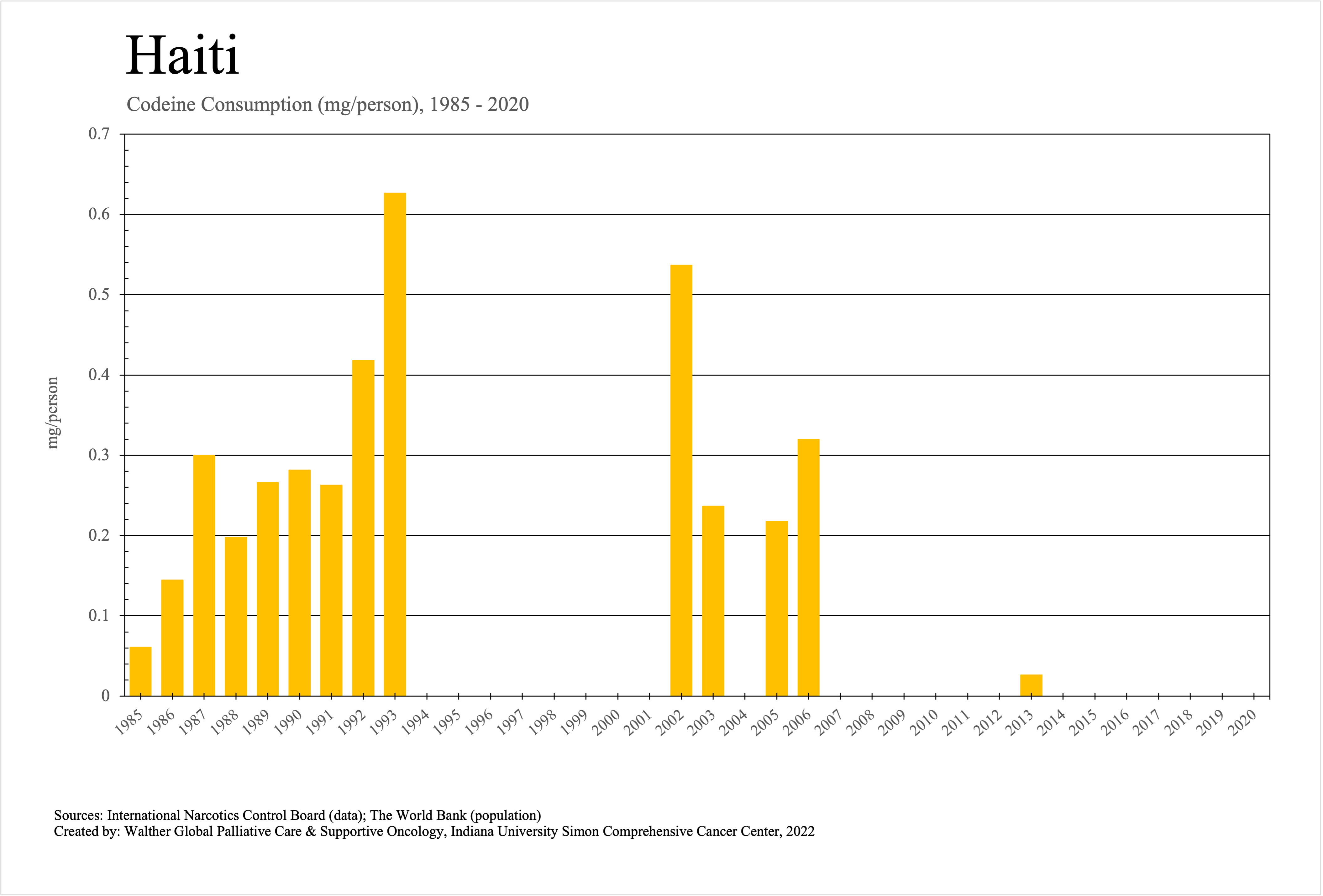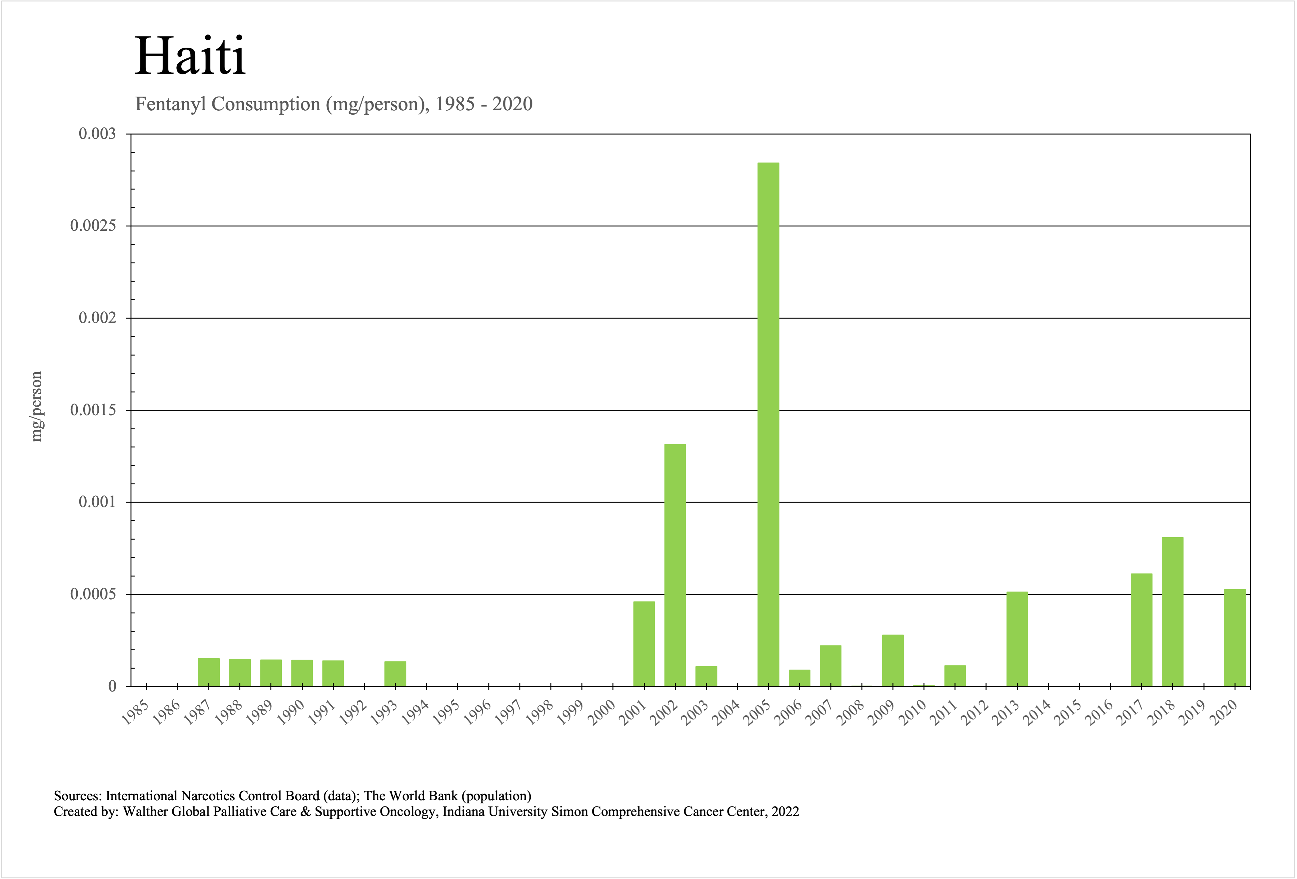 The graphs below provide the Essential Controlled Medicines consumption data trends from 1985 to 2020 in milligrams per capita and Morphine Equivalence (ME) milligrams per capita, as reported to the International Narcotics Control Board (INCB).