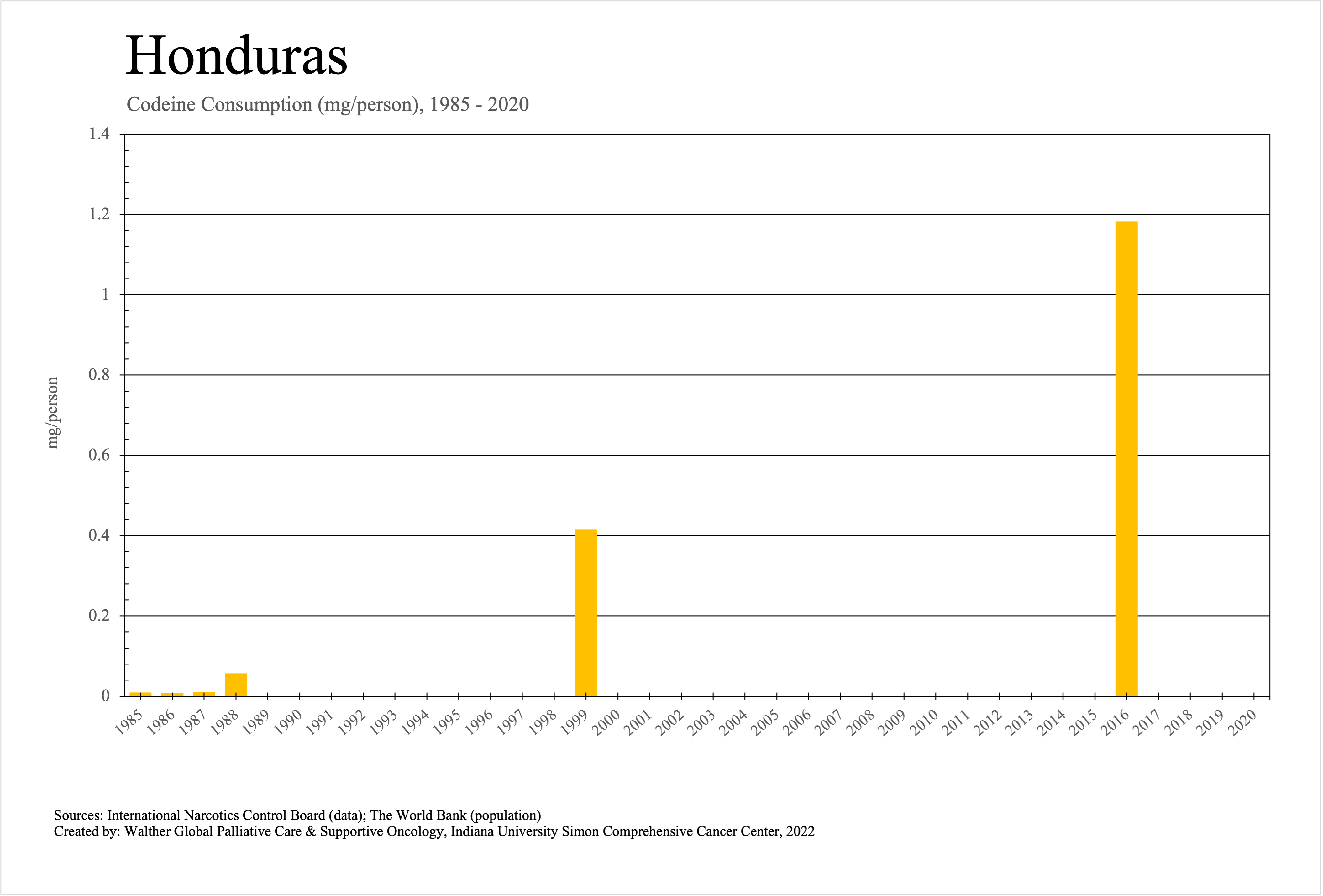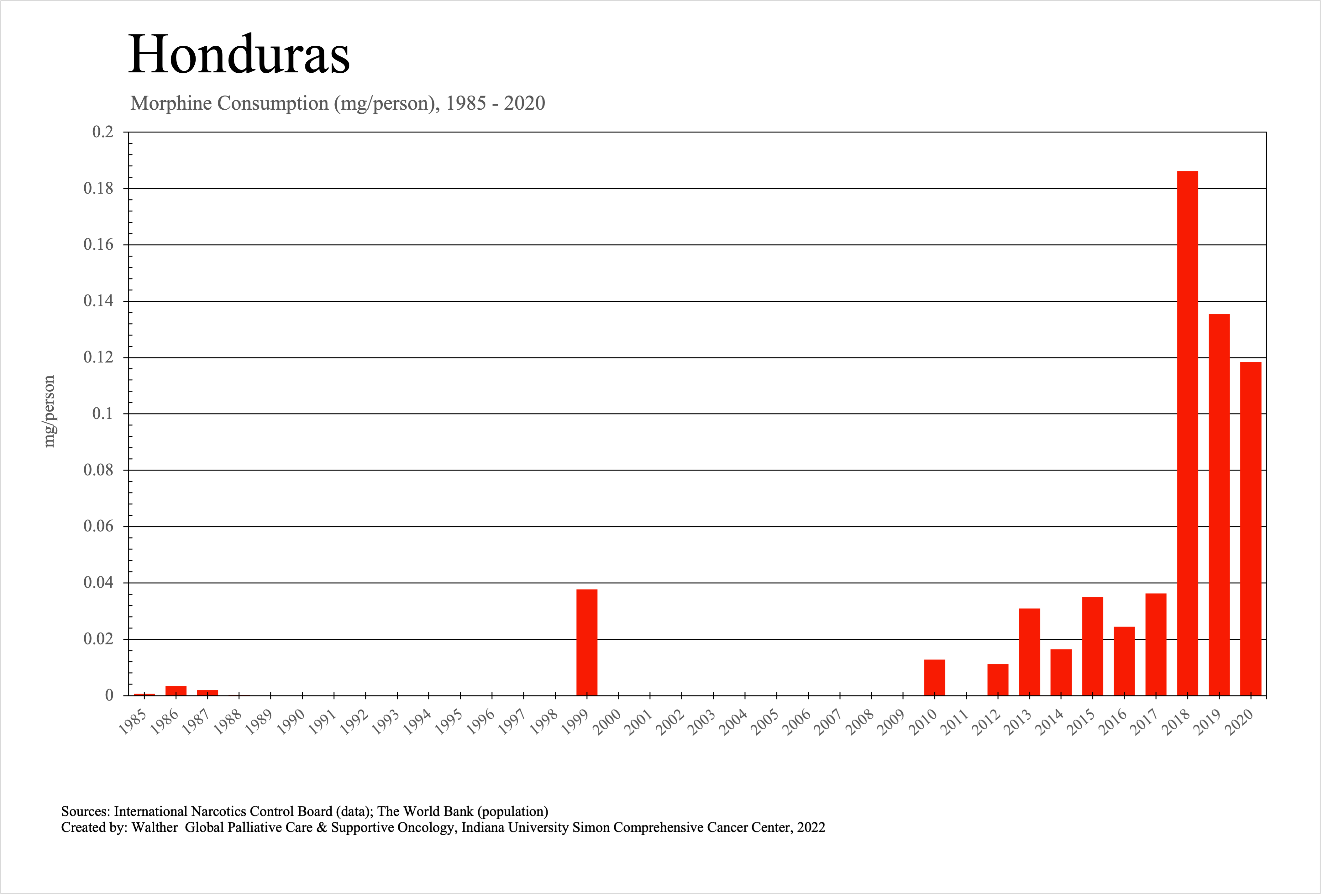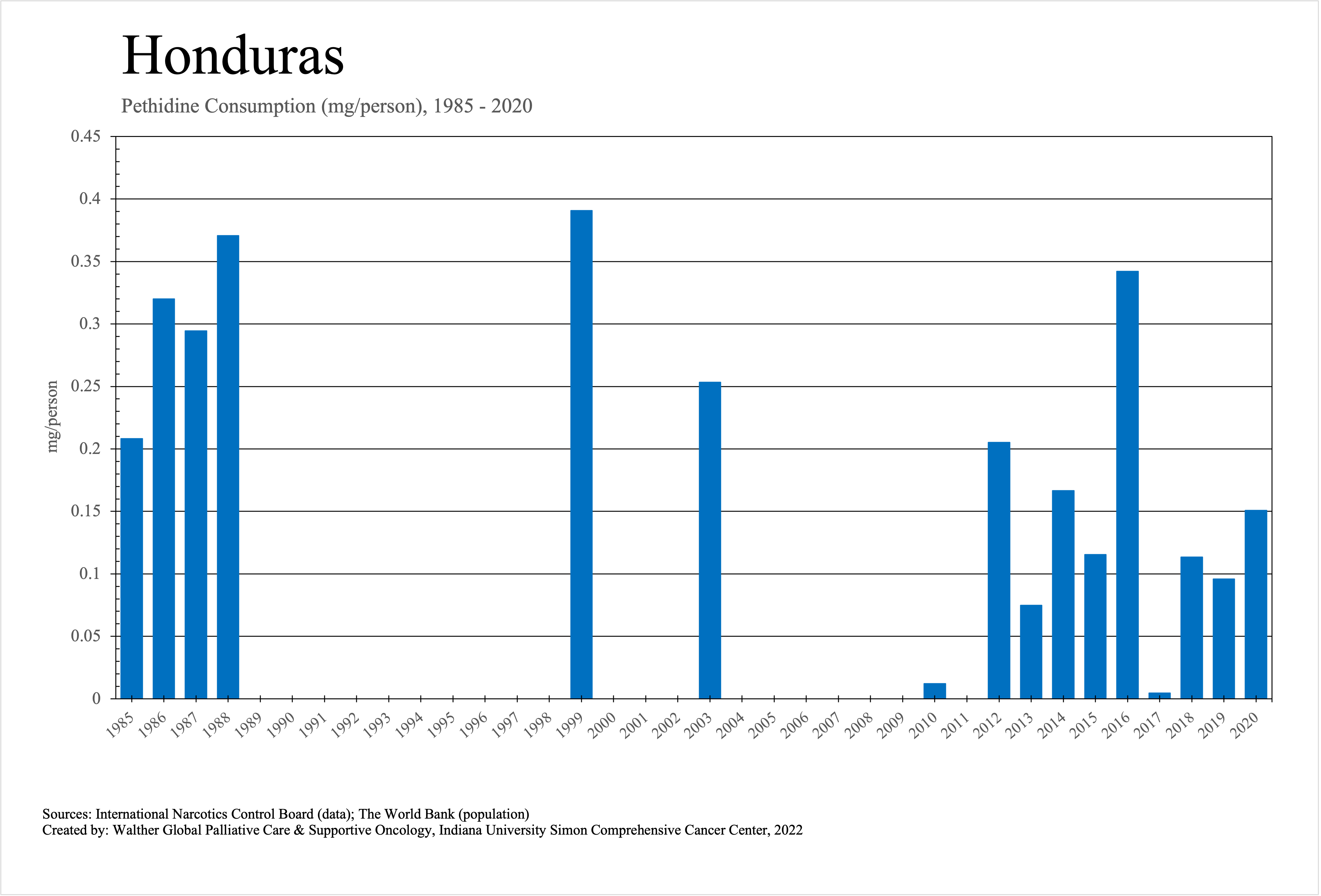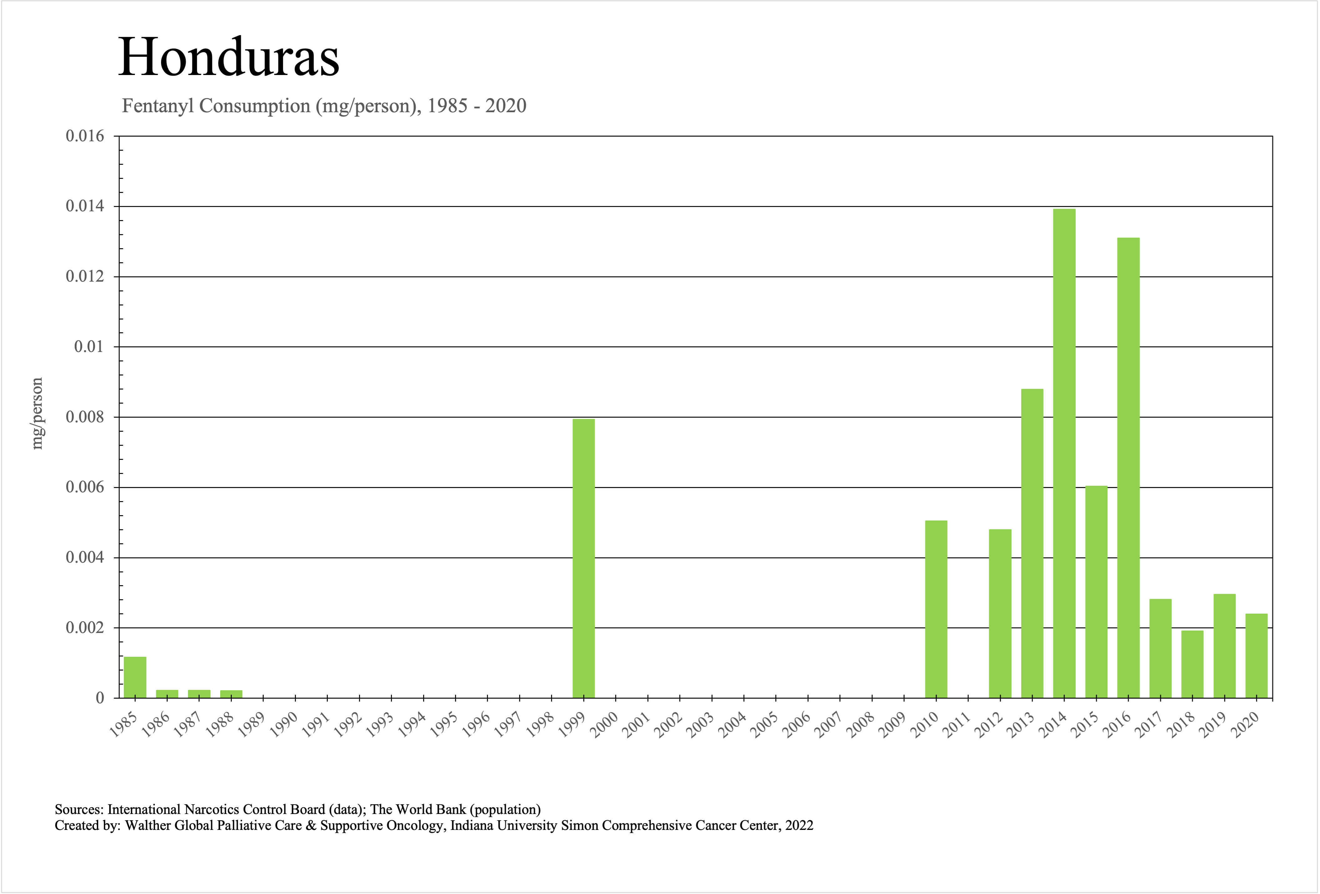 The graphs below provide the Essential Controlled Medicines consumption data trends from 1985 to 2020 in milligrams per capita and Morphine Equivalence (ME) milligrams per capita, as reported to the International Narcotics Control Board (INCB).