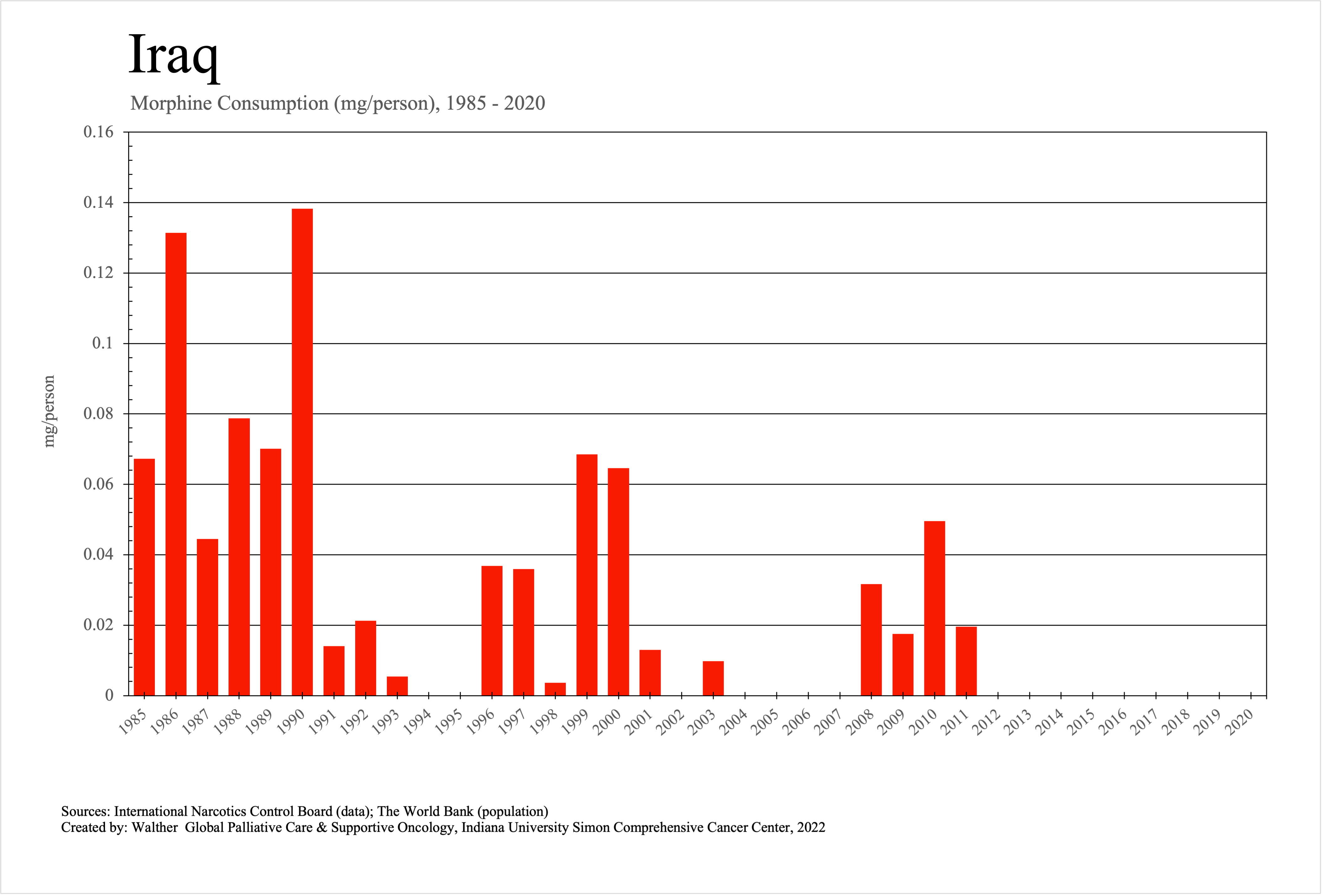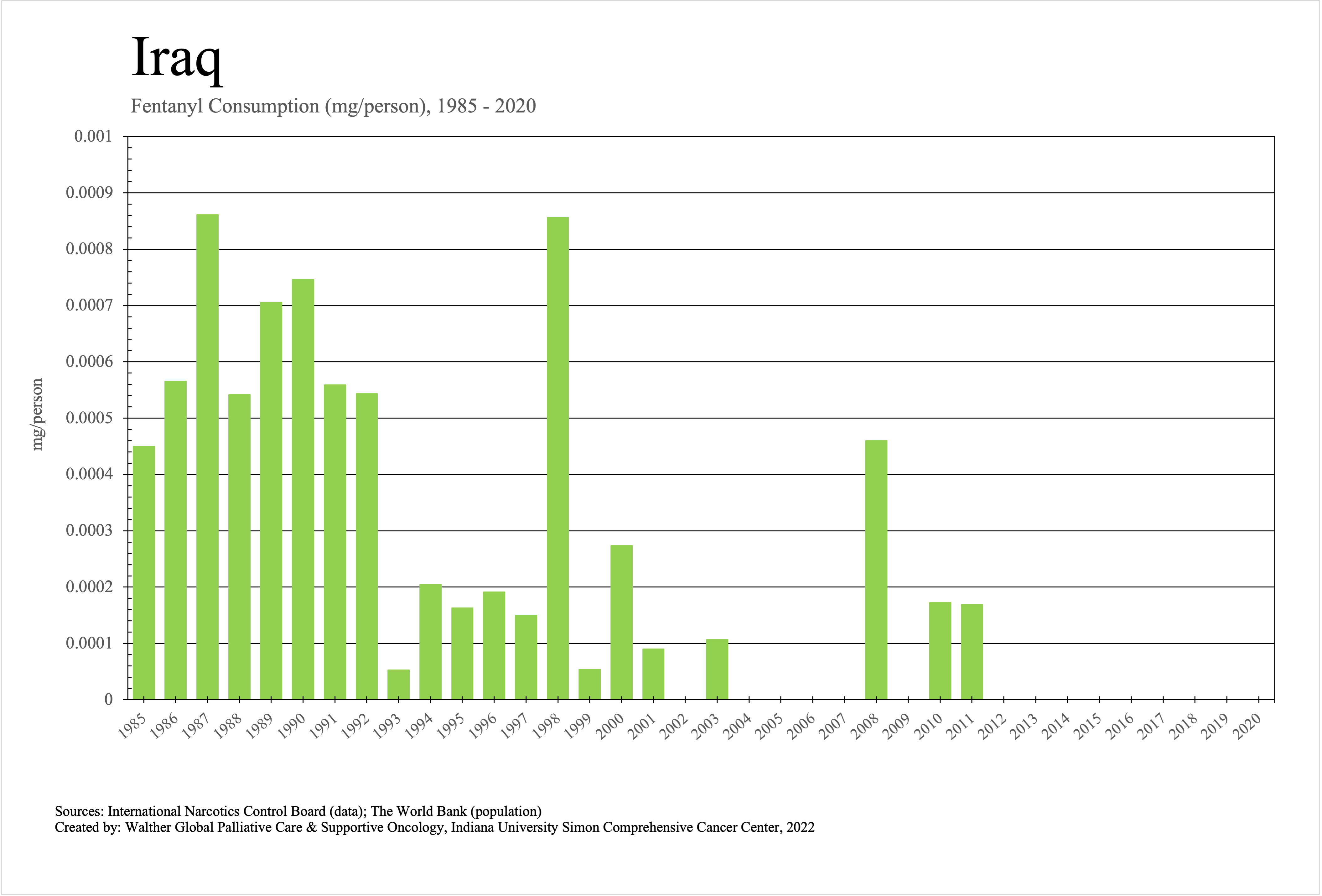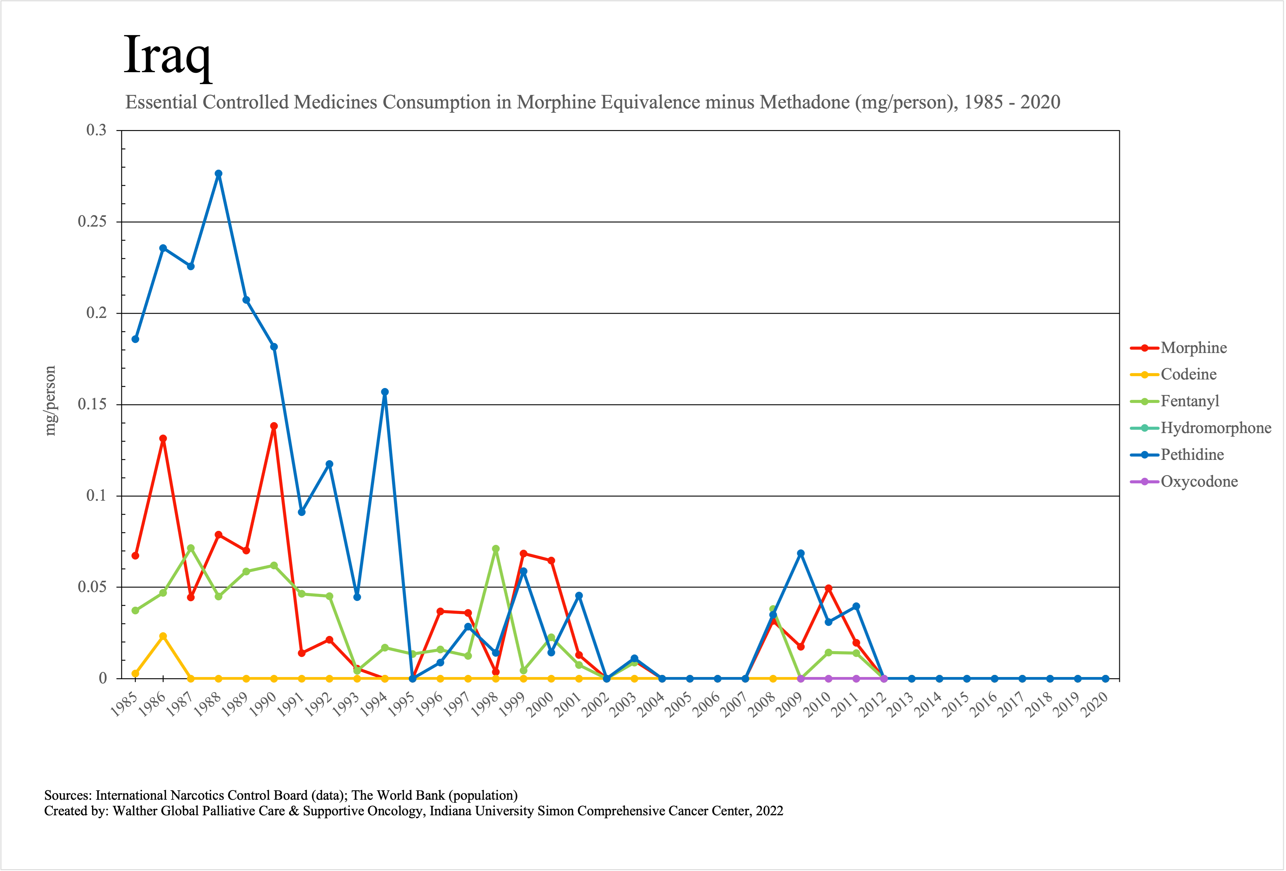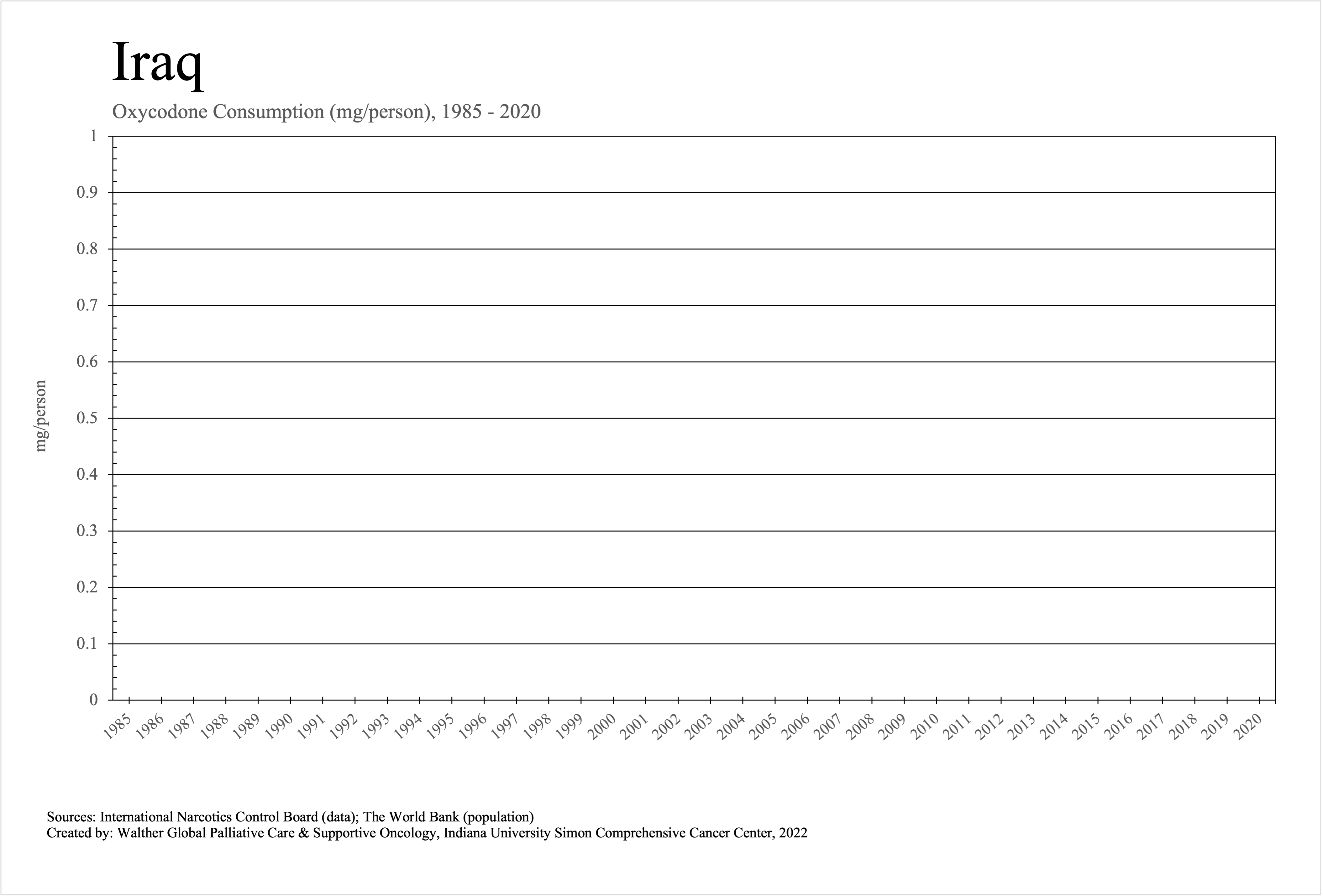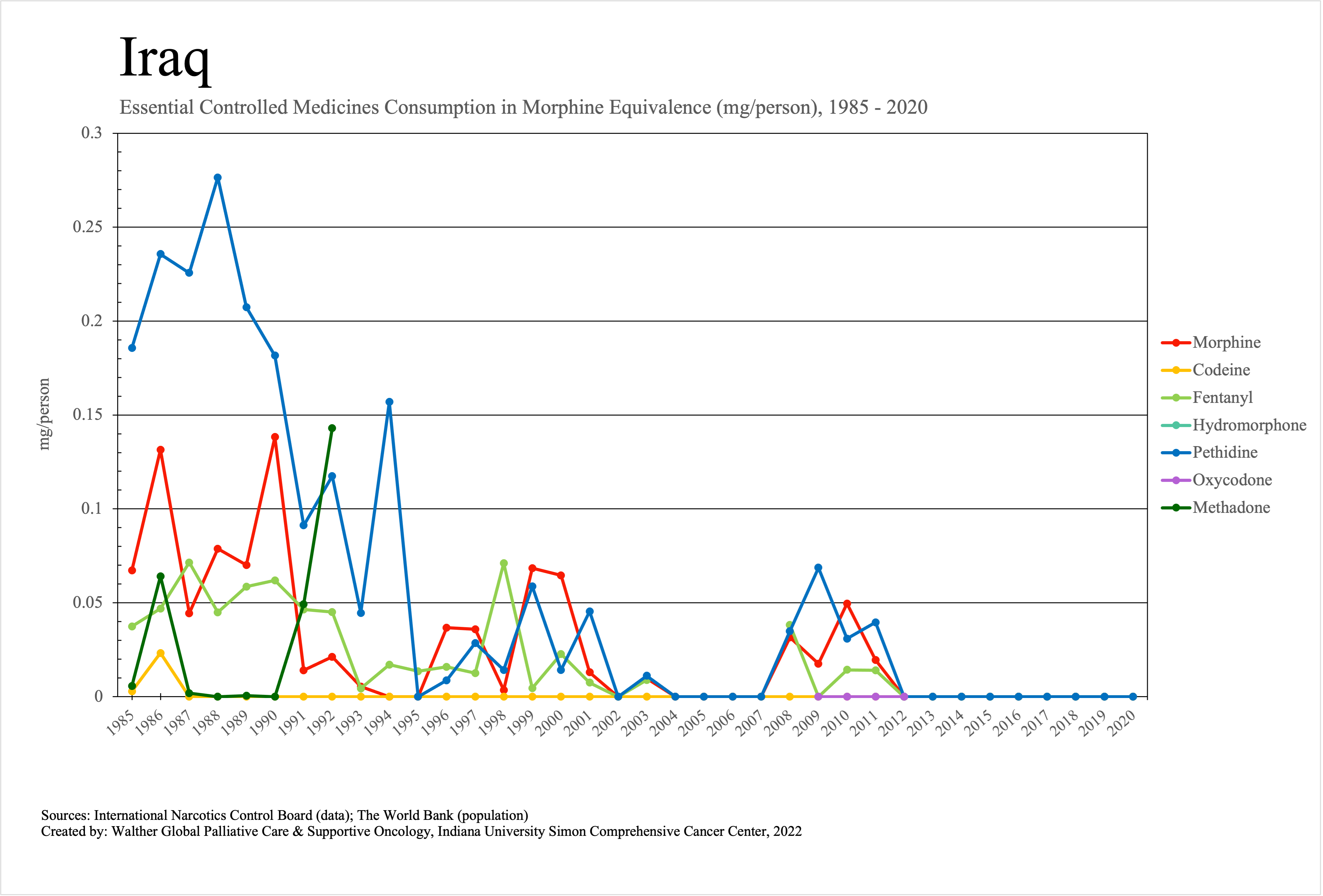 The graphs below provide the Essential Controlled Medicines consumption data trends from 1985 to 2020 in milligrams per capita and Morphine Equivalence (ME) milligrams per capita, as reported to the International Narcotics Control Board (INCB).