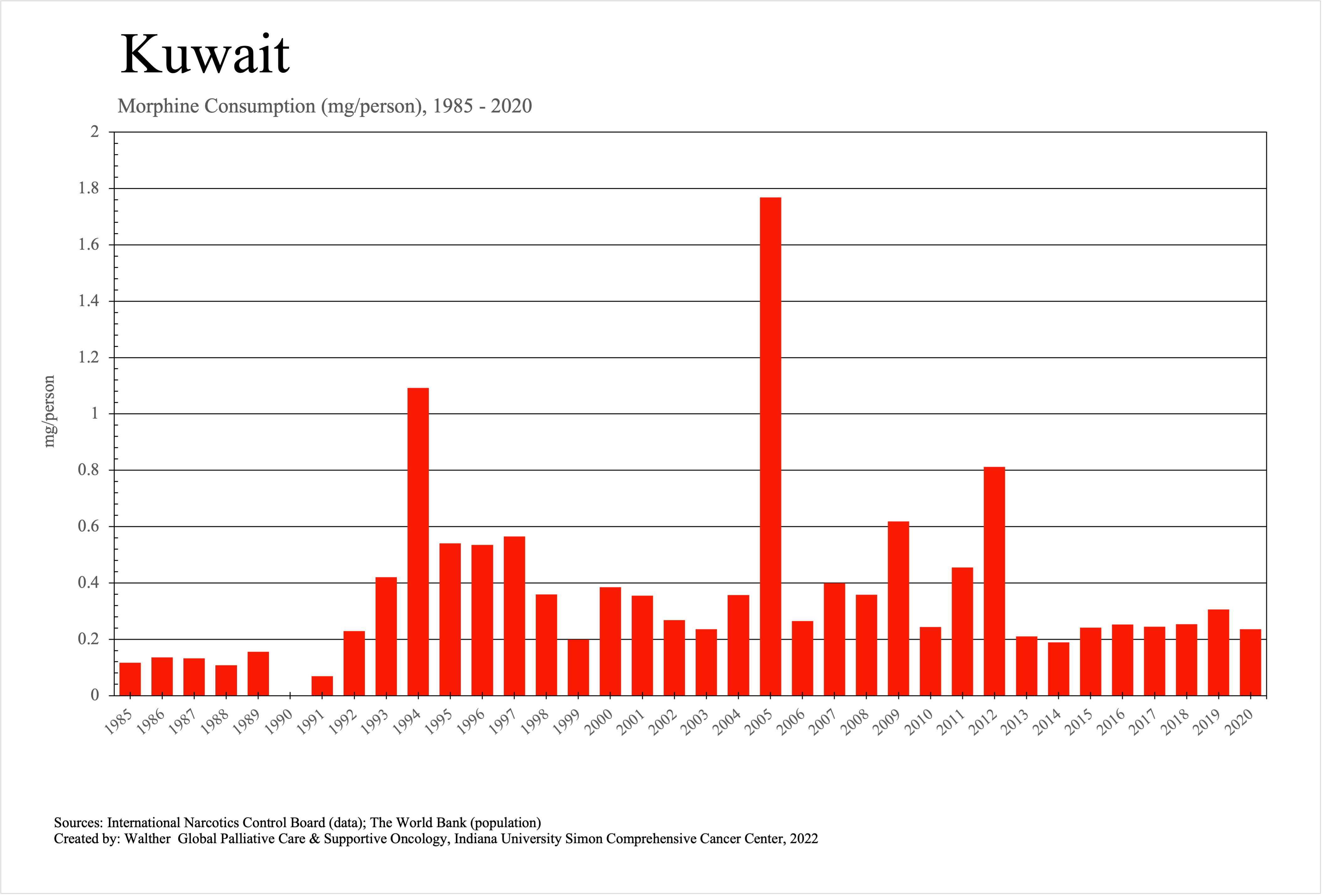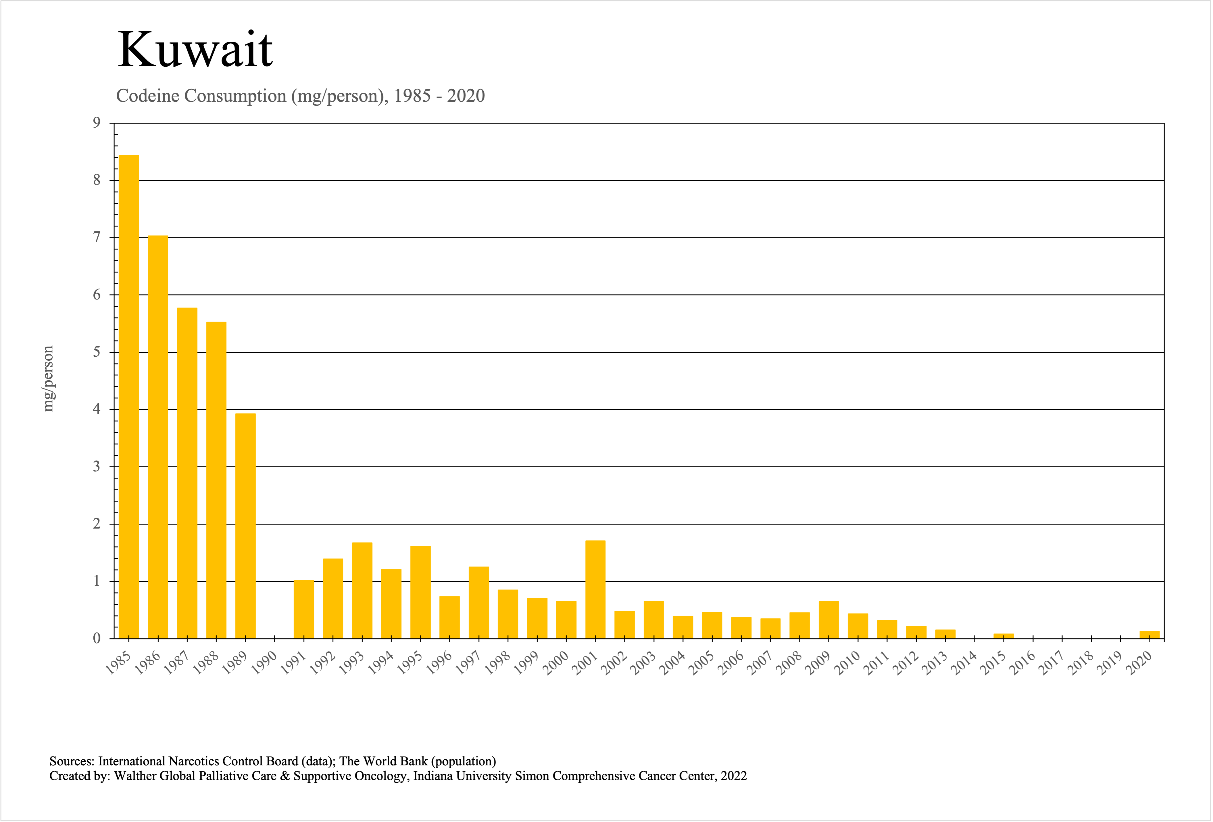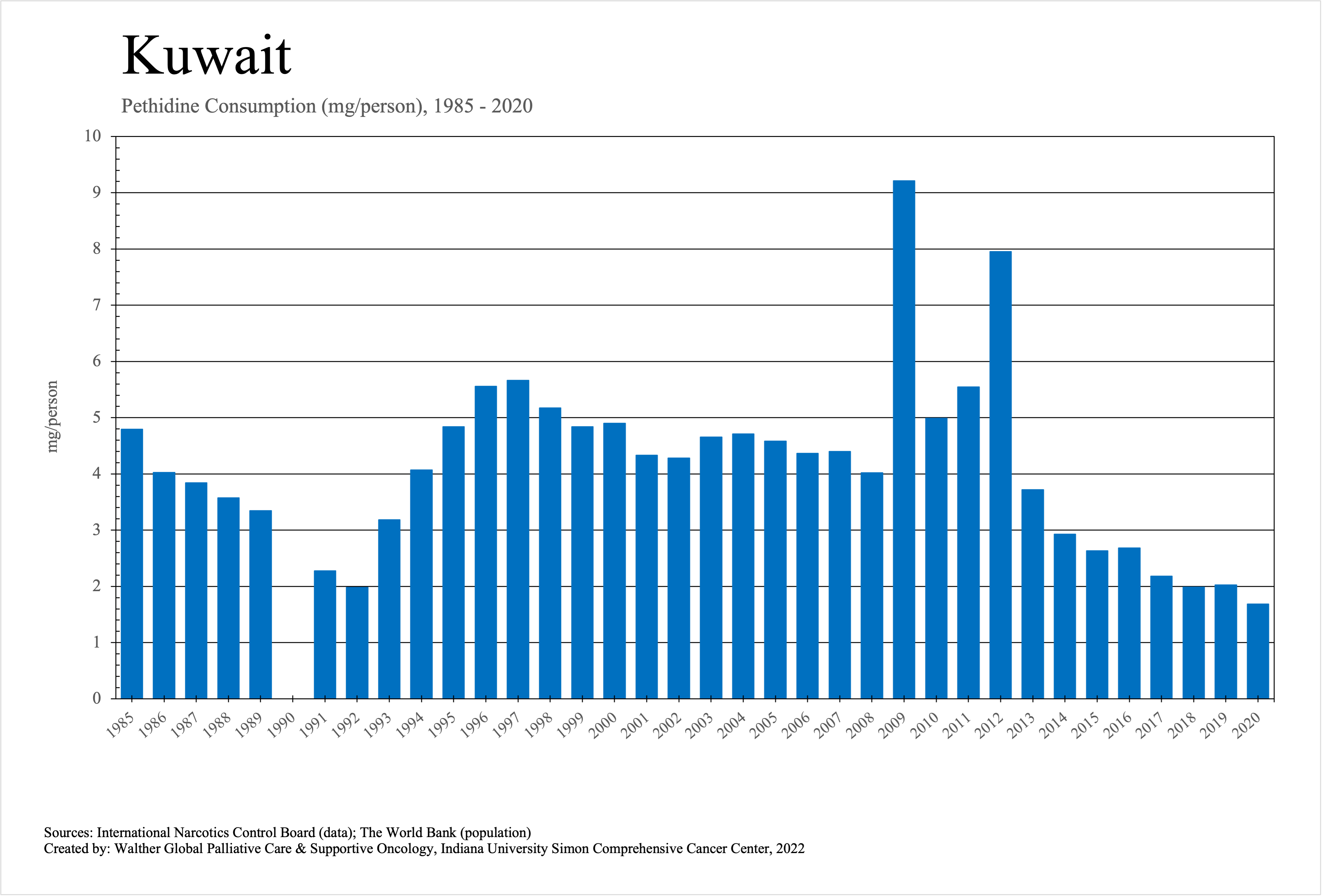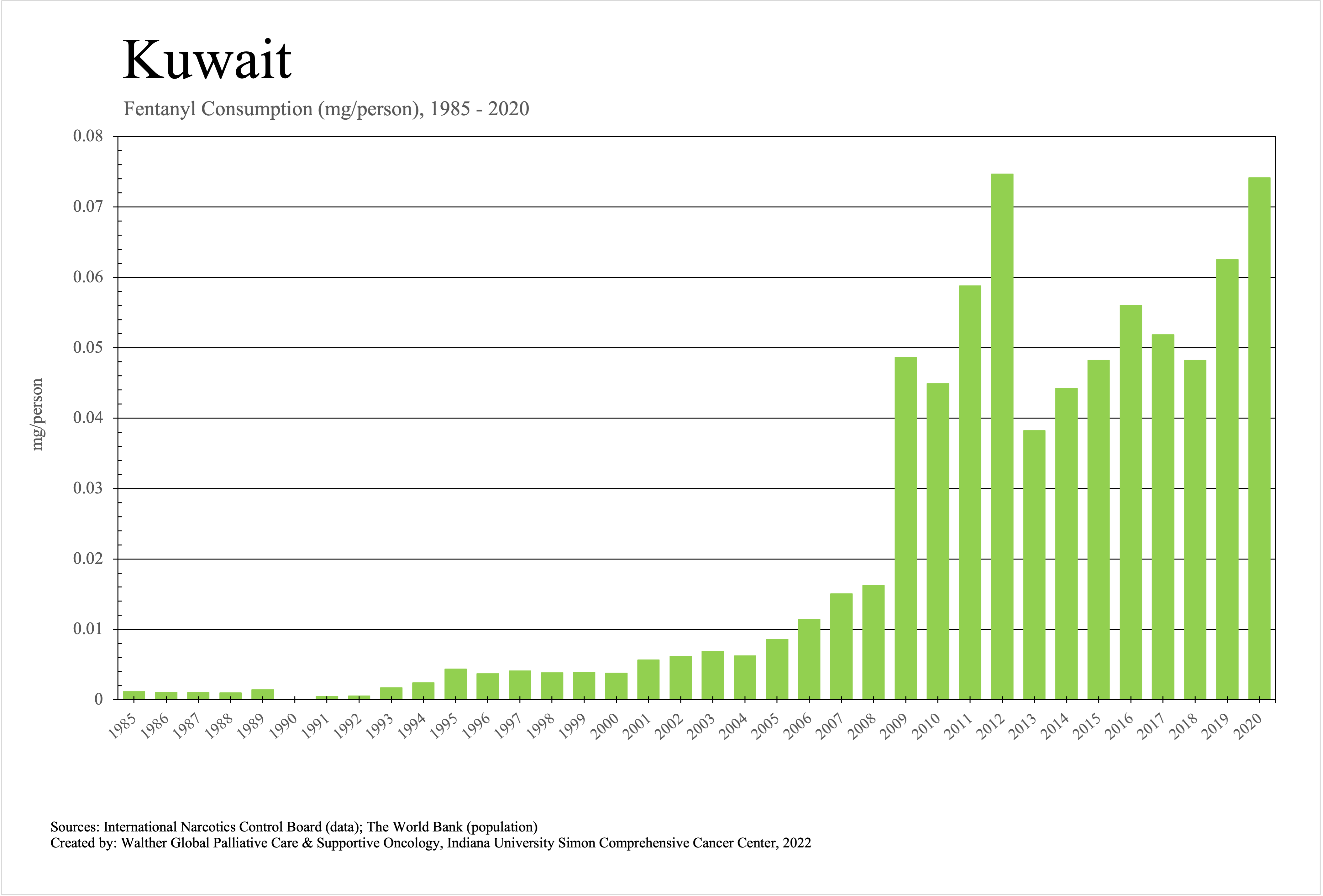 The graphs below provide the Essential Controlled Medicines consumption data trends from 1985 to 2020 in milligrams per capita and Morphine Equivalence (ME) milligrams per capita, as reported to the International Narcotics Control Board (INCB).