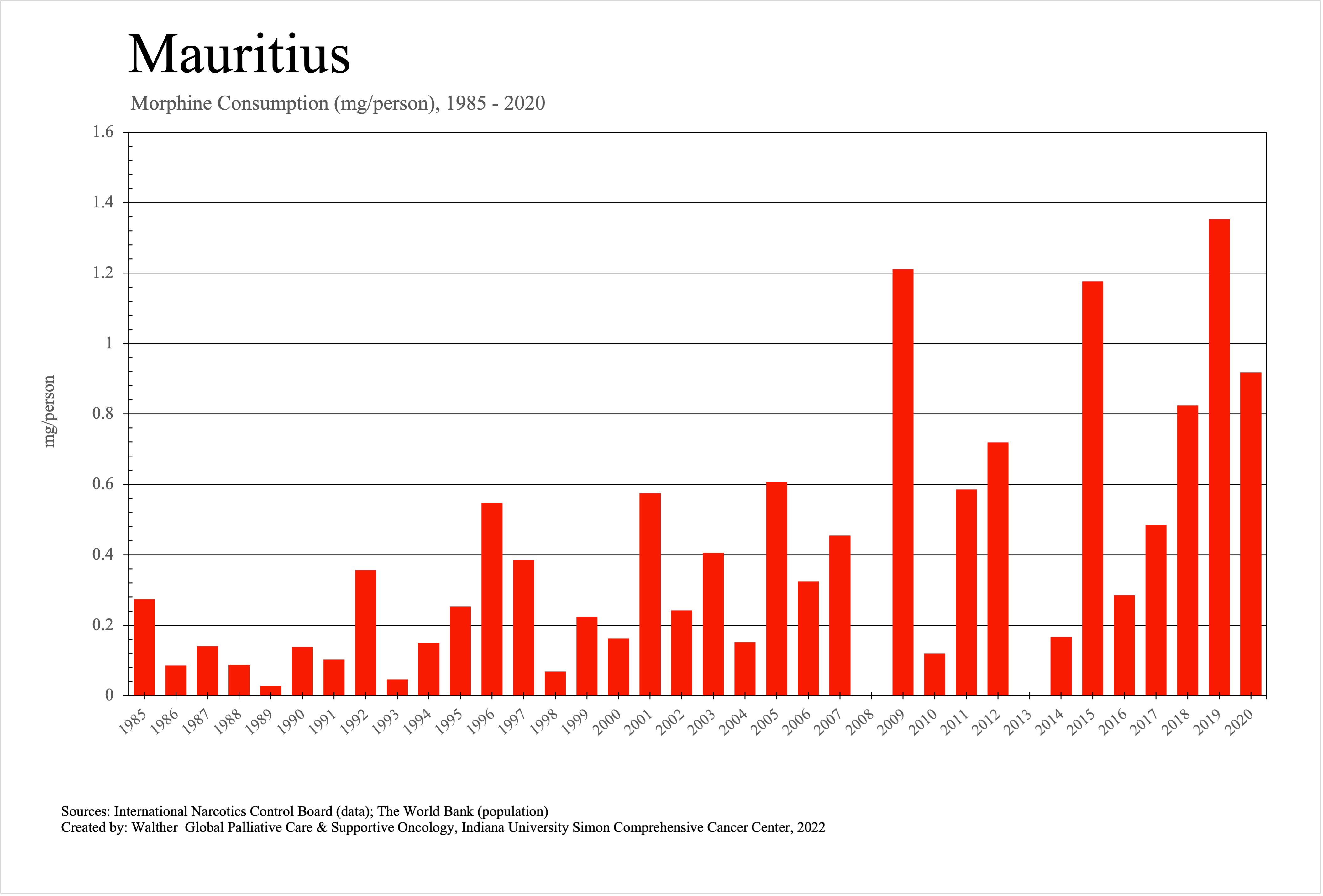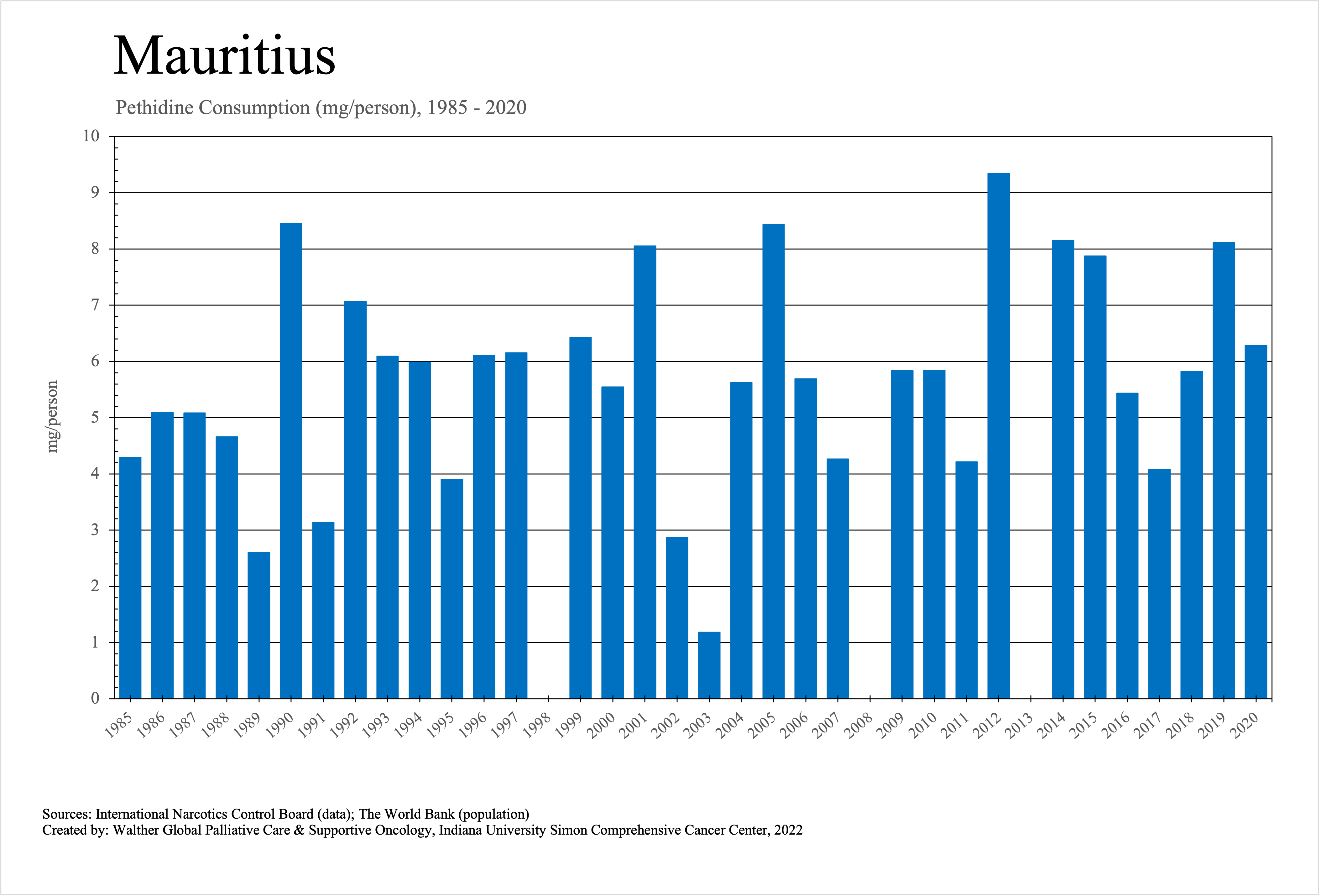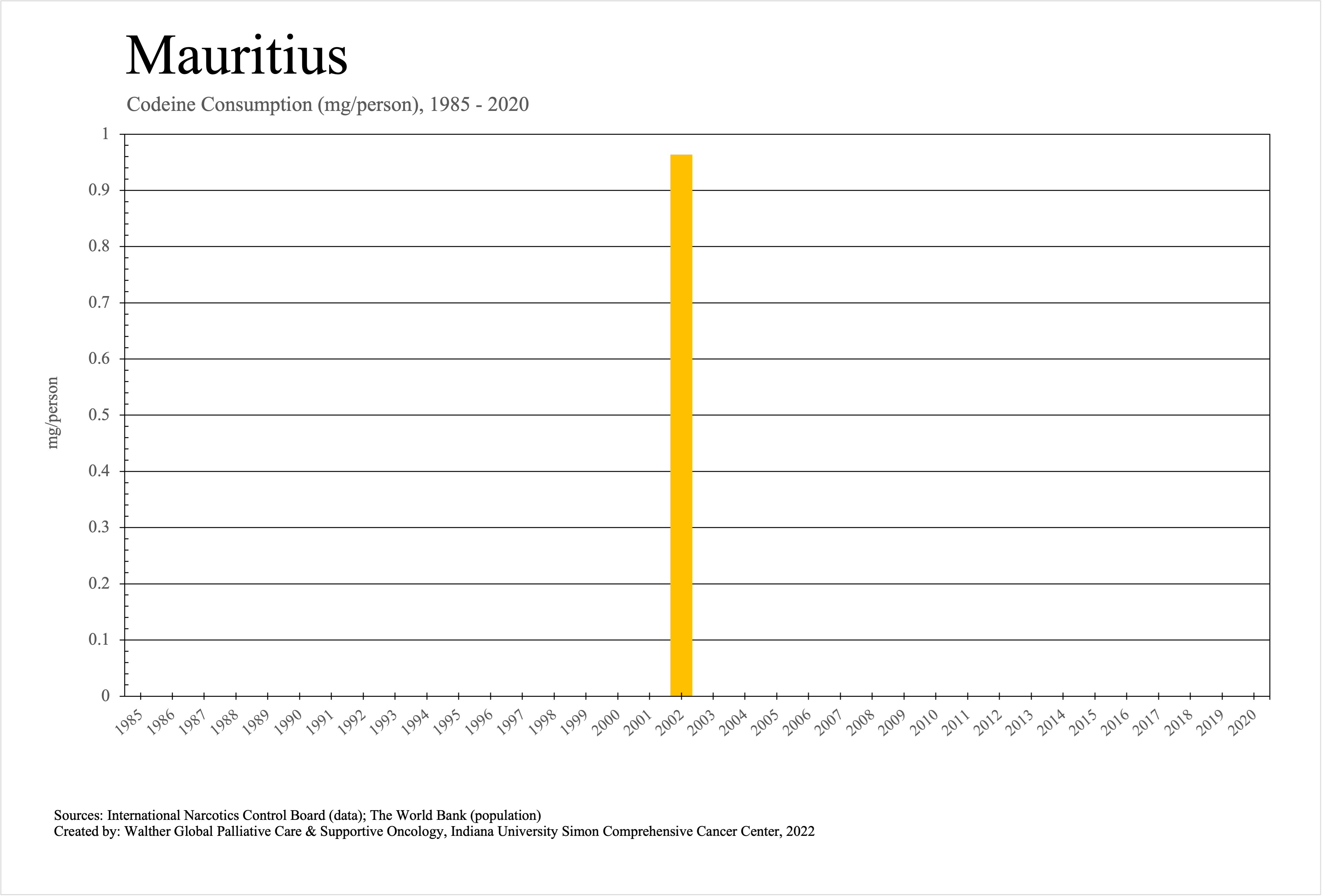 The graphs below provide the Essential Controlled Medicines consumption data trends from 1985 to 2020 in milligrams per capita and Morphine Equivalence (ME) milligrams per capita, as reported to the International Narcotics Control Board (INCB).