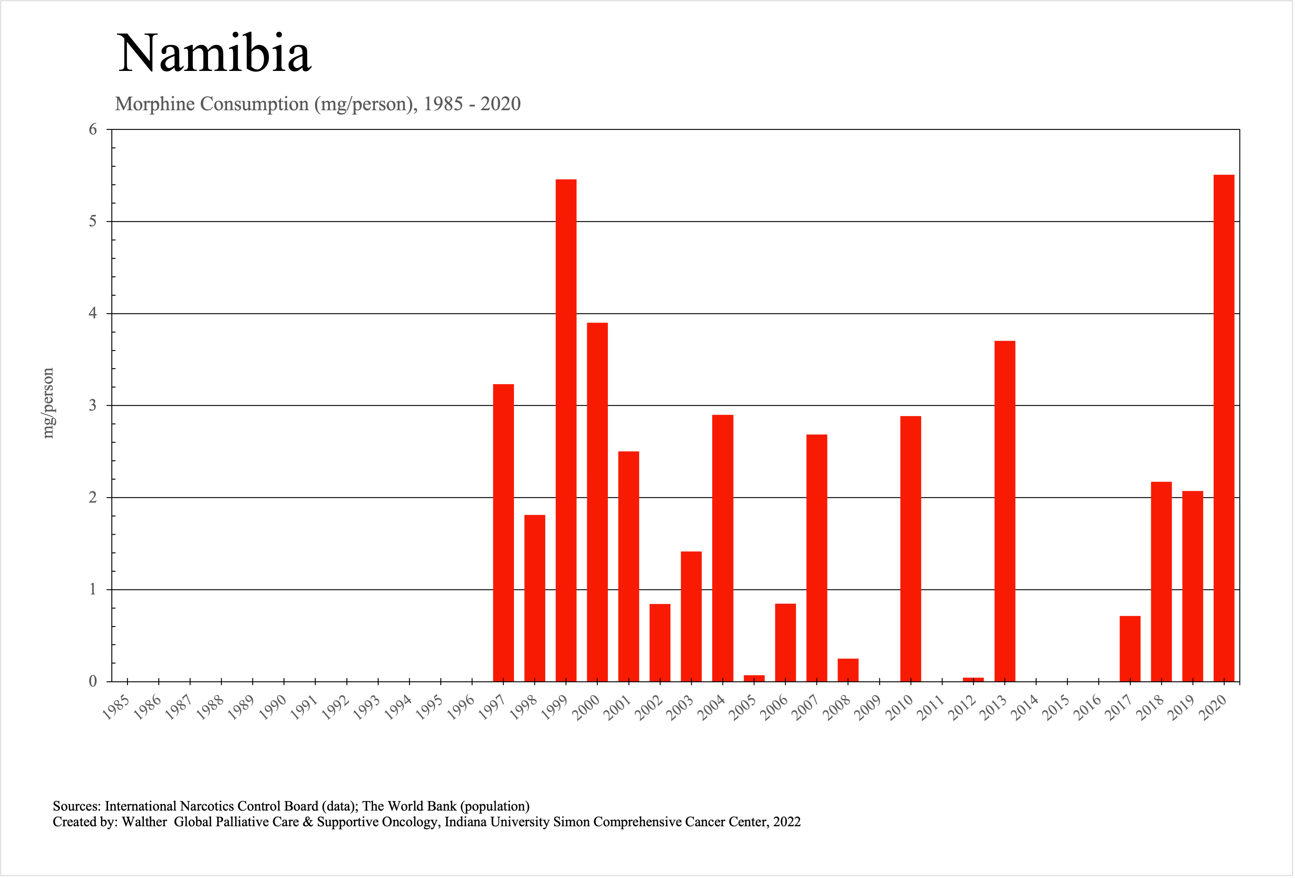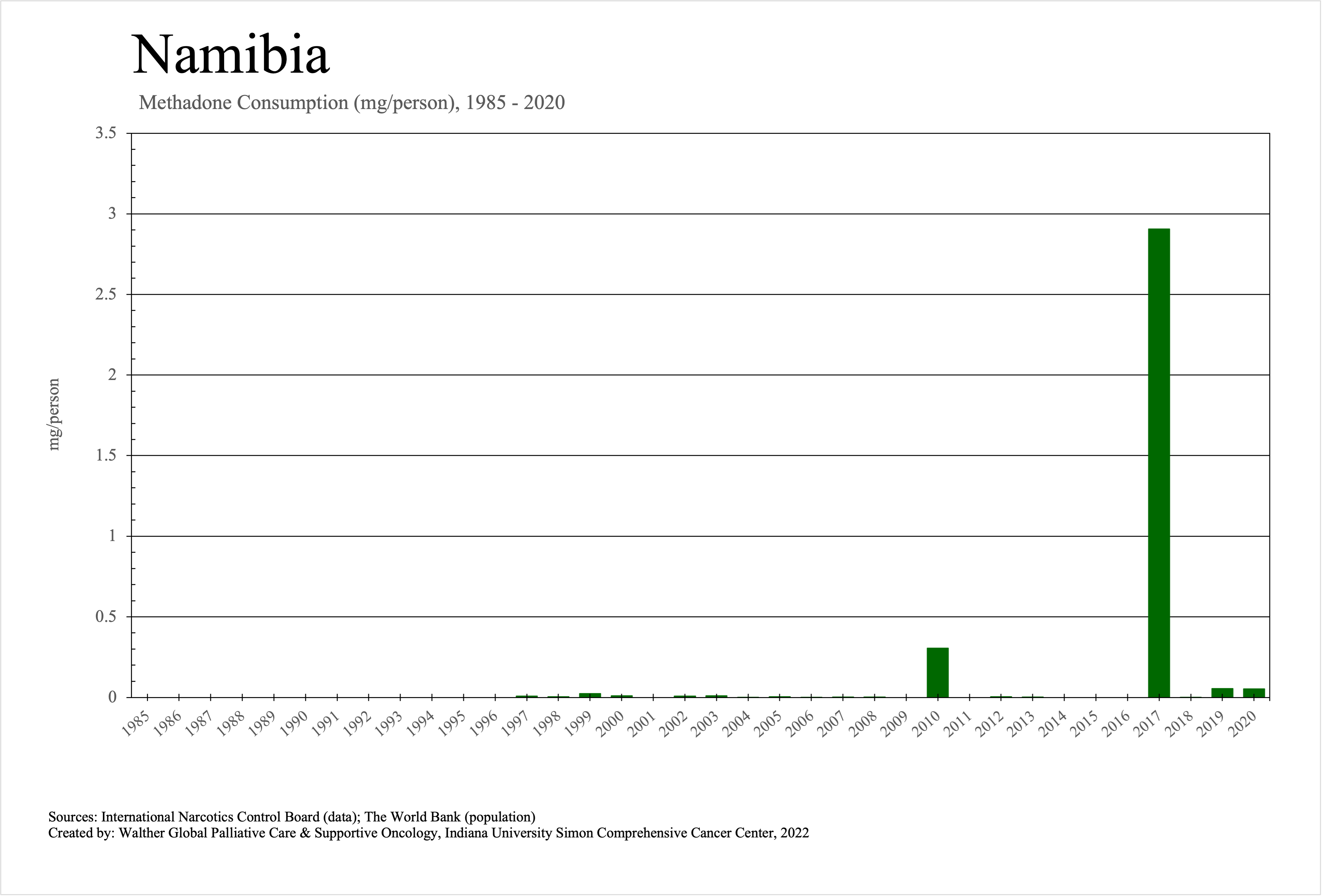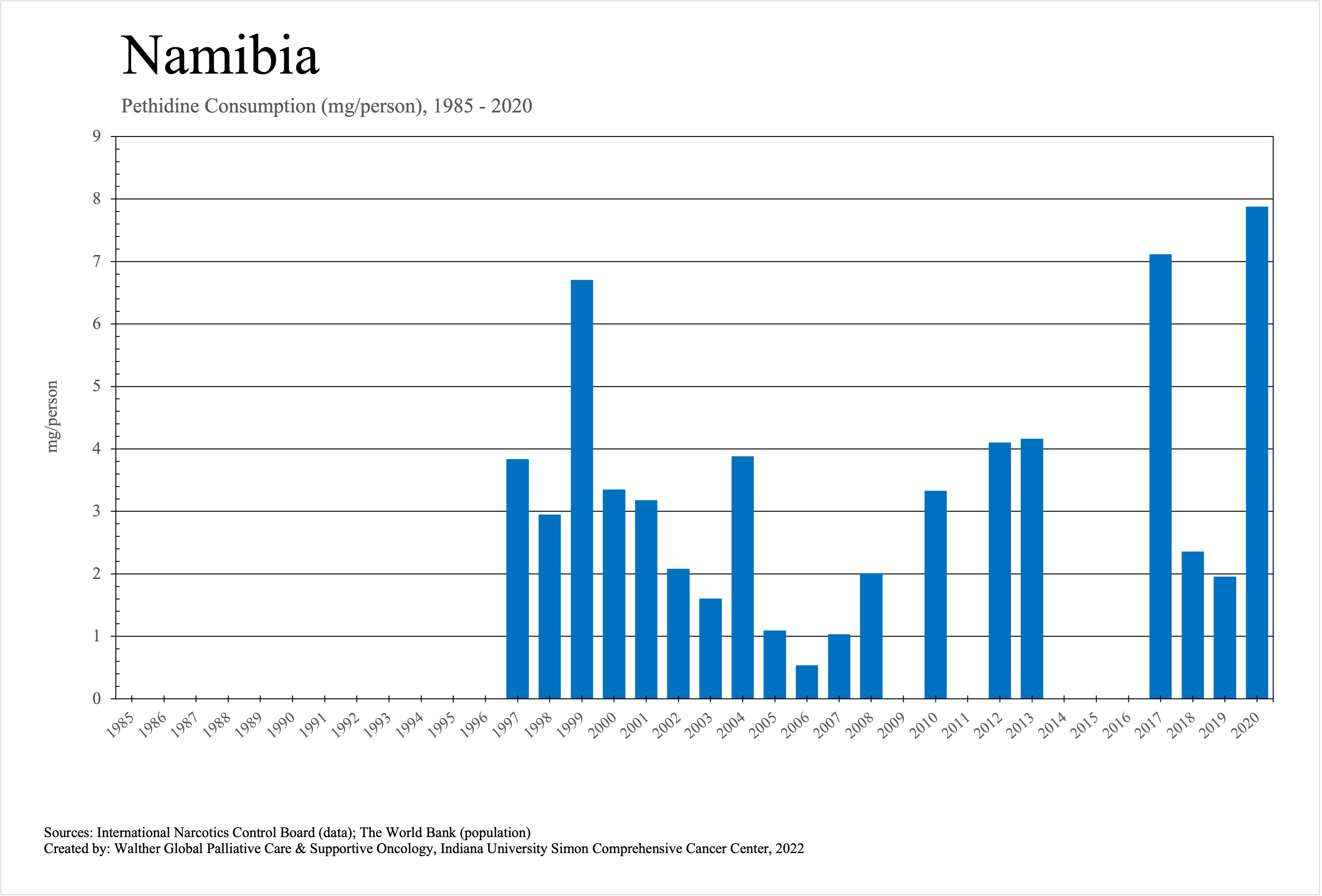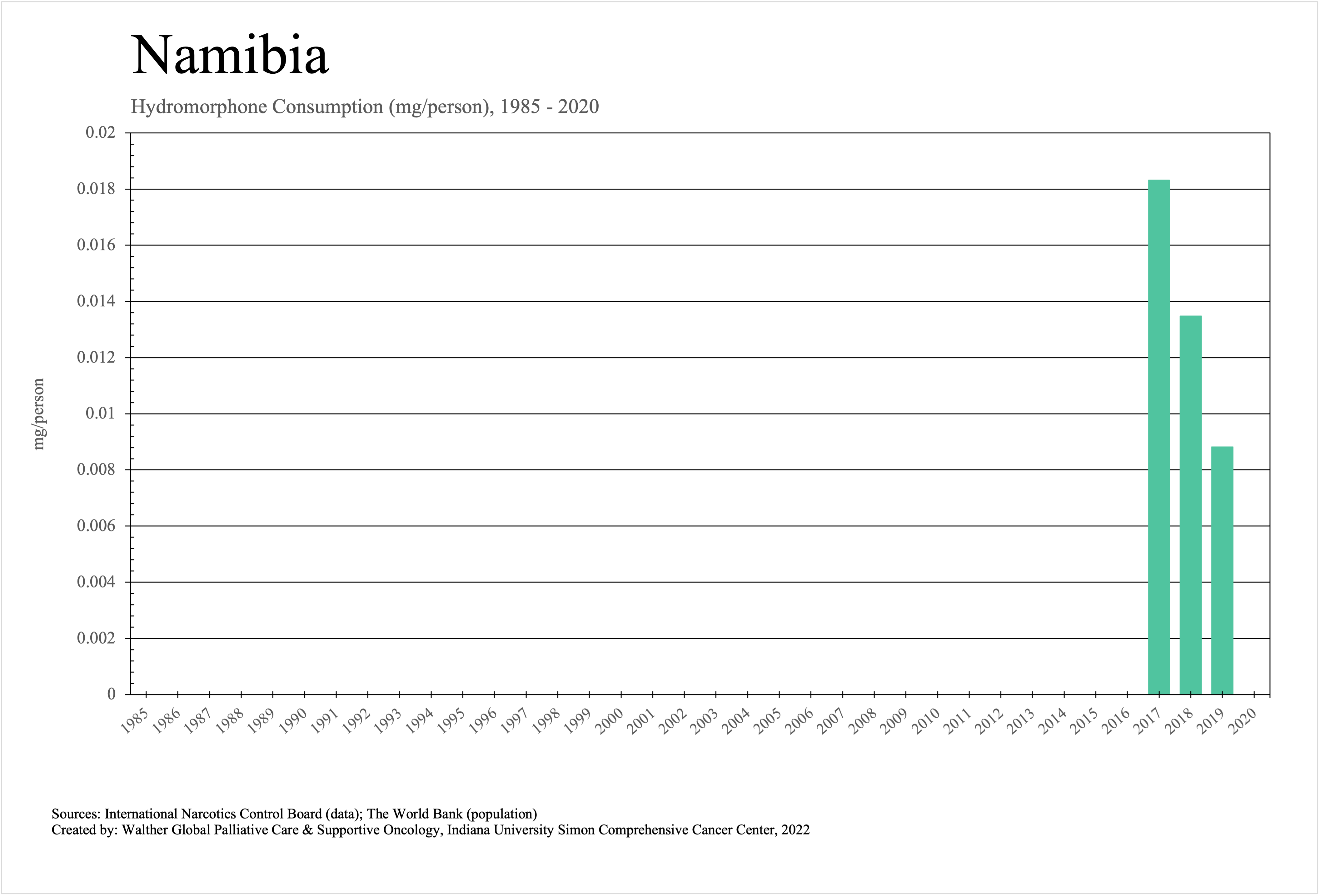The graphs below provide the Essential Controlled Medicines consumption data trends from 1985 to 2020 in milligrams per capita and Morphine Equivalence (ME) milligrams per capita, as reported to the International Narcotics Control Board (INCB).