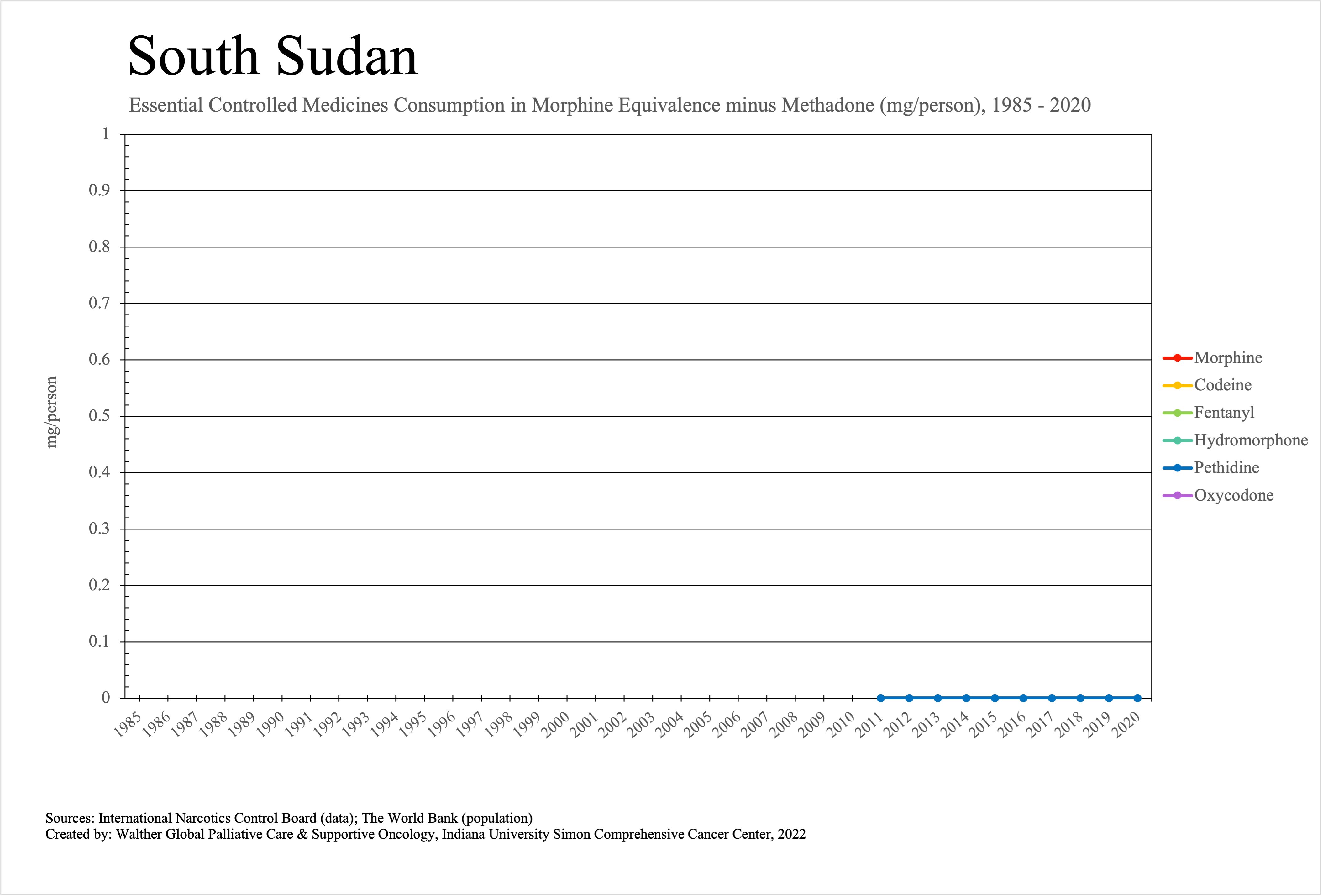 The graphs below provide the Essential Controlled Medicines consumption data trends from 1985 to 2020 in milligrams per capita and Morphine Equivalence (ME) milligrams per capita, as reported to the International Narcotics Control Board (INCB).