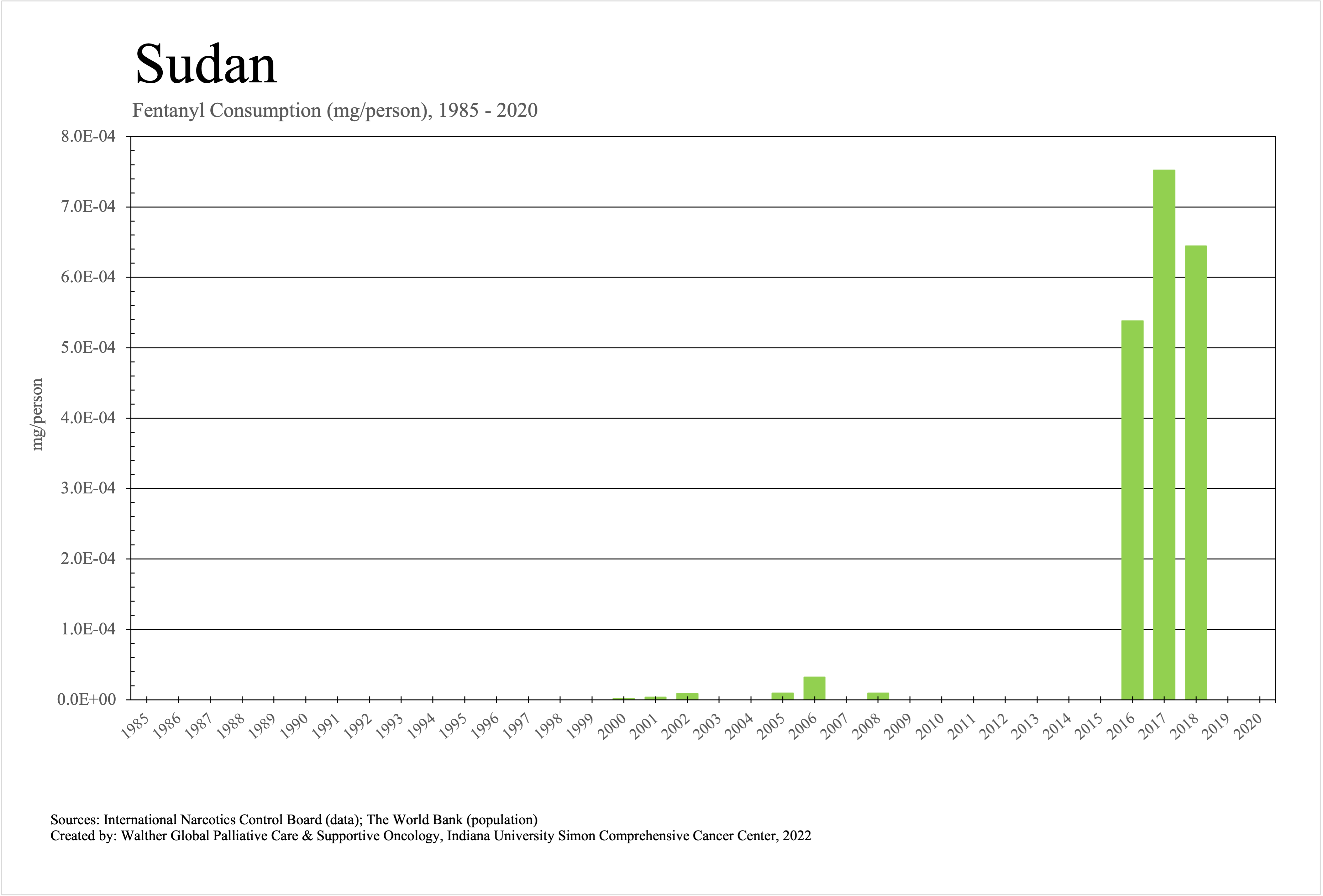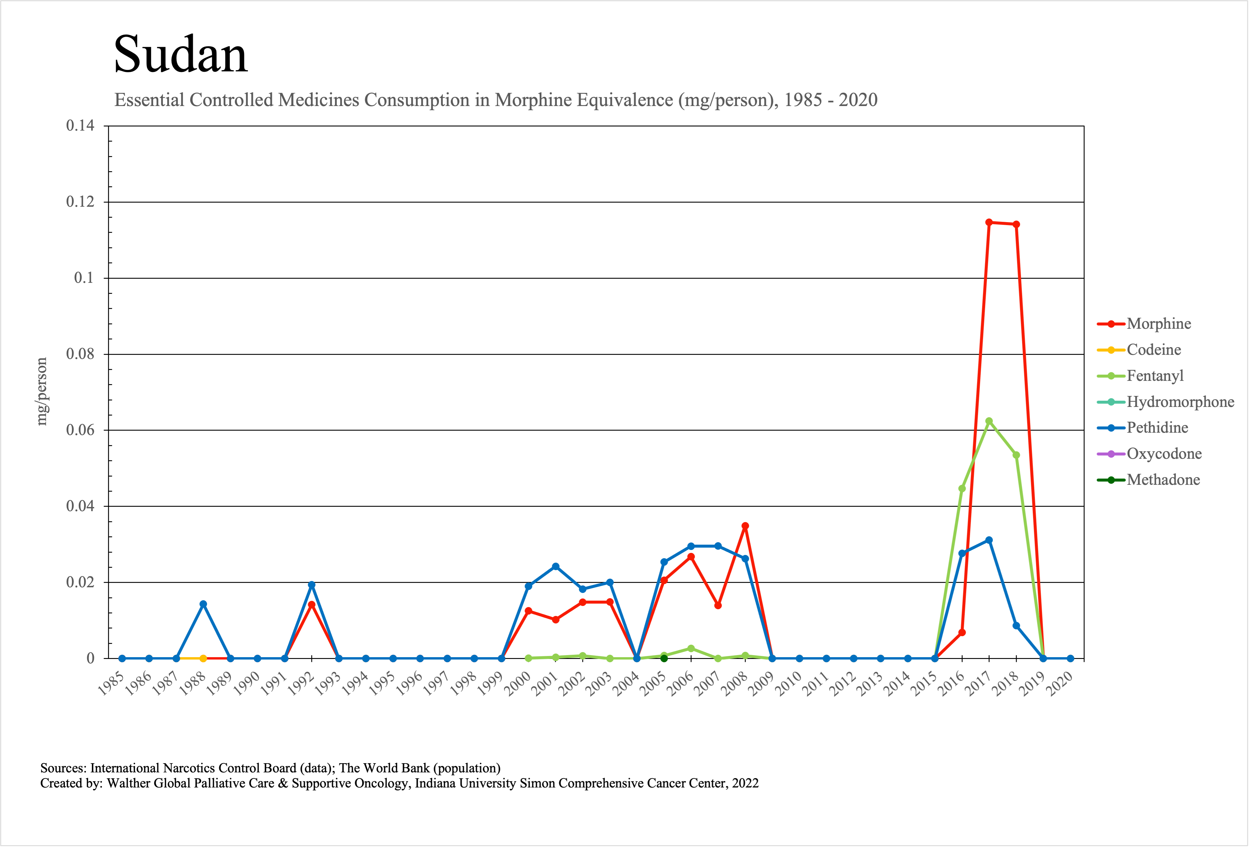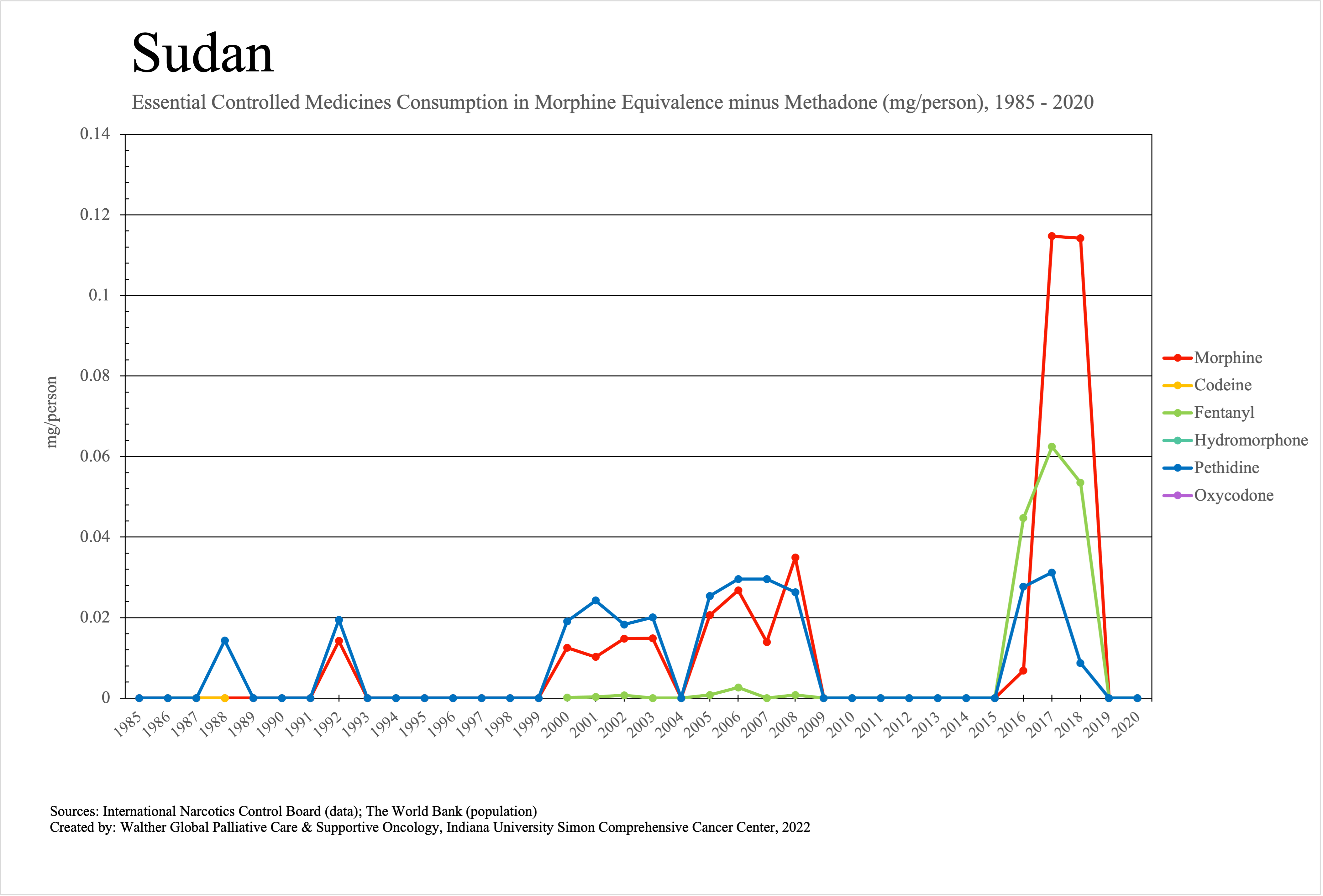 The graphs below provide the Essential Controlled Medicines consumption data trends from 1985 to 2020 in milligrams per capita and Morphine Equivalence (ME) milligrams per capita, as reported to the International Narcotics Control Board (INCB).