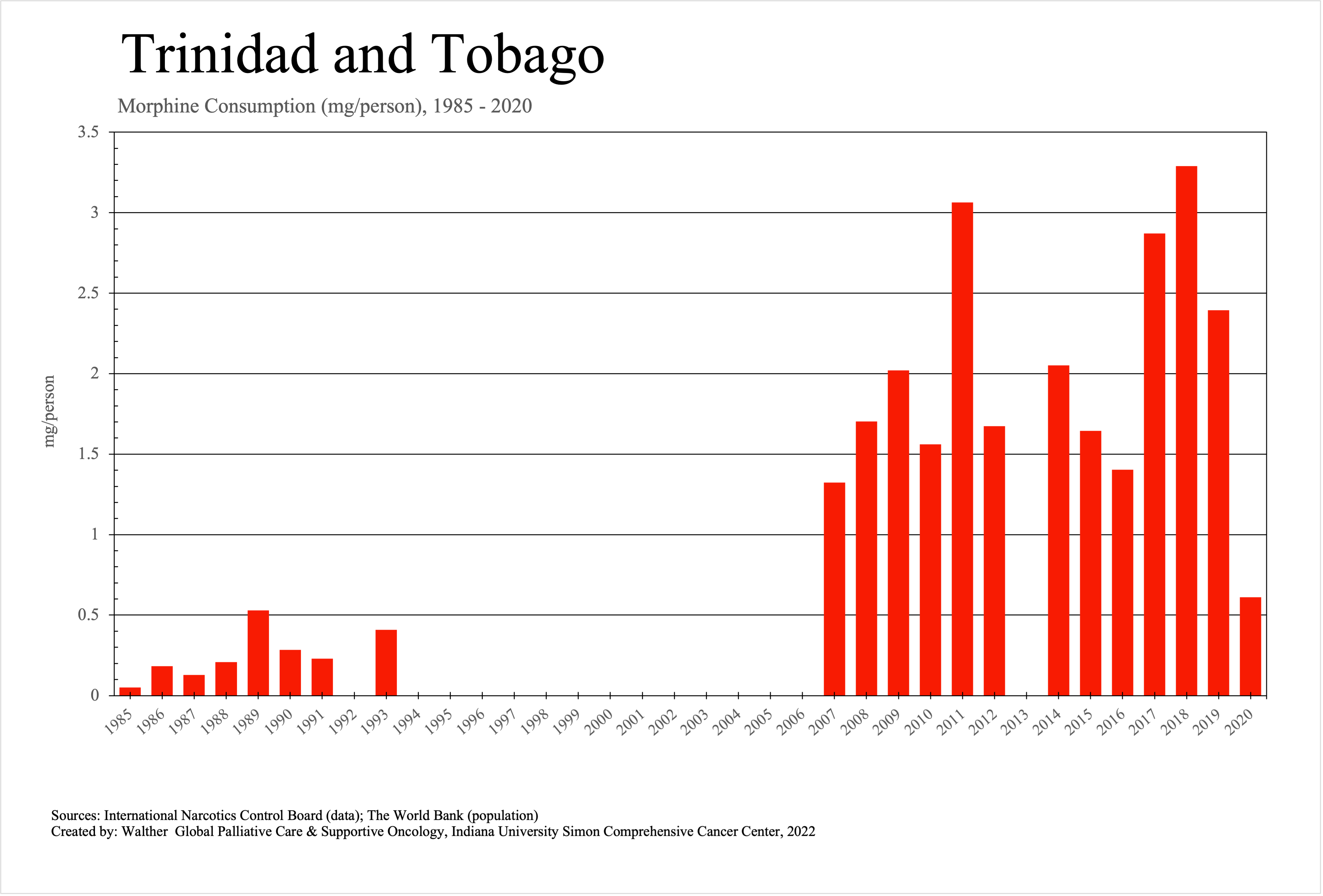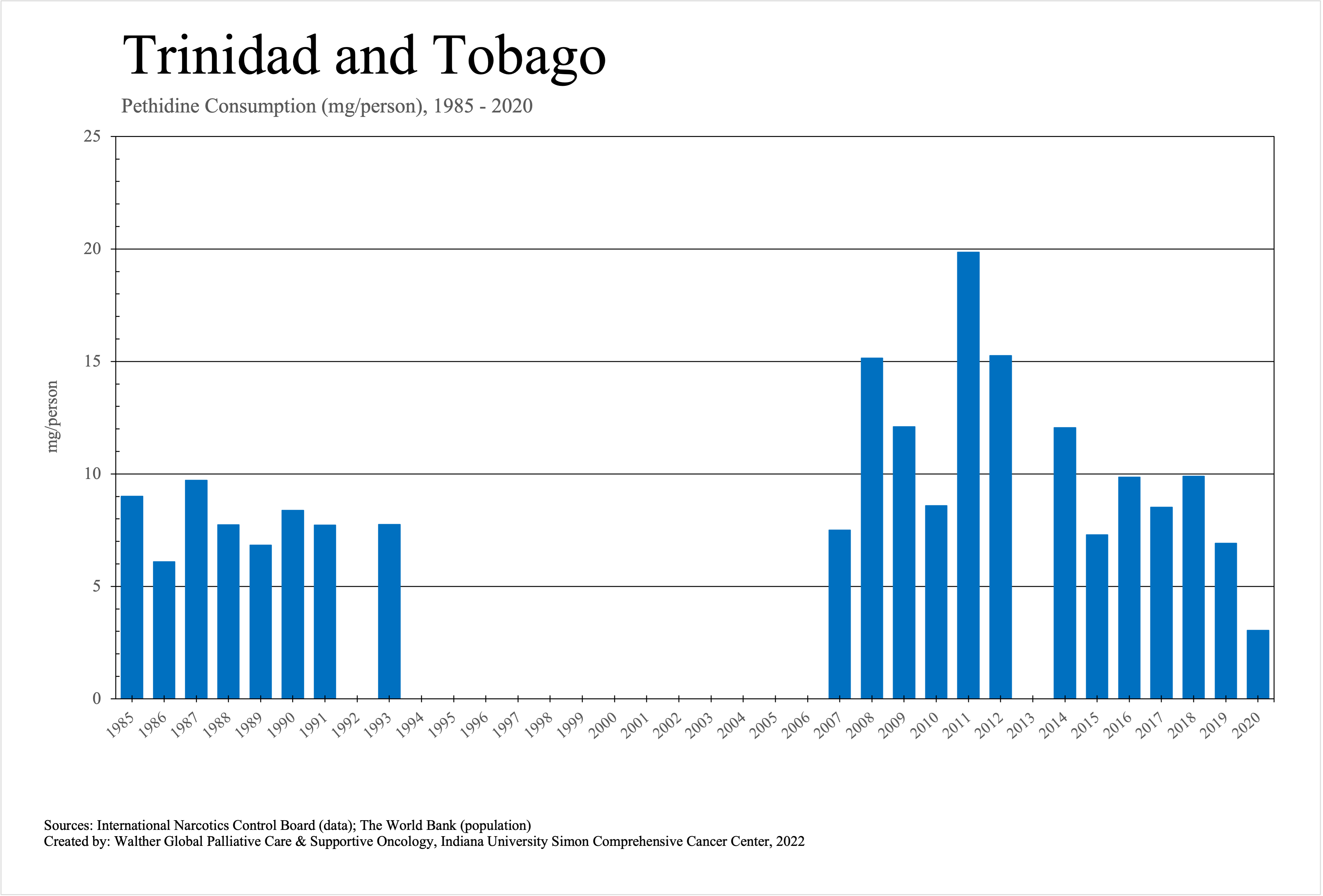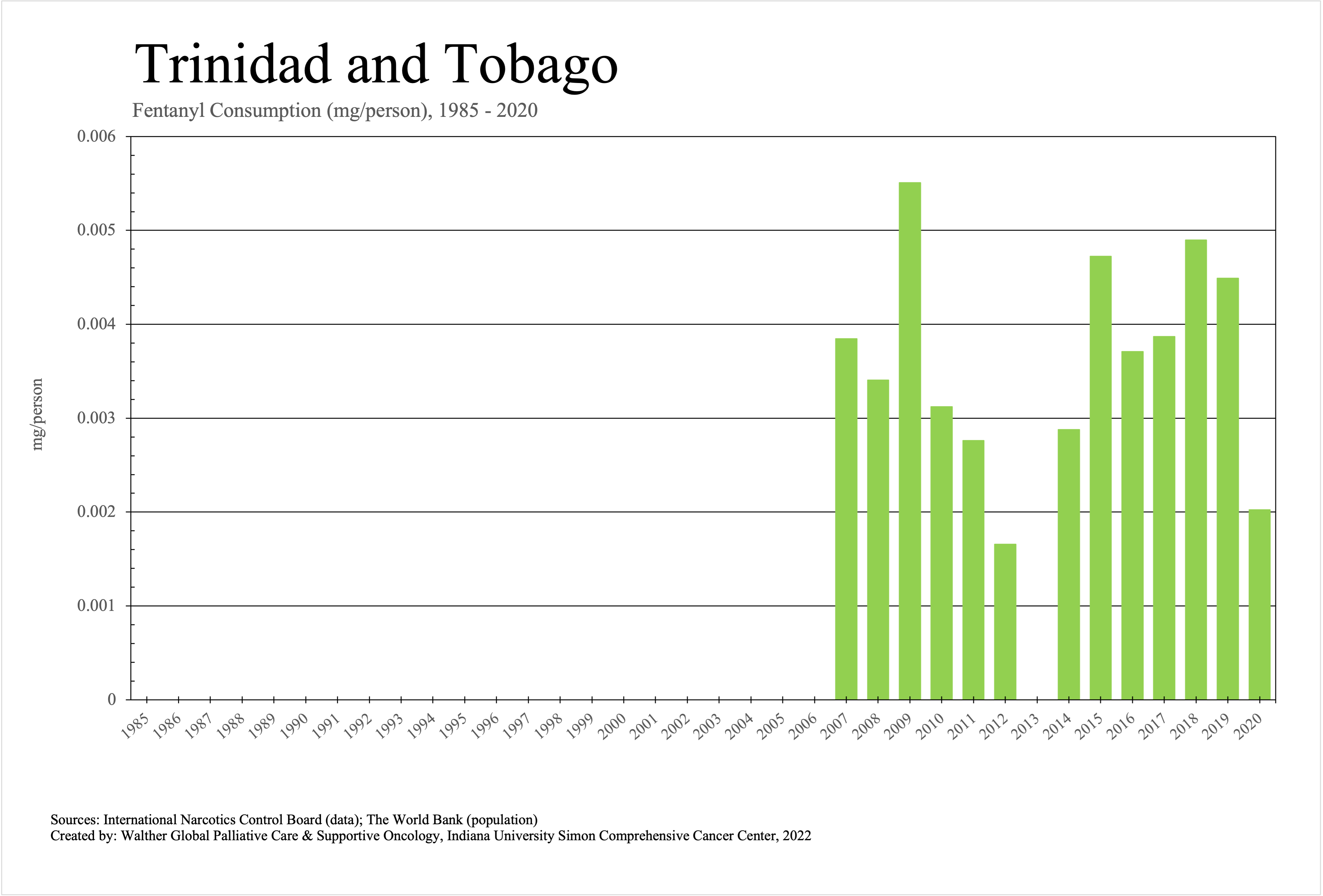 The graphs below provide the Essential Controlled Medicines consumption data trends from 1985 to 2020 in milligrams per capita and Morphine Equivalence (ME) milligrams per capita, as reported to the International Narcotics Control Board (INCB).