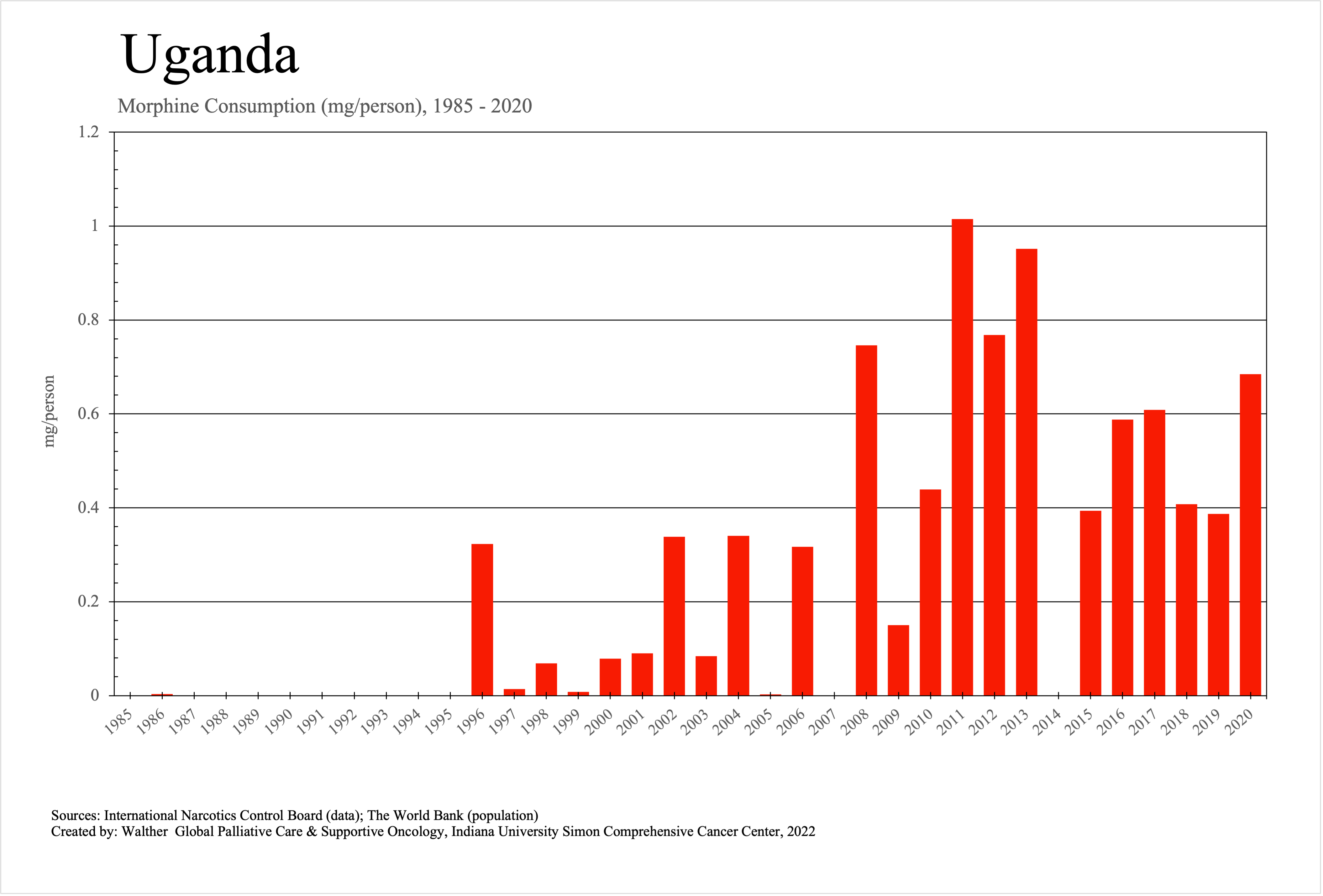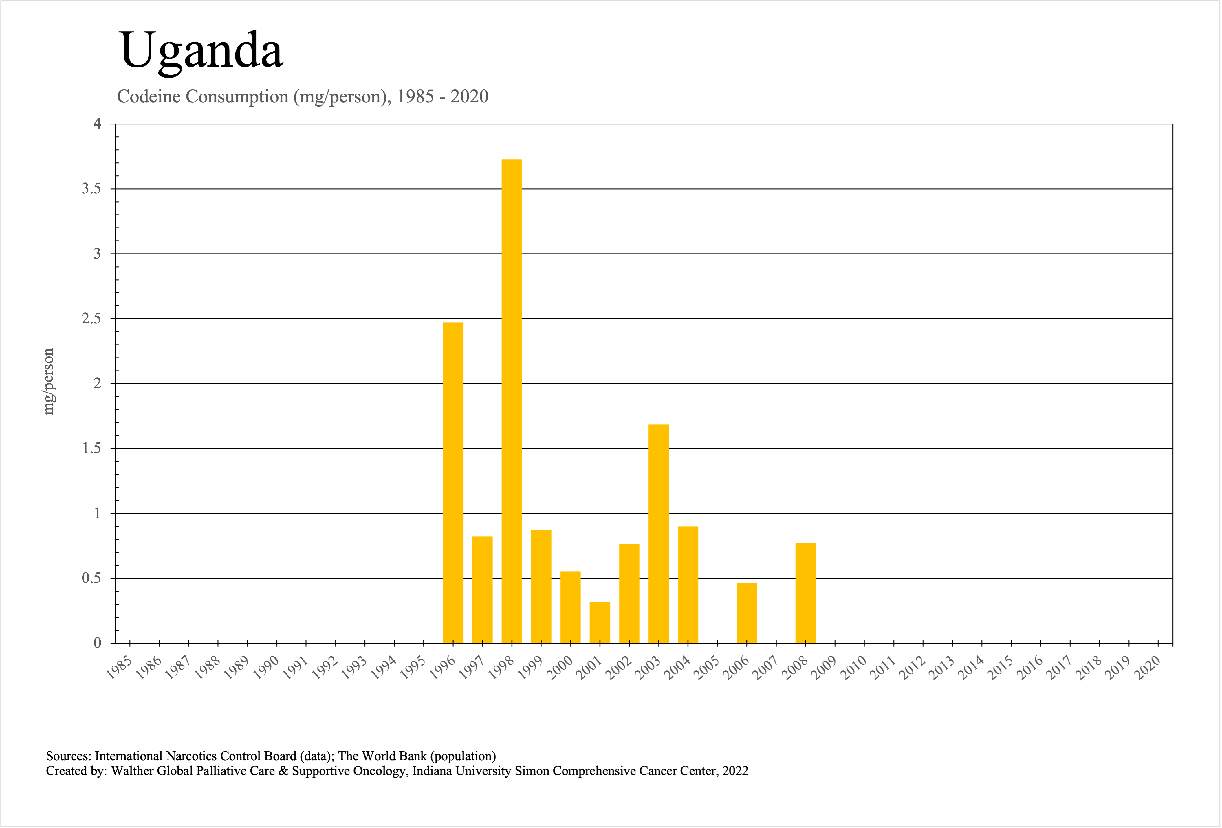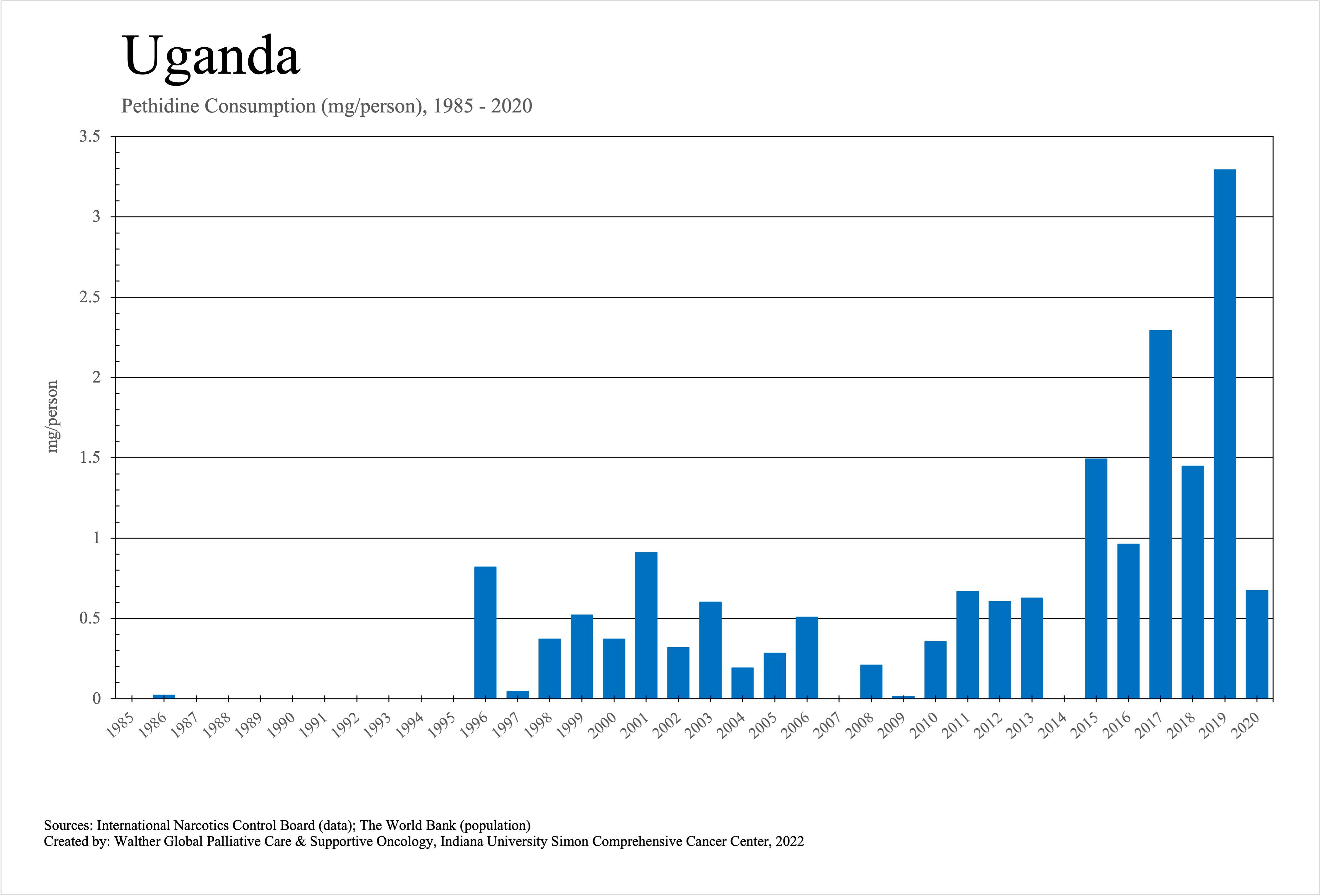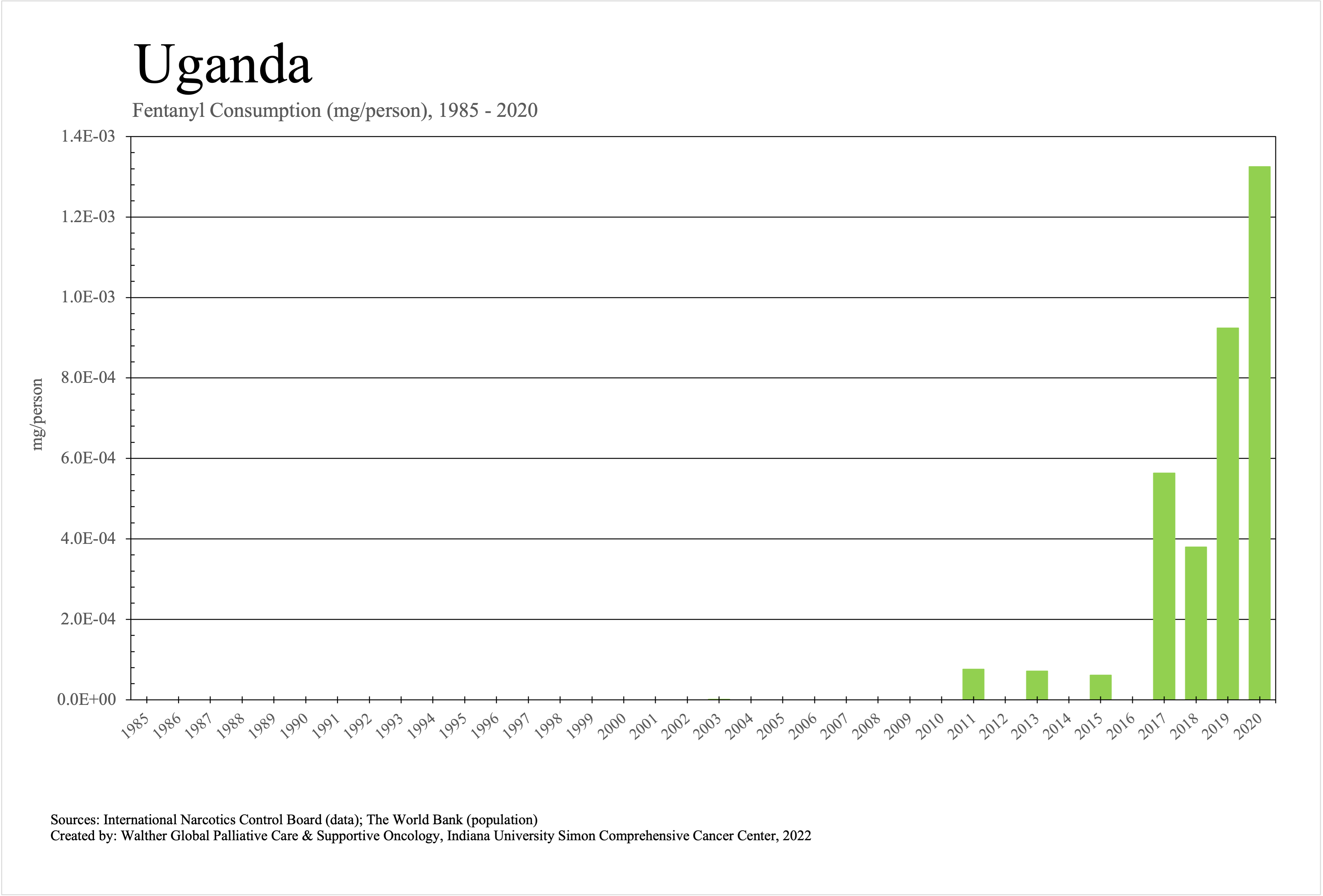 The graphs below provide the Essential Controlled Medicines consumption data trends from 1985 to 2020 in milligrams per capita and Morphine Equivalence (ME) milligrams per capita, as reported to the International Narcotics Control Board (INCB).