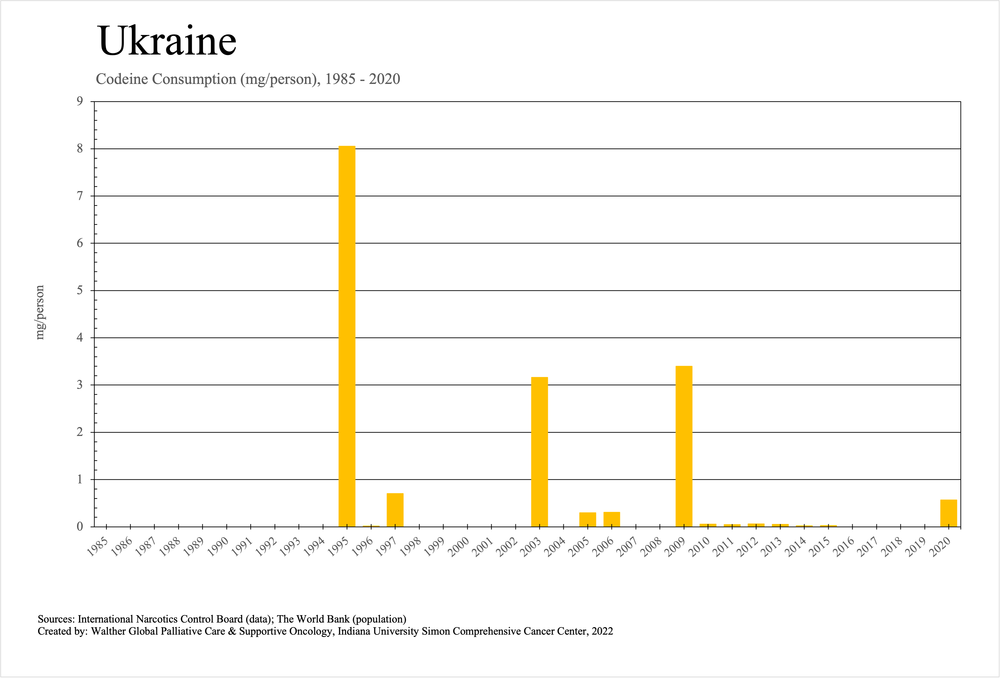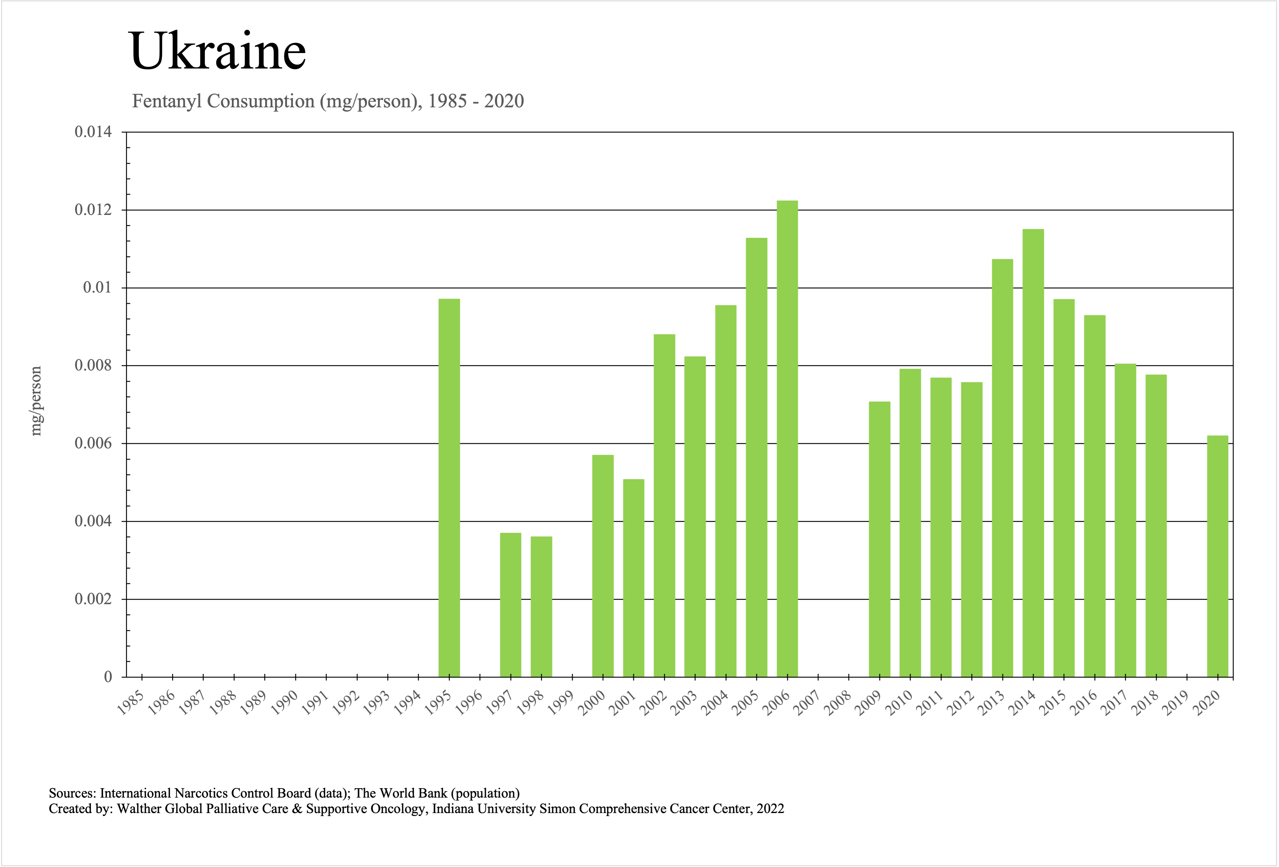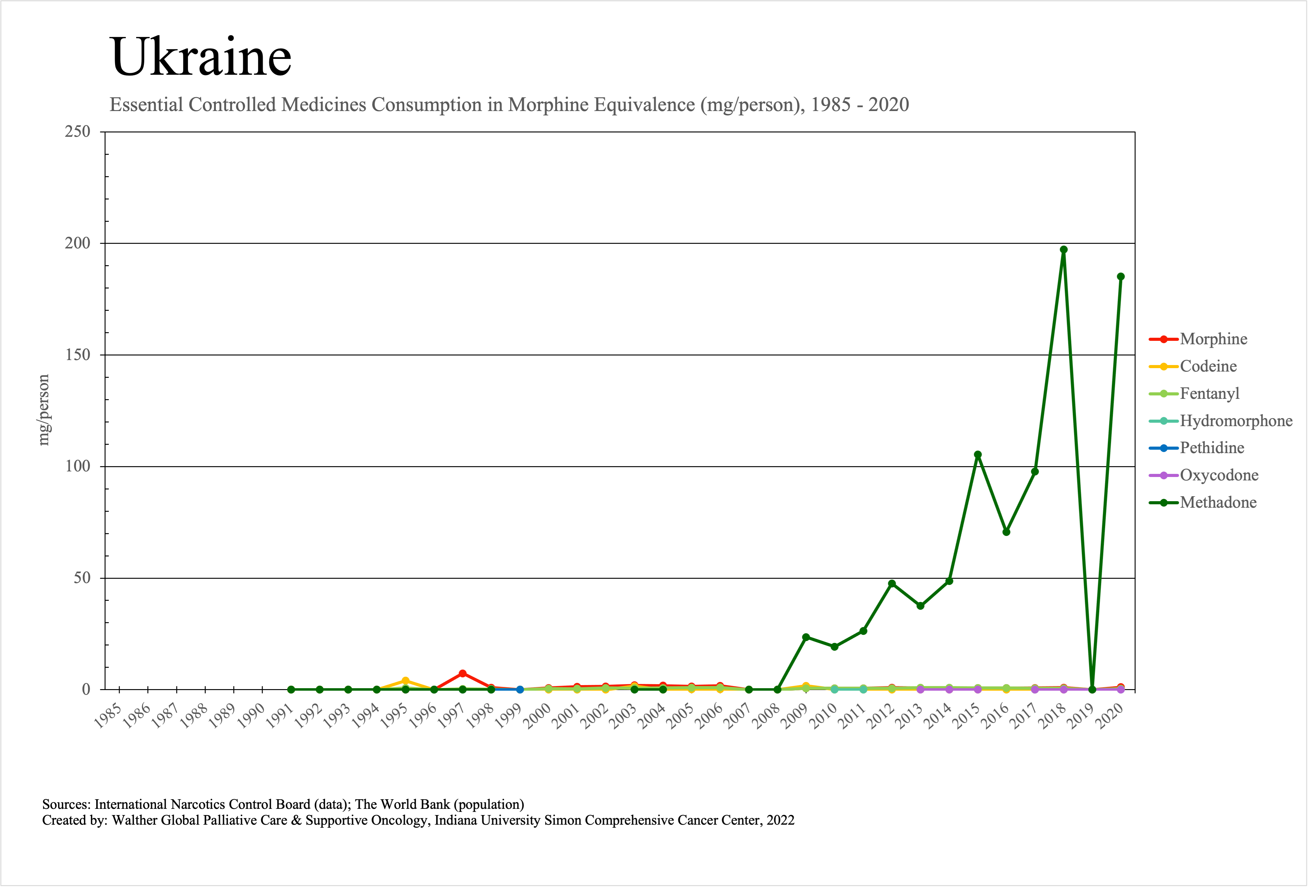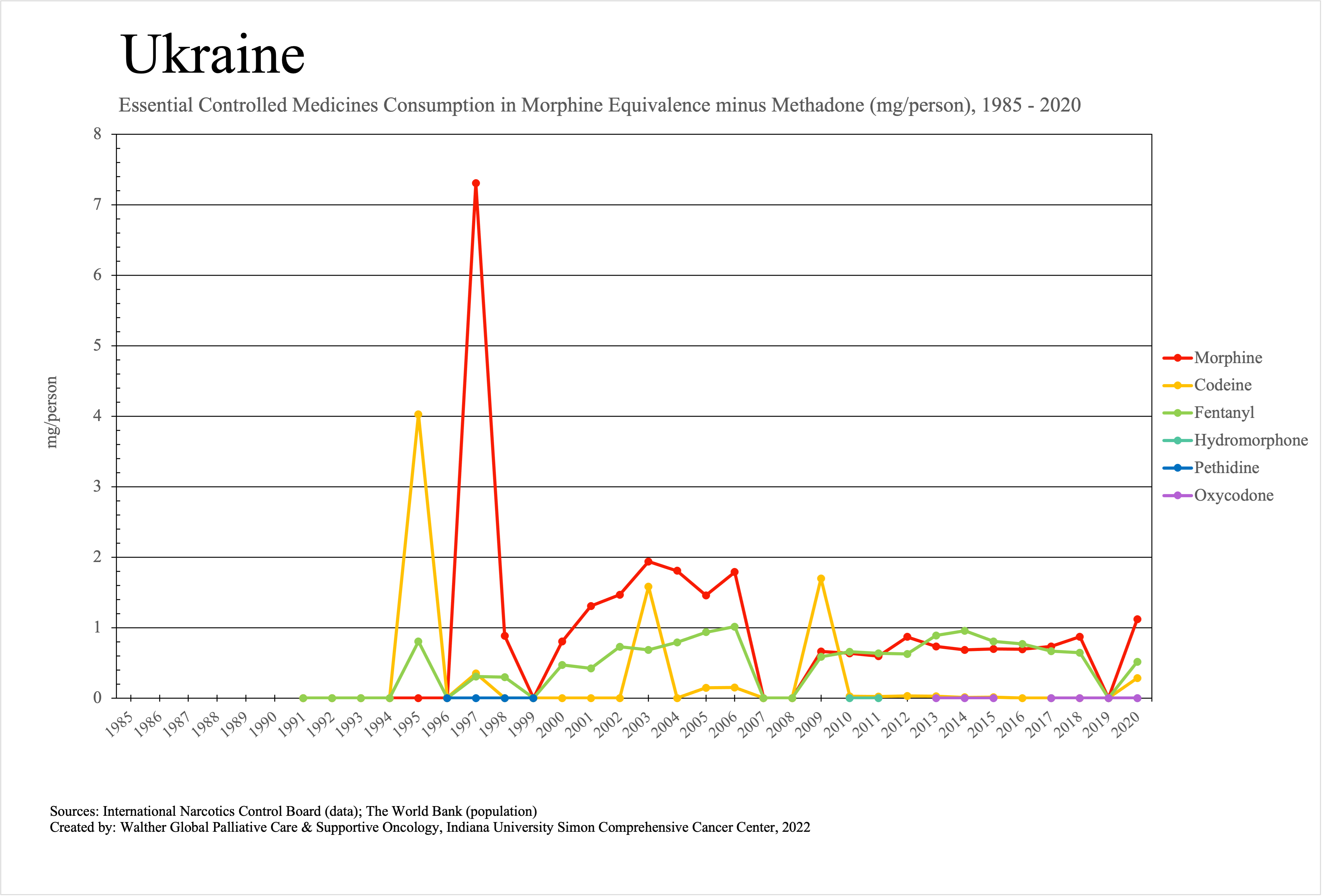The graphs below provide the Essential Controlled Medicines consumption data trends from 1985 to 2020 in milligrams per capita and Morphine Equivalence (ME) milligrams per capita, as reported to the International Narcotics Control Board (INCB).