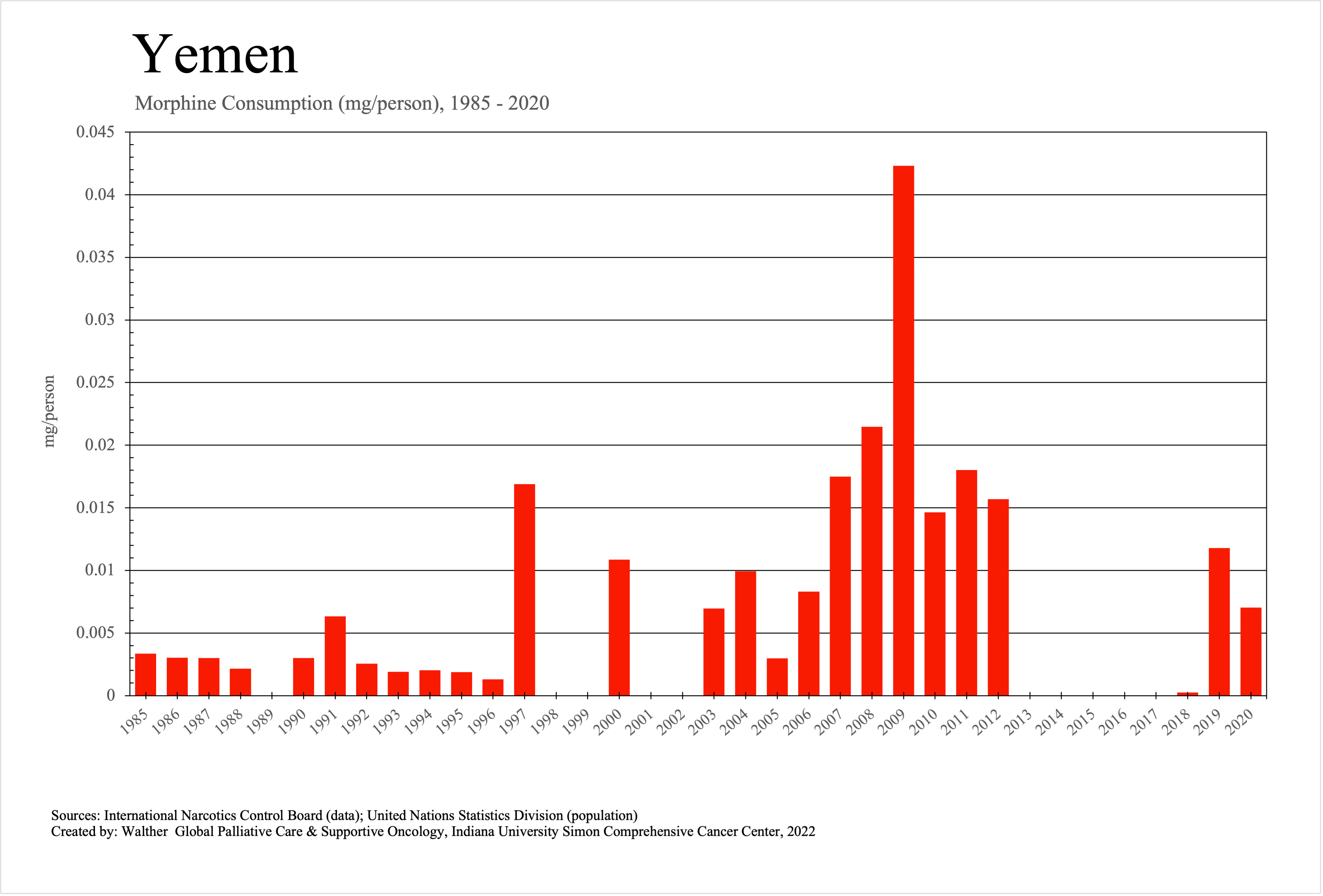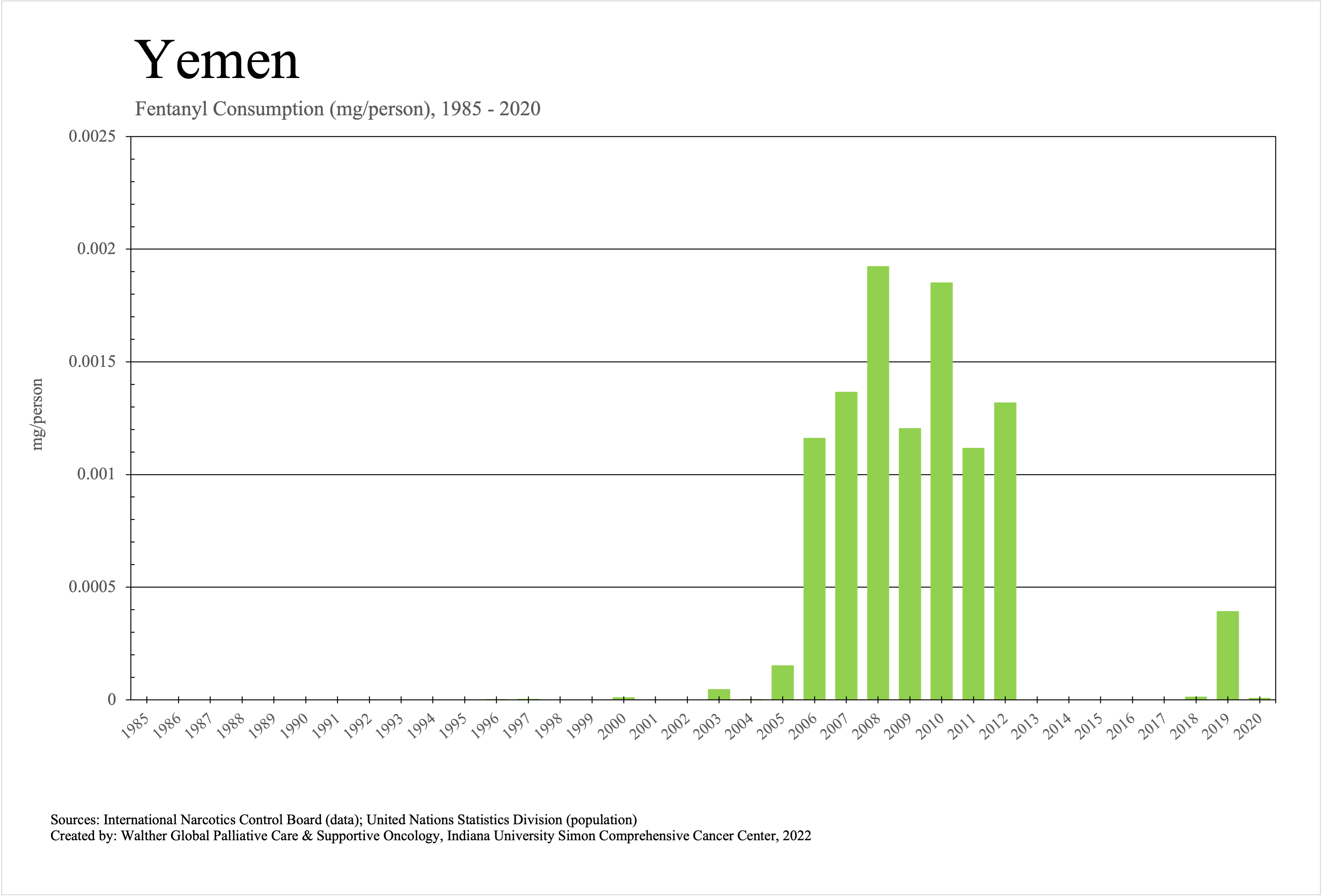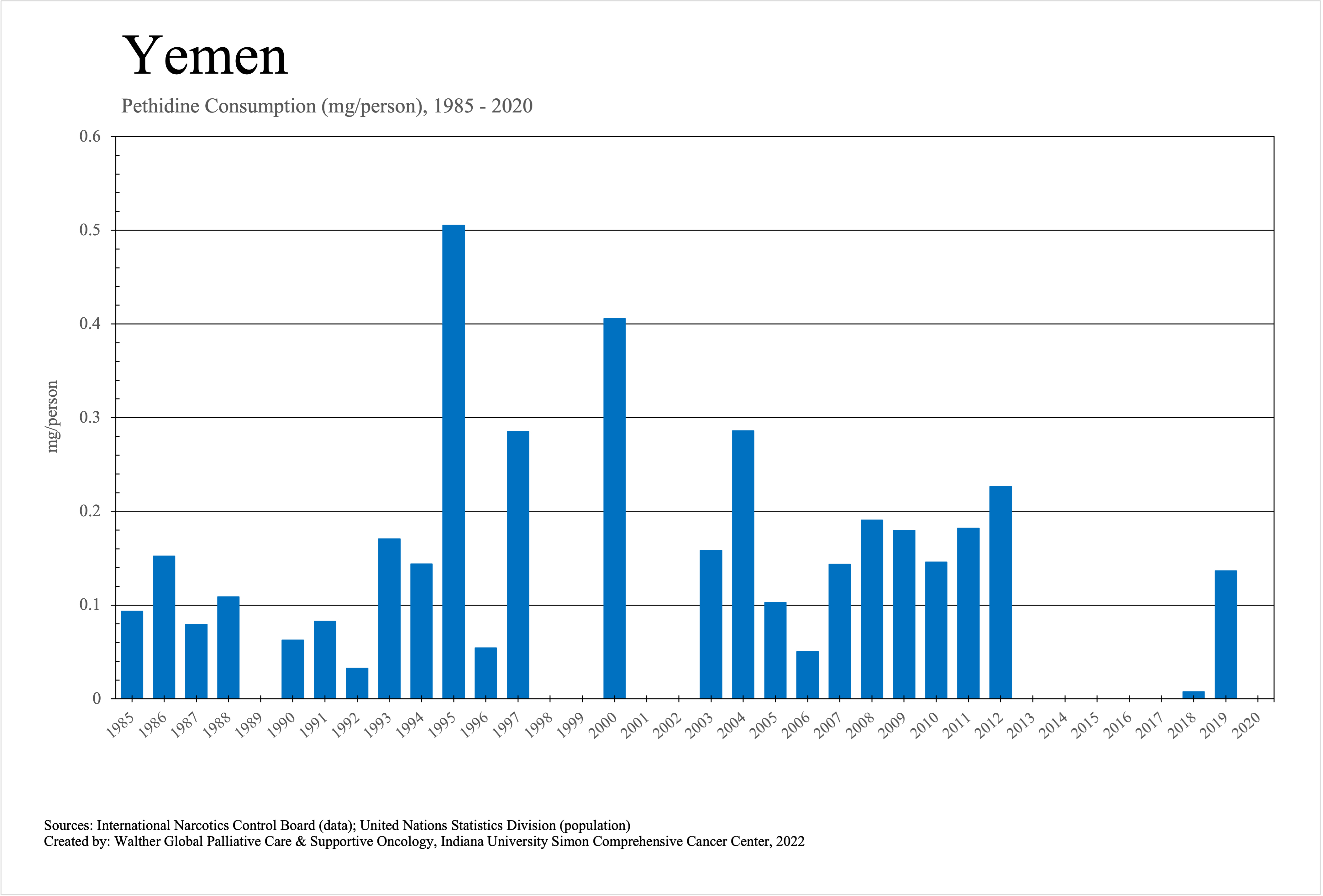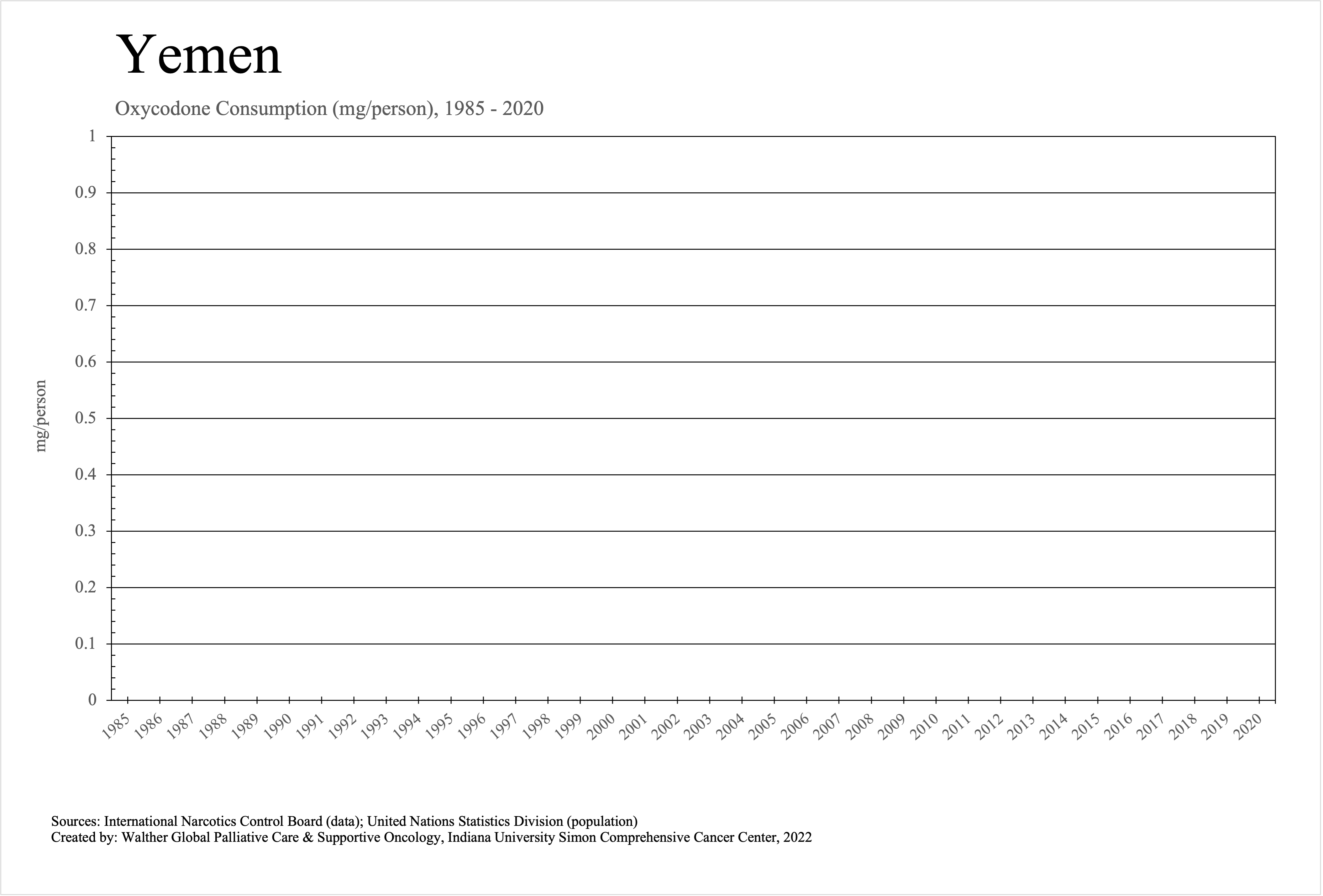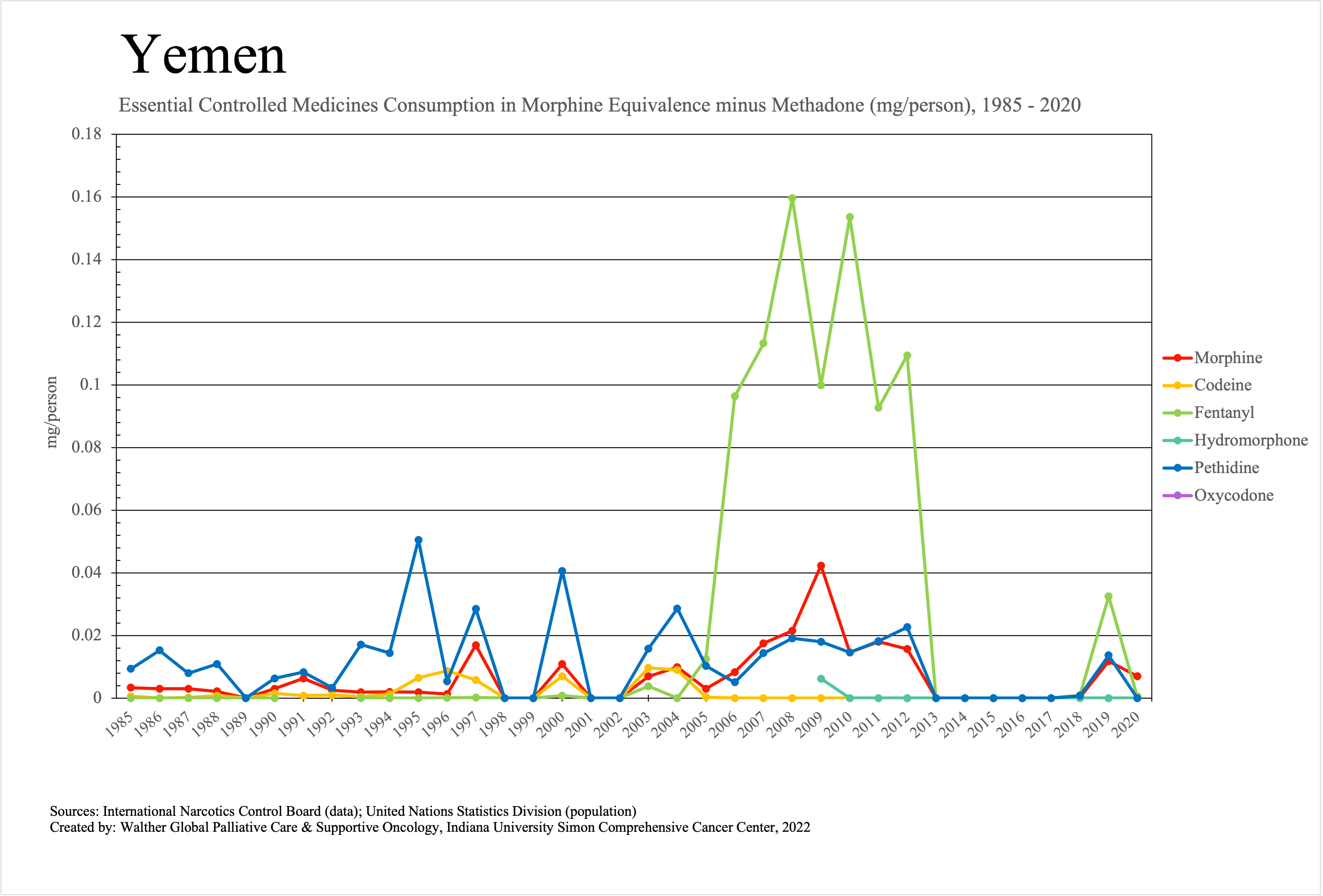 The graphs below provide the Essential Controlled Medicines consumption data trends from 1985 to 2020 in milligrams per capita and Morphine Equivalence (ME) milligrams per capita, as reported to the International Narcotics Control Board (INCB).