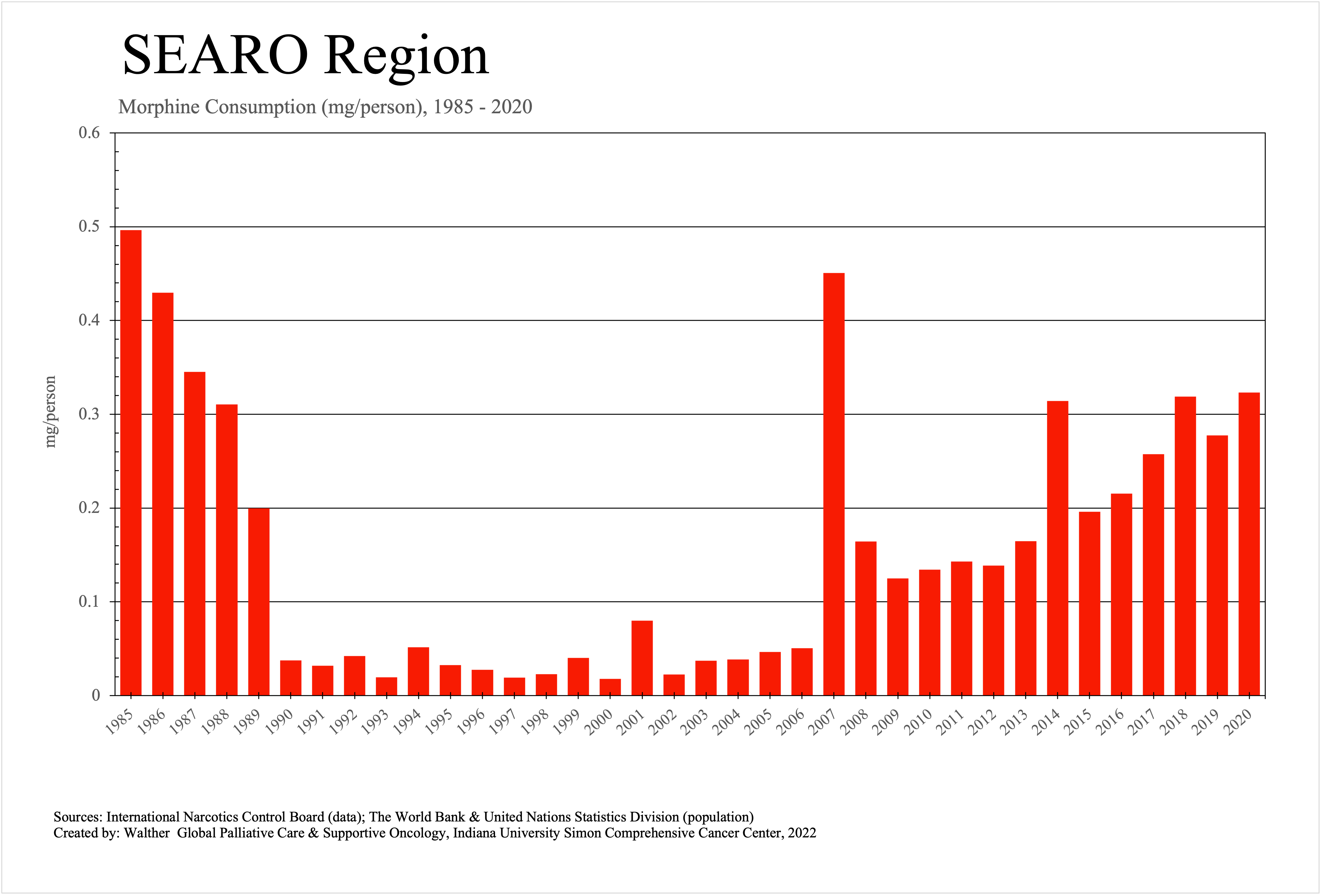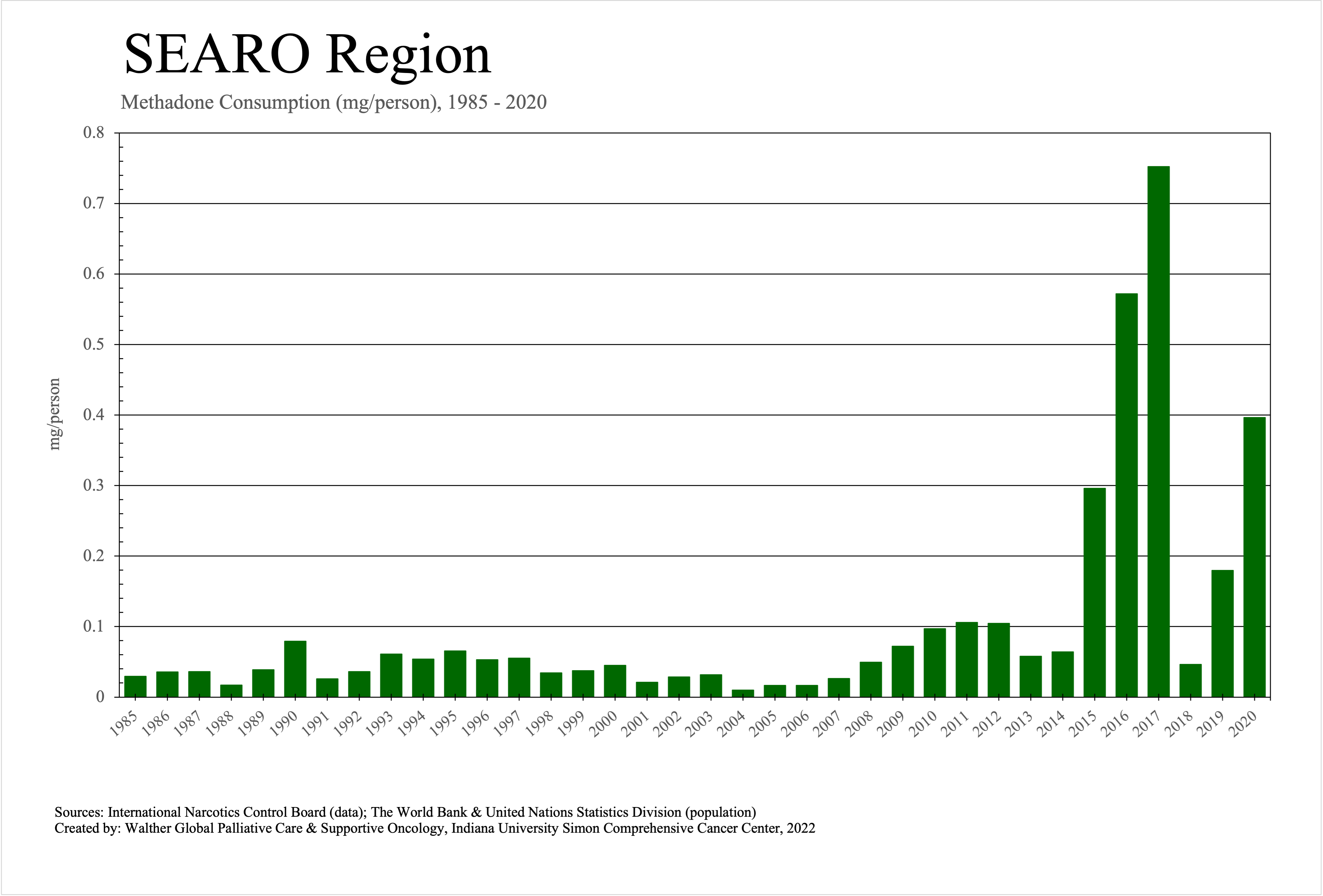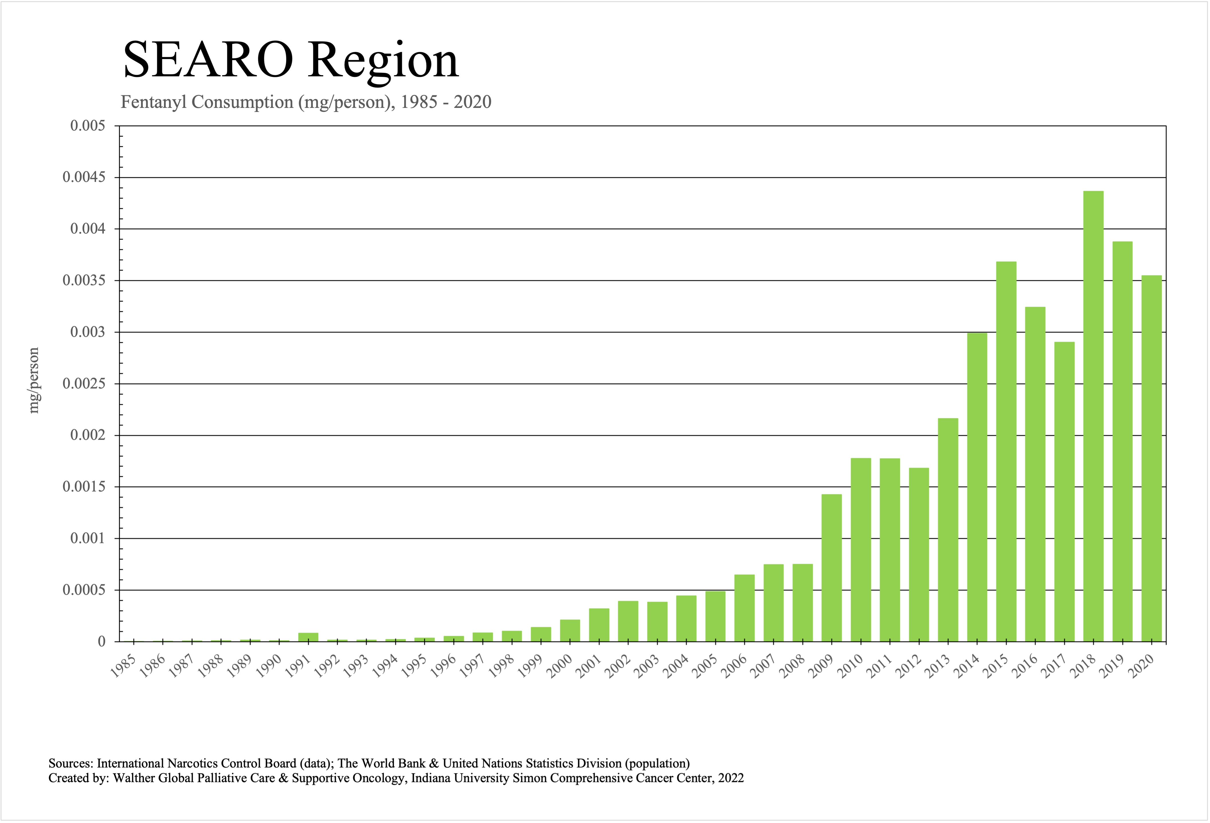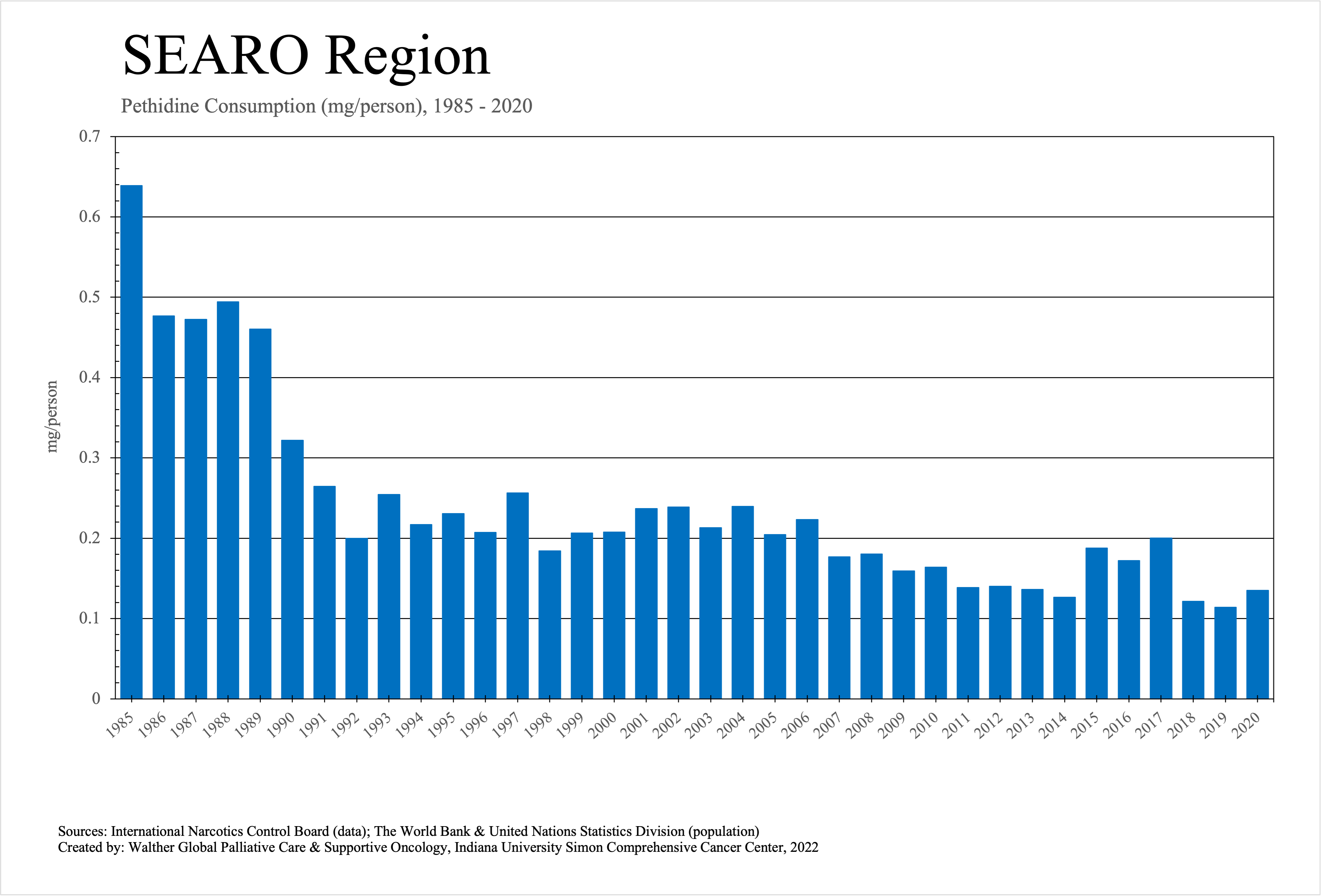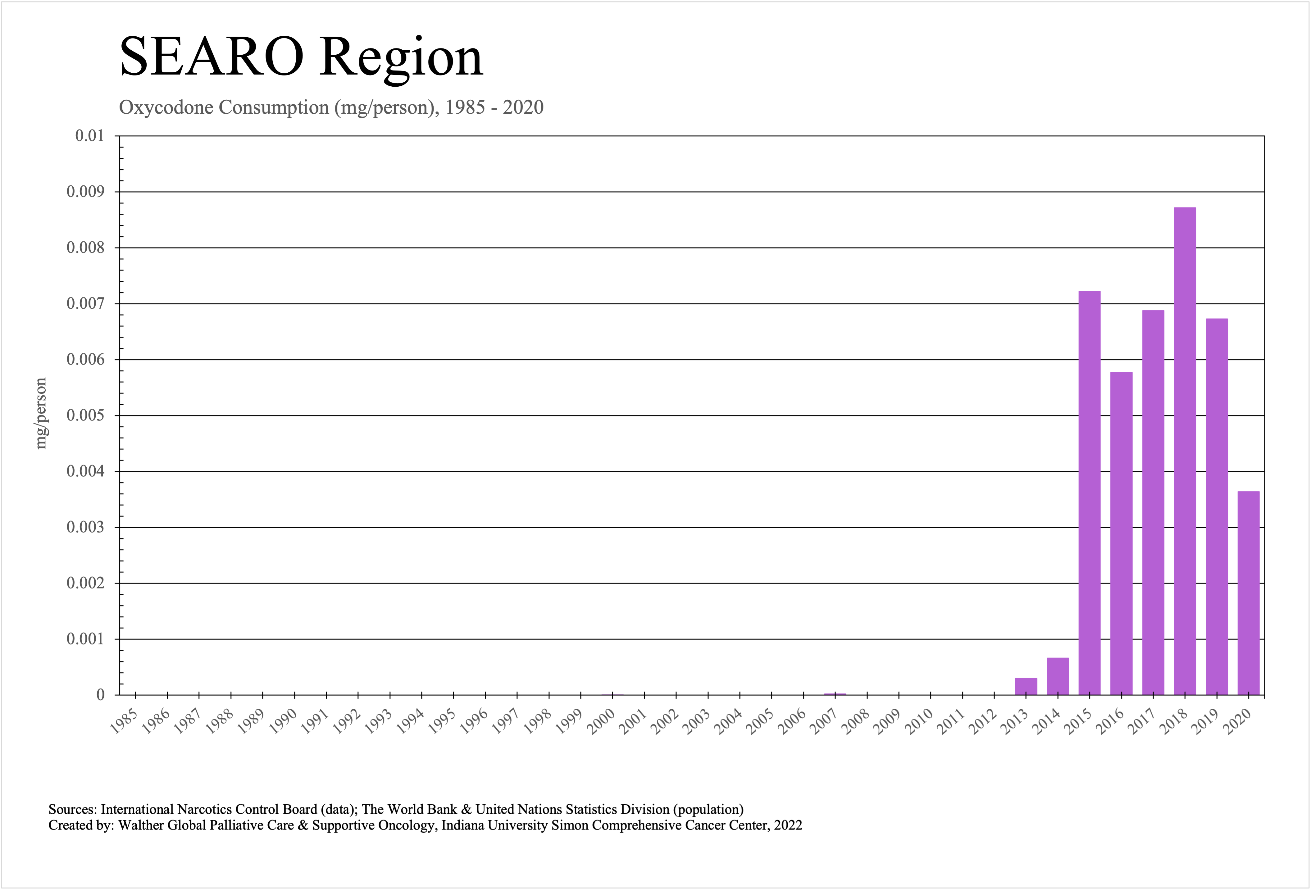 The graphs below provide the Essential Controlled Medicines consumption data trends from 1985 to 2020 in milligrams per capita and Morphine Equivalence (ME) milligrams per capita, as reported to the International Narcotics Control Board (INCB).
